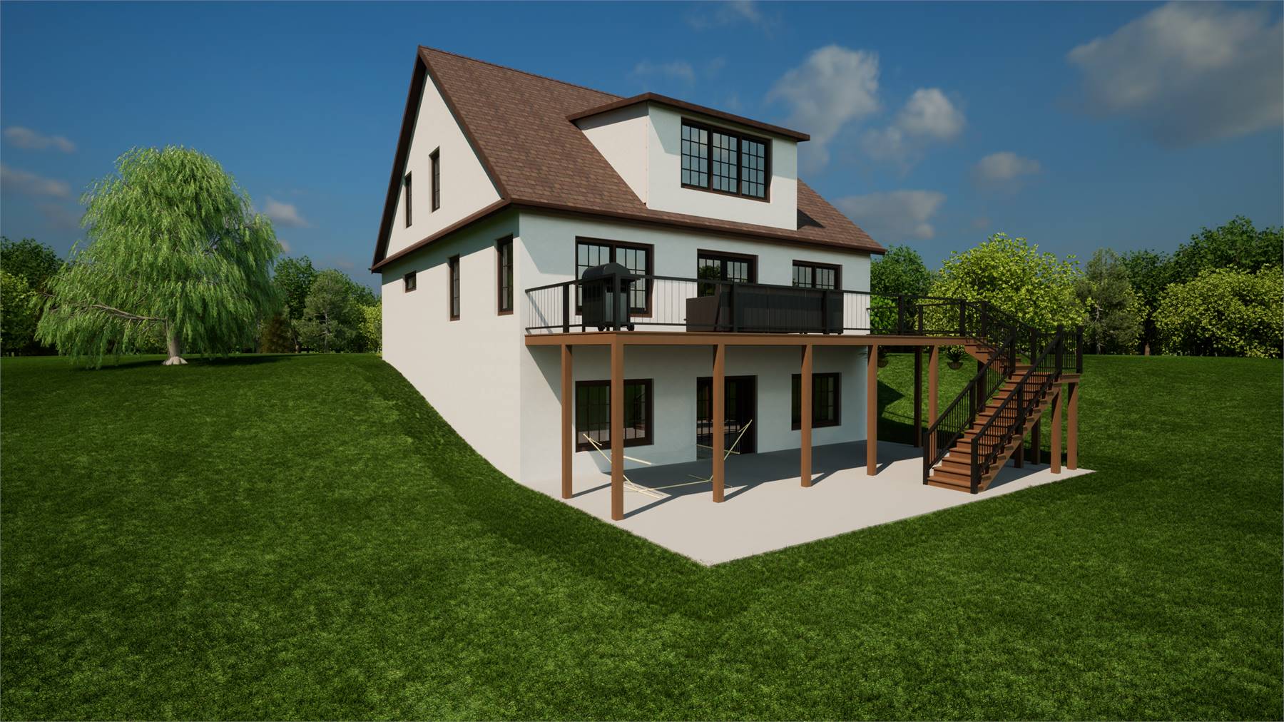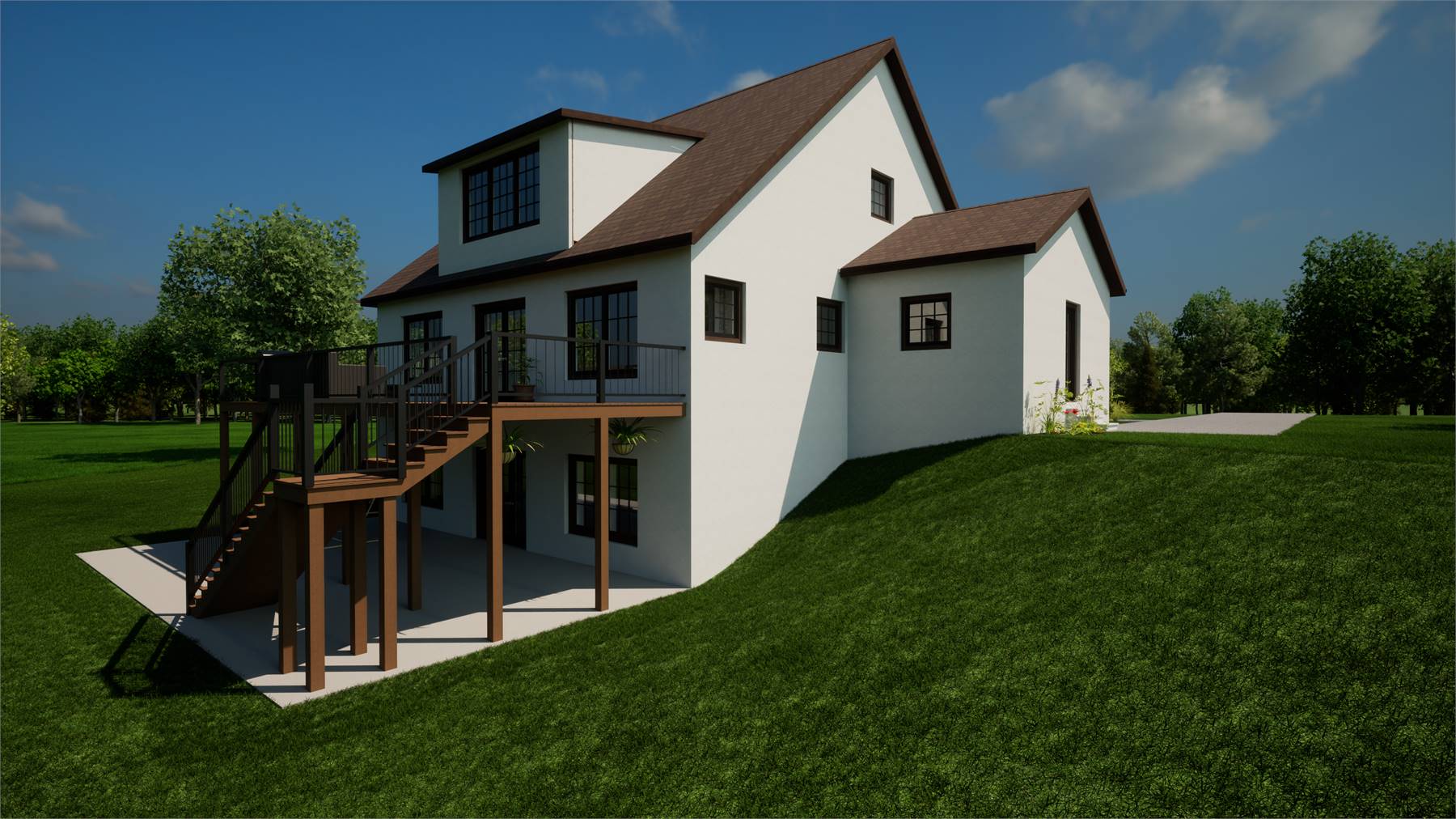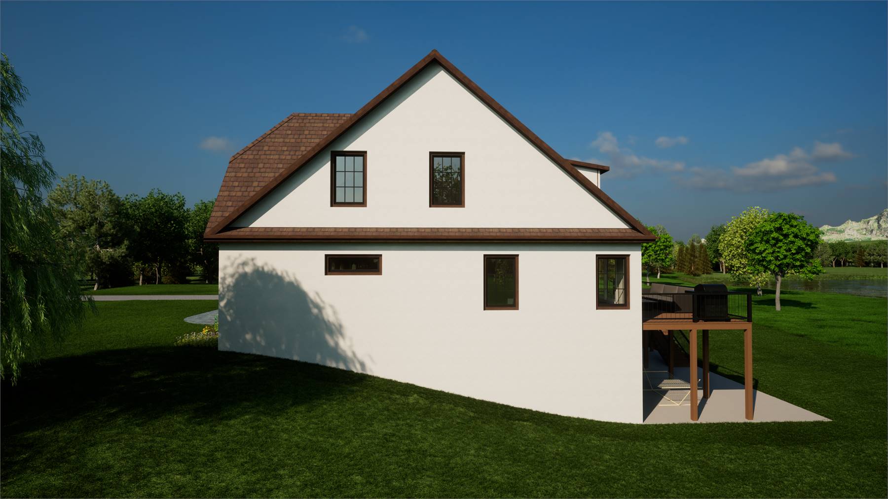 Blending European grace with a warm, family-oriented layout, this 2,829-square-foot design offers both comfort and sophistication. The main level features an open kitchen with a center island and butler’s pantry flowing into the great room for effortless entertaining. The primary suite on the main floor includes a double vanity, soaking tub, and private walk-in closet. Upstairs, the remaining bedrooms and bonus spaces provide room for work, relaxation, or guests. A media room, home office, and rec area add even more versatility for modern living. The covered porch and rear deck extend the living space outdoors for year-round enjoyment. Designed with family gatherings and easy comfort in mind, this home feels inviting from the moment you step inside.