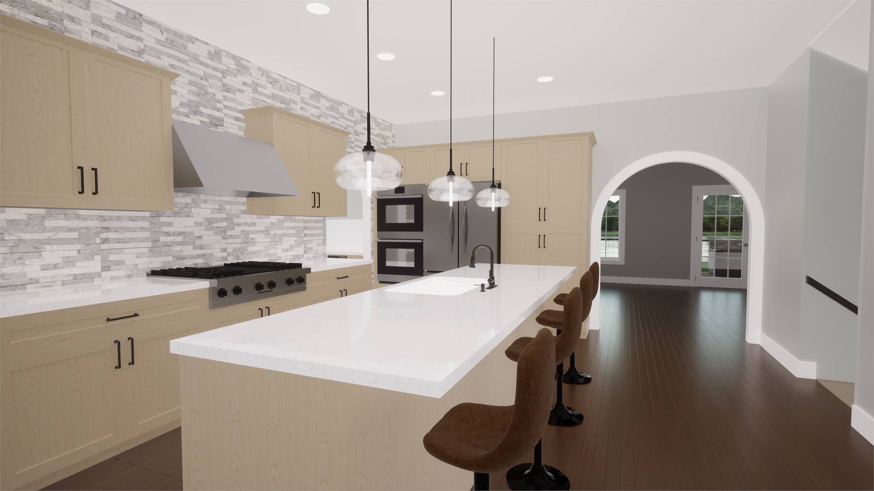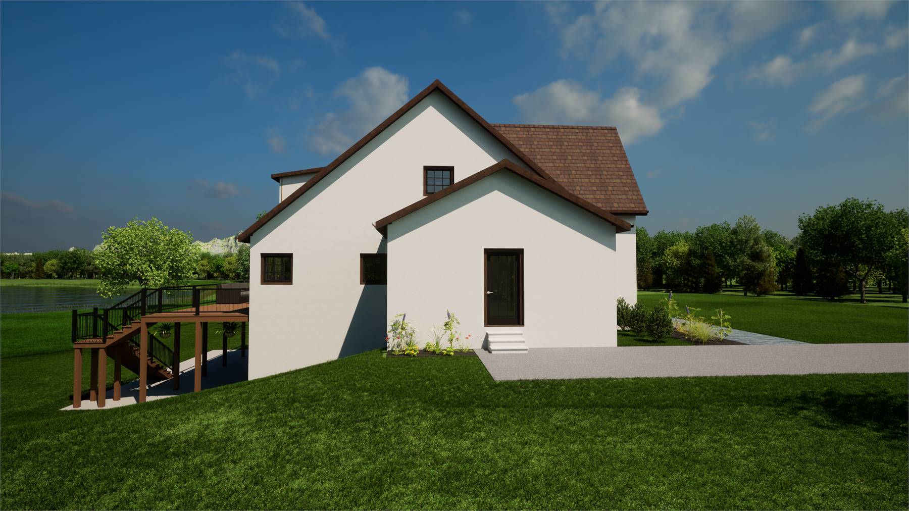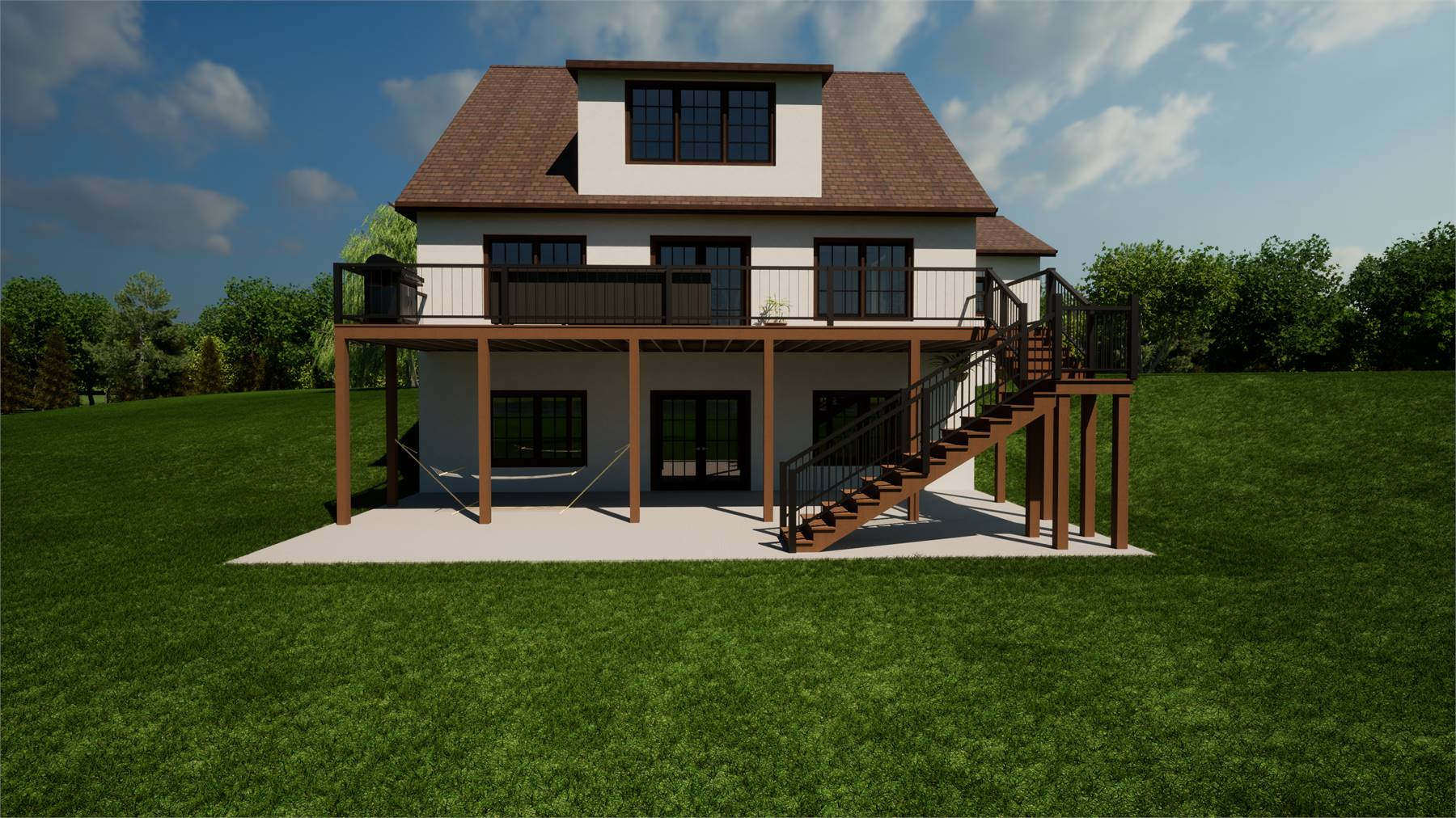 Blending European grace with a warm, family-oriented layout, this 2,829-square-foot design offers both comfort and sophistication. The main level features an open kitchen with a center island and butler’s pantry flowing into the great room for effortless entertaining. The primary suite on the main floor includes a double vanity, soaking tub, and private walk-in closet. Upstairs, the remaining bedrooms and bonus spaces provide room for work, relaxation, or guests. A media room, home office, and rec area add even more versatility for modern living. The covered porch and rear deck extend the living space outdoors for year-round enjoyment. Designed with family gatherings and easy comfort in mind, this home feels inviting from the moment you step inside.