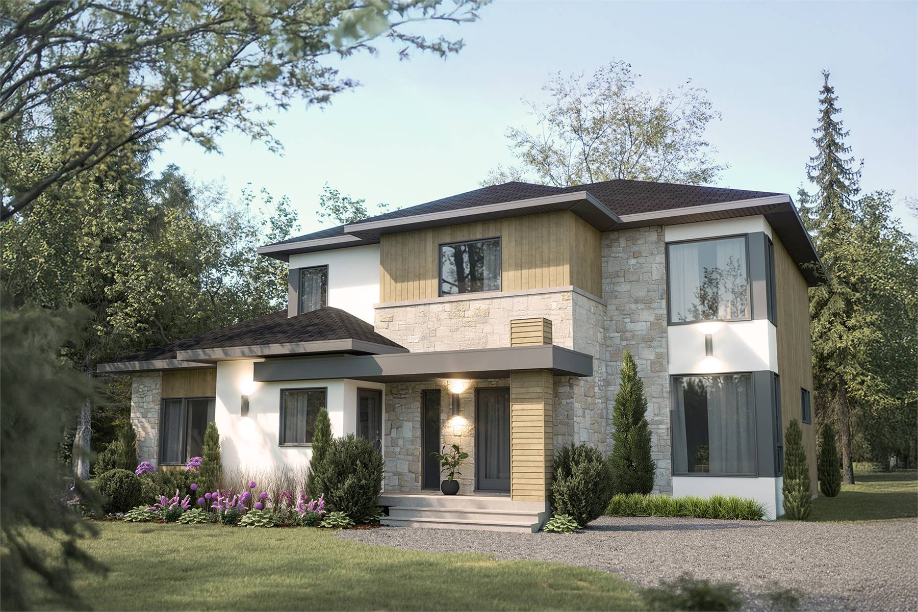 House Plan 11730 checks the boxes for families looking for a multigenerational solution! This modern home offers 2,900 square feet with four bedrooms and three-and-a-half bathrooms in total, spread across two stories. The main house is perfect for the average family with open-concept living on the main floor and three bedrooms upstairs while the secondary unit on the main floor offers one bedroom and one bathroom alongside open-concept living as well. Both sides get an island kitchen and a fireplace!
