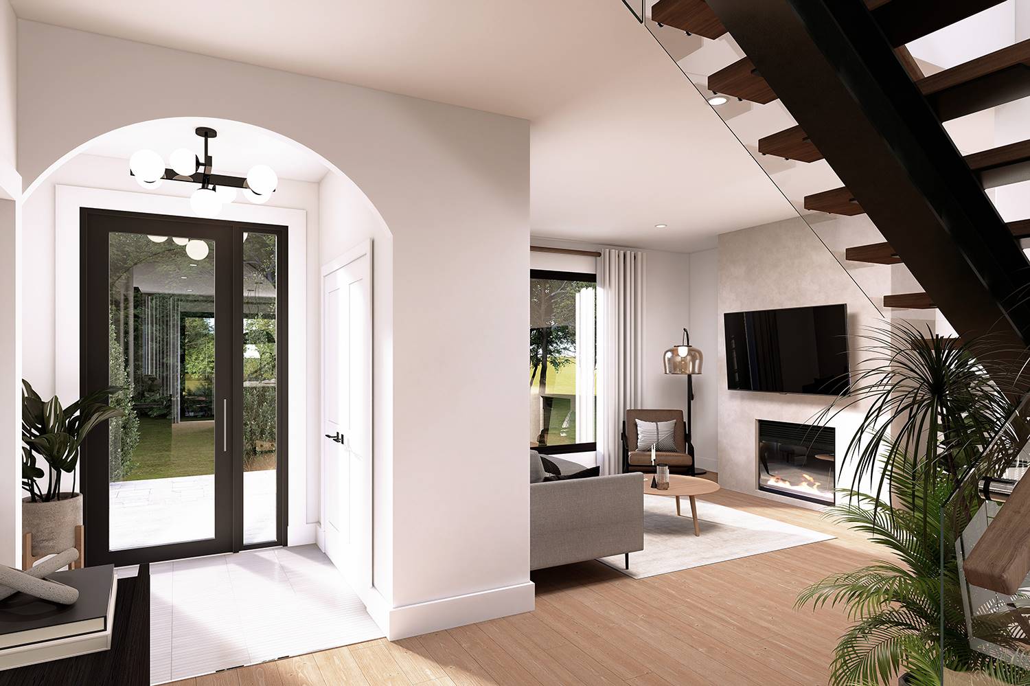 Designed with both function and comfort in mind, this 2,426 square foot home features 3 bedrooms and 2.5 baths in a bright, open layout. The main living level centers around a welcoming family room with a fireplace that connects seamlessly to the dining space and kitchen. A well-appointed kitchen includes an island, peninsula seating, and a butler’s pantry that supports both daily routines and gatherings. The primary suite is located upstairs and offers a quiet escape with a sitting area, walk-in closet, his and hers closets, double vanities, and a separate tub and shower. Convenient second-floor laundry adds ease to daily living while keeping bedrooms uncluttered. Outdoor living space, a covered front porch, and an attached front-entry garage complete a home designed for comfortable, everyday living.
