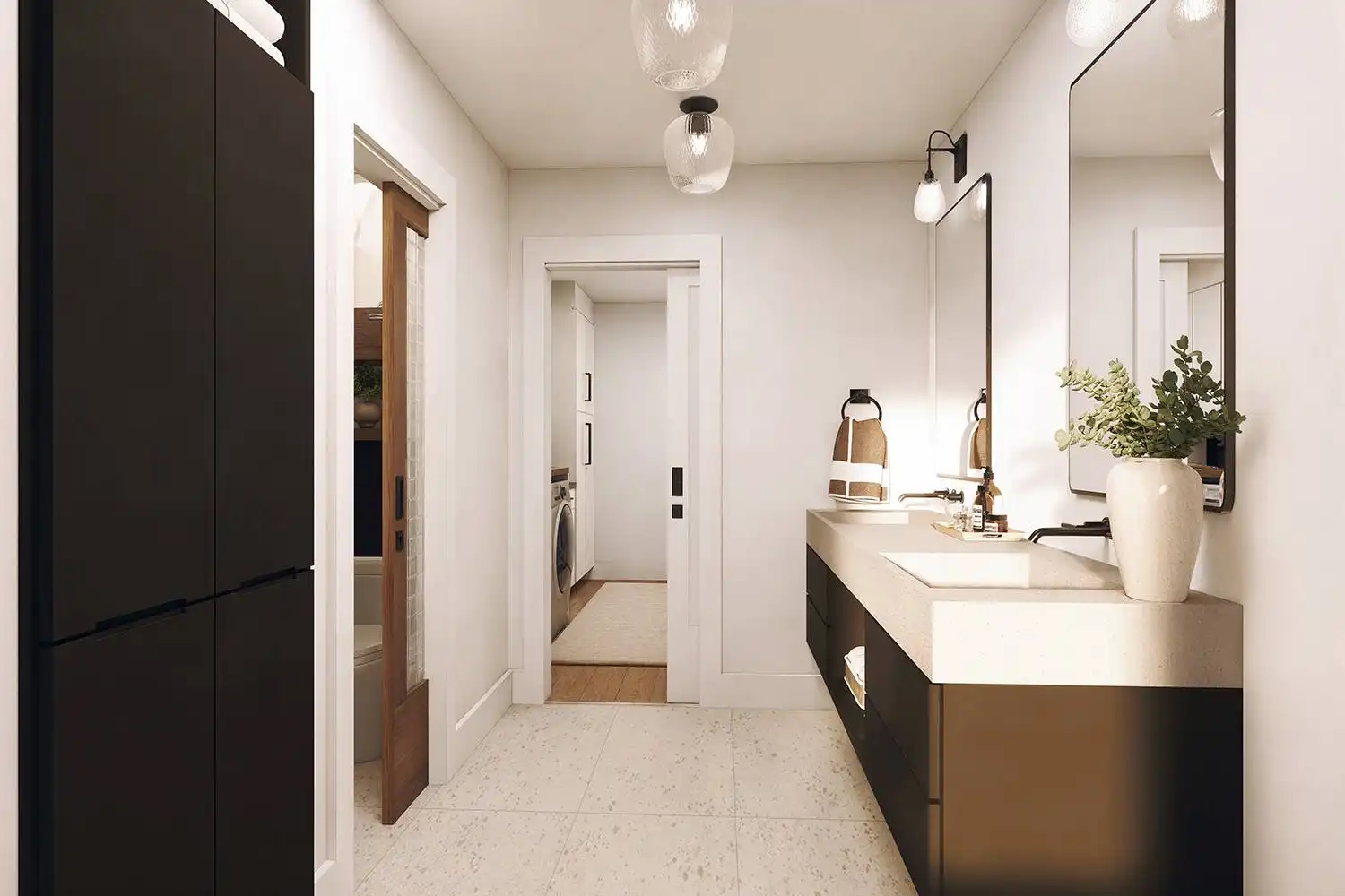 Designed with both function and comfort in mind, this 2,426 square foot home features 3 bedrooms and 2.5 baths in a bright, open layout. The main living level centers around a welcoming family room with a fireplace that connects seamlessly to the dining space and kitchen. A well-appointed kitchen includes an island, peninsula seating, and a butler’s pantry that supports both daily routines and gatherings. The primary suite is located upstairs and offers a quiet escape with a sitting area, walk-in closet, his and hers closets, double vanities, and a separate tub and shower. Convenient second-floor laundry adds ease to daily living while keeping bedrooms uncluttered. Outdoor living space, a covered front porch, and an attached front-entry garage complete a home designed for comfortable, everyday living.