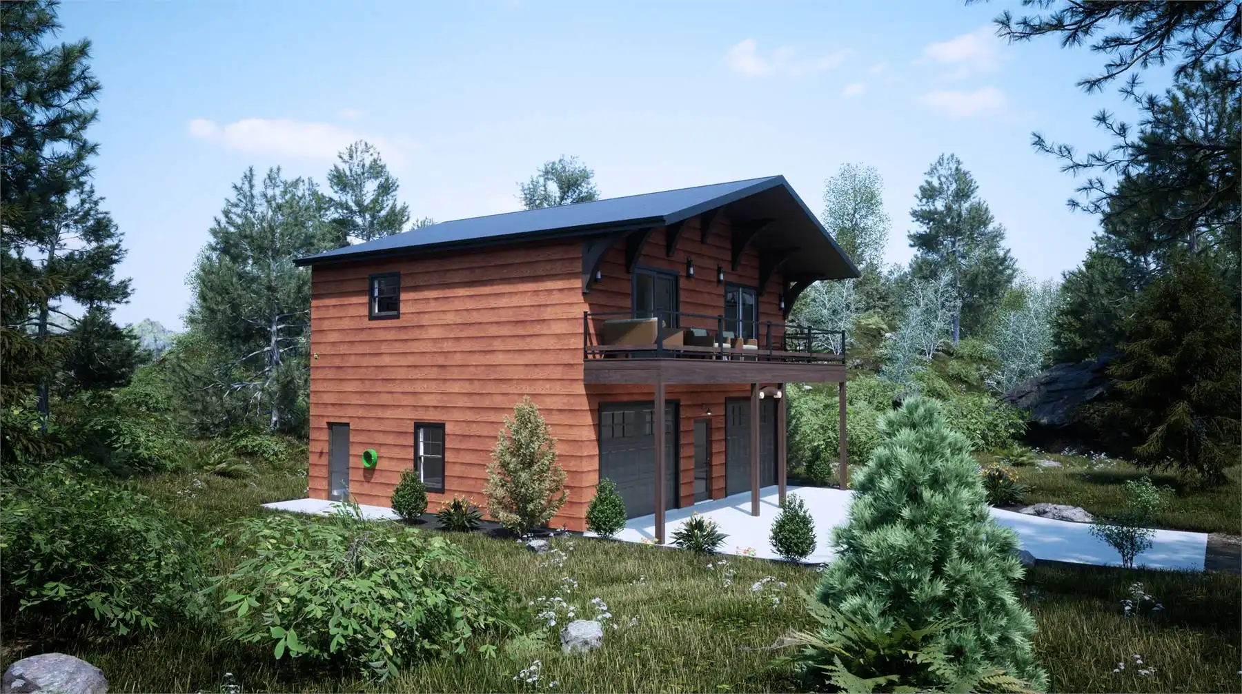This charming 910-square-foot home design delivers a perfect balance of function and warmth. The main level features an open kitchen with both an island and a peninsula, creating a bright and engaging space for casual meals and entertaining. Upstairs, two bedrooms share access to a double vanity bath, with the primary suite offering added privacy and comfort. The laundry area is thoughtfully placed on the second floor for convenience. A front-entry garage and deck add both curb appeal and outdoor enjoyment. Designed for corner lots, it maximizes space while maintaining a cozy, connected feel. Perfect for first-time buyers or small families, this home offers inviting style and everyday comfort.
