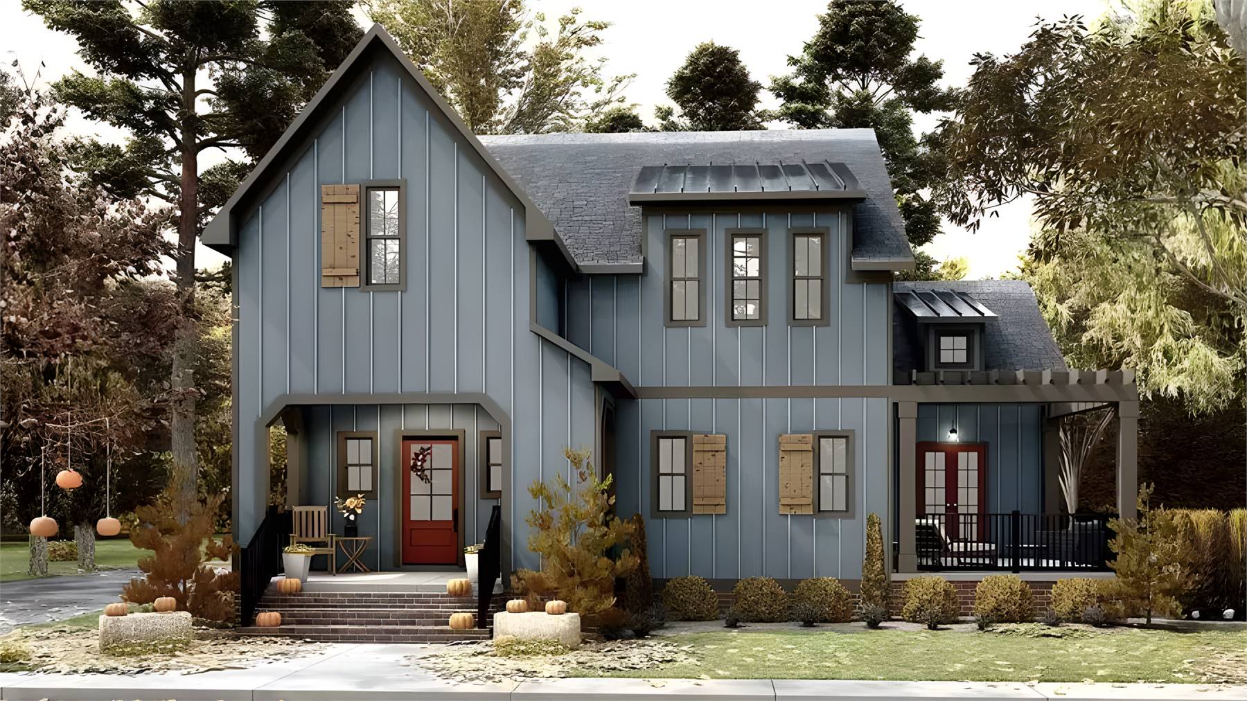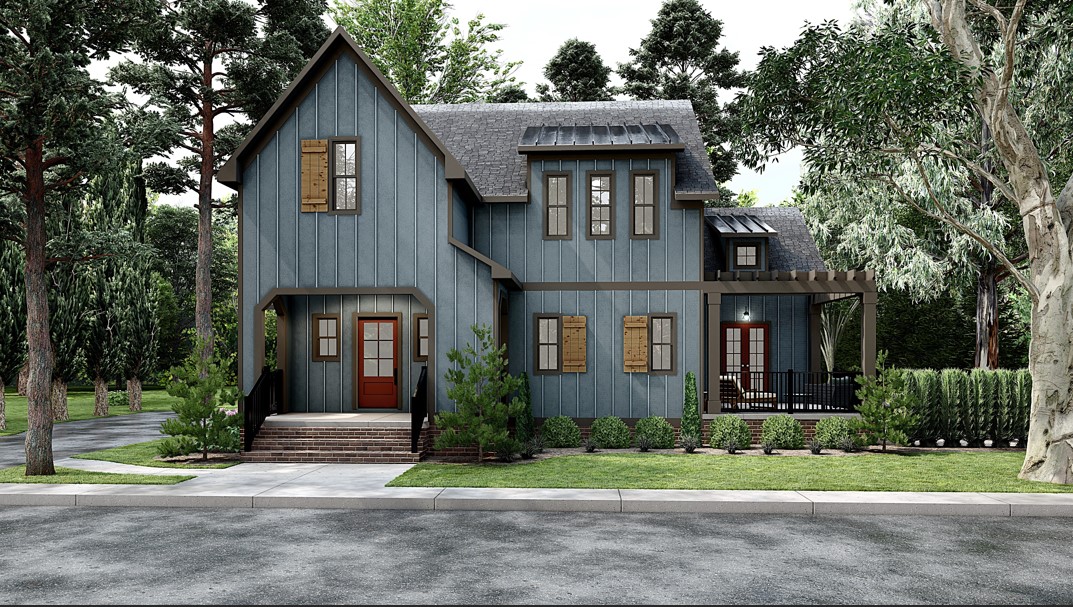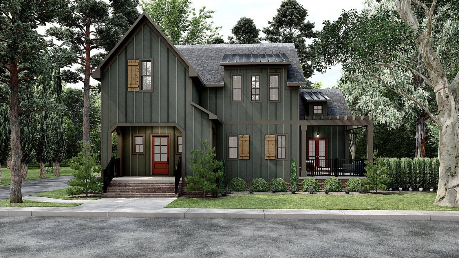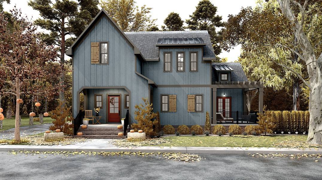 House Plan 11748 is a lovely farmhouse with traditional style and a layout modern families will love! The two-story layout offers 3,024 square feet with four bedrooms and two-and-a-half baths. On the main floor, you'll find the flex room and powder room in front, the open-concept great room in the middle, and the five-piece primary suite in back with the laundry room. Don't miss the corner porches! Upstairs, three bedrooms share a four-piece hall bath and a loft. This design gives you the option to add a front-entry or rear-entry garage, if you need one!