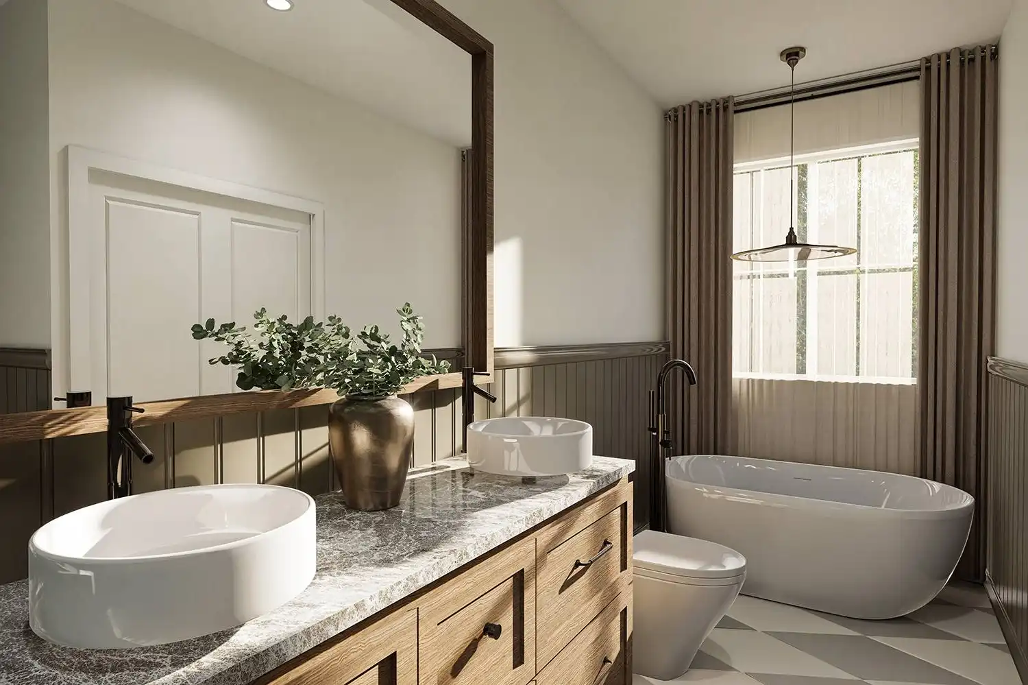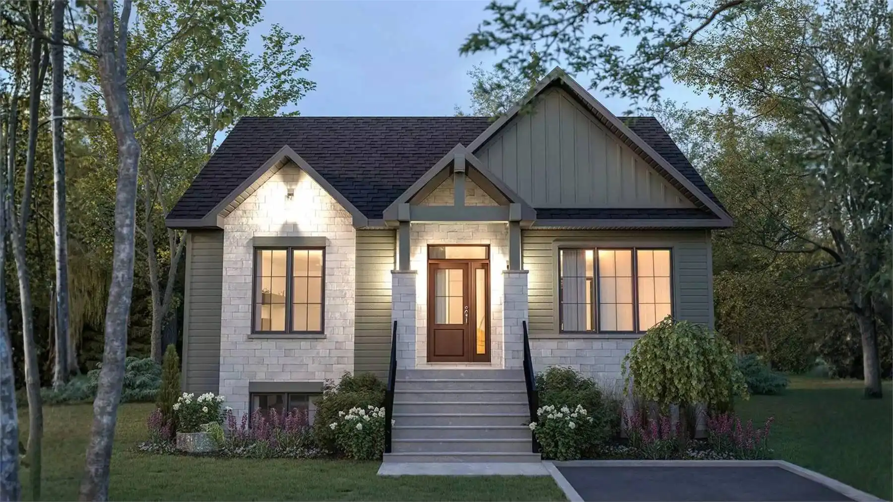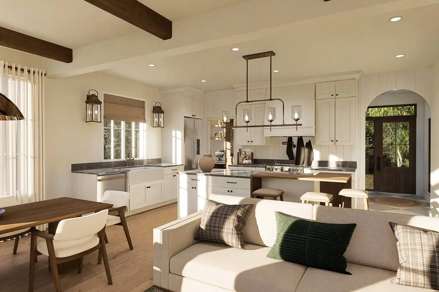 Designed for simplicity and functionality, this 1224 square feet single story home plan includes 2 bedrooms and 2 baths arranged within a bright, open layout. The family room connects naturally to the dining area and kitchen, creating a comfortable central gathering space. The kitchen’s island and walk-in pantry maximize storage while maintaining an efficient workflow. The main level primary suite provides privacy with dual closets and a bath featuring double vanities and a separate tub and shower. A second bedroom is thoughtfully positioned for flexibility. A mud room and first-floor laundry support daily routines with ease. With charming architectural details and unfinished space ready for future possibilities, this home offers both comfort and room to grow.