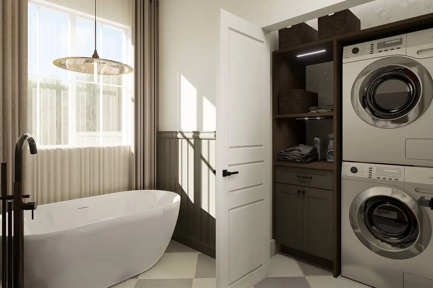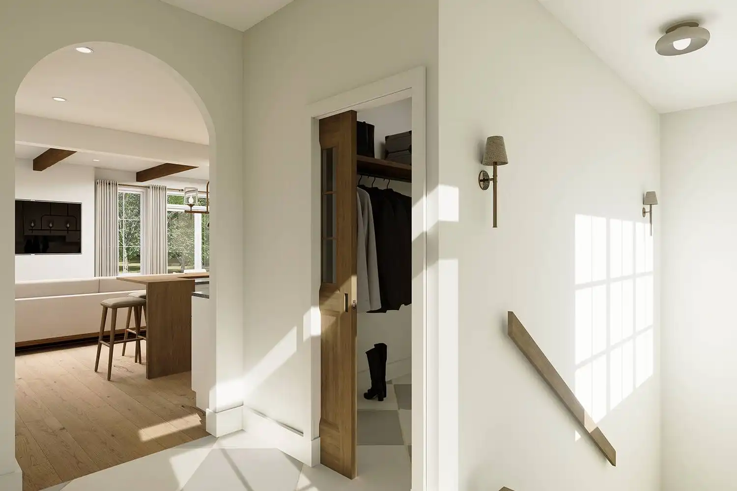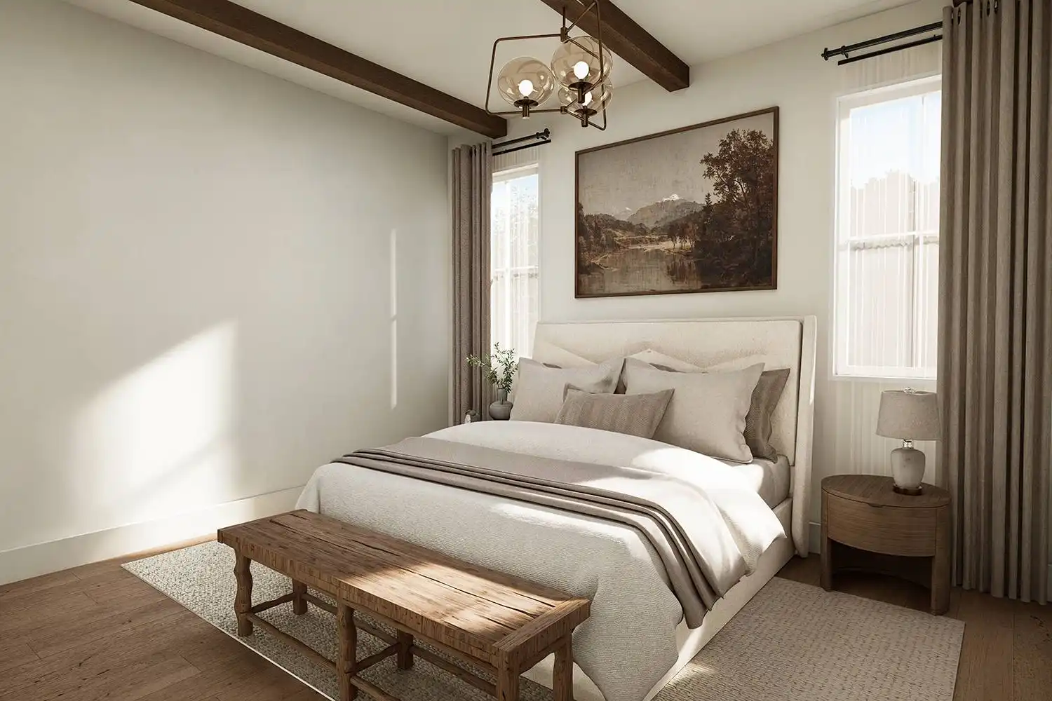 Designed for simplicity and functionality, this 1224 square feet single story home plan includes 2 bedrooms and 2 baths arranged within a bright, open layout. The family room connects naturally to the dining area and kitchen, creating a comfortable central gathering space. The kitchen’s island and walk-in pantry maximize storage while maintaining an efficient workflow. The main level primary suite provides privacy with dual closets and a bath featuring double vanities and a separate tub and shower. A second bedroom is thoughtfully positioned for flexibility. A mud room and first-floor laundry support daily routines with ease. With charming architectural details and unfinished space ready for future possibilities, this home offers both comfort and room to grow.