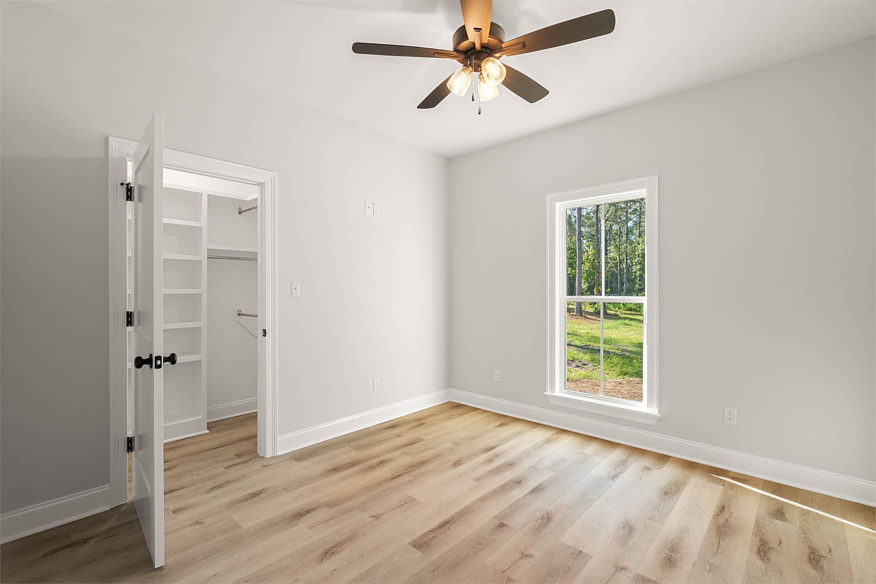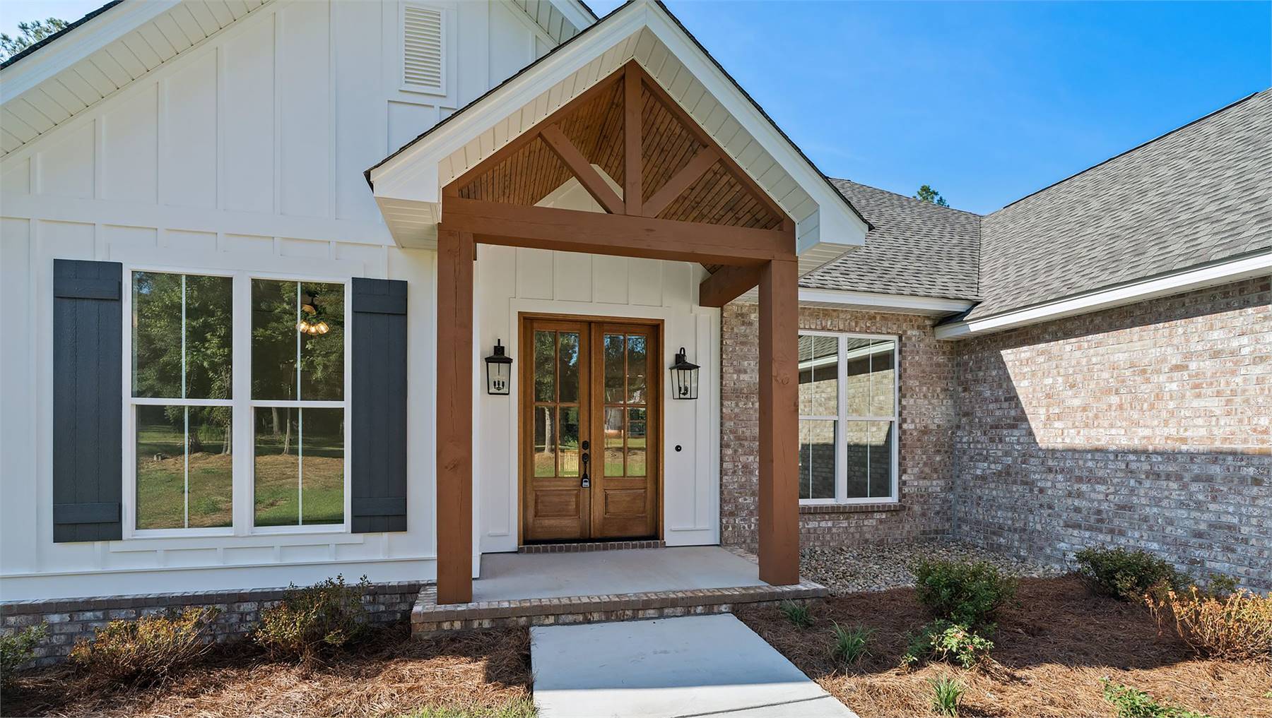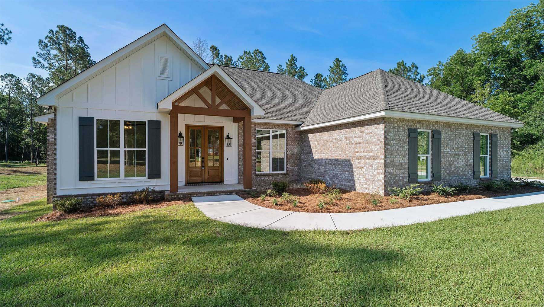 This charming 1,880 square feet home blends comfort with a layout that supports both gathering and privacy. The spacious vaulted great room forms the heart of the home, connecting naturally to the dining area and a well-appointed kitchen featuring a pantry, peninsula, and generous island. The primary bedroom sits on the main floor, offering a peaceful retreat enhanced by a double vanity, walk-in closet, and soothing bath design. Three secondary bedrooms are positioned separately to maintain a quiet, split-bedroom arrangement. A dedicated mud room keeps daily routines tidy, while the rear porch invites relaxed outdoor living. Thoughtful storage solutions add to the home's livability, making organization simple. This welcoming design brings together classic comfort and modern flow, creating a home that feels inviting from the moment you step inside.