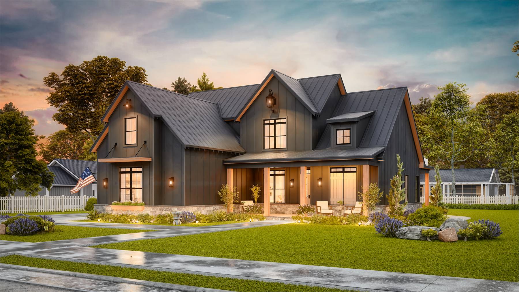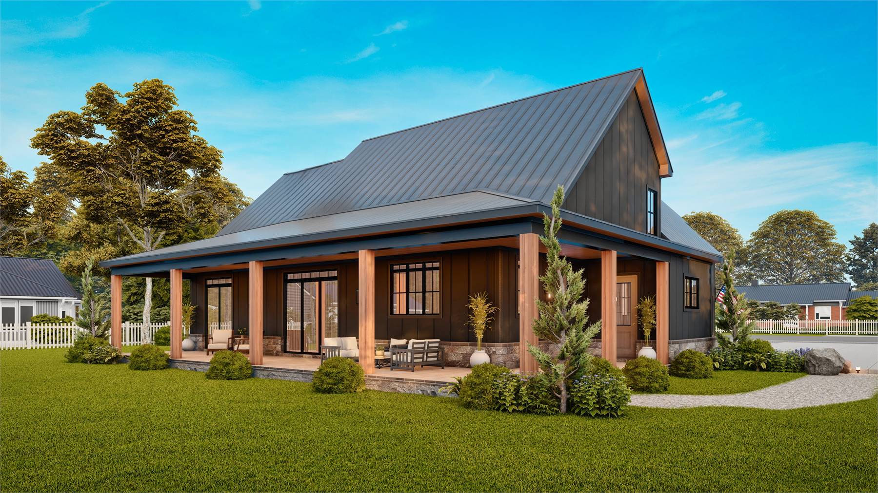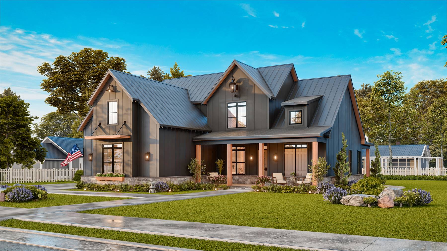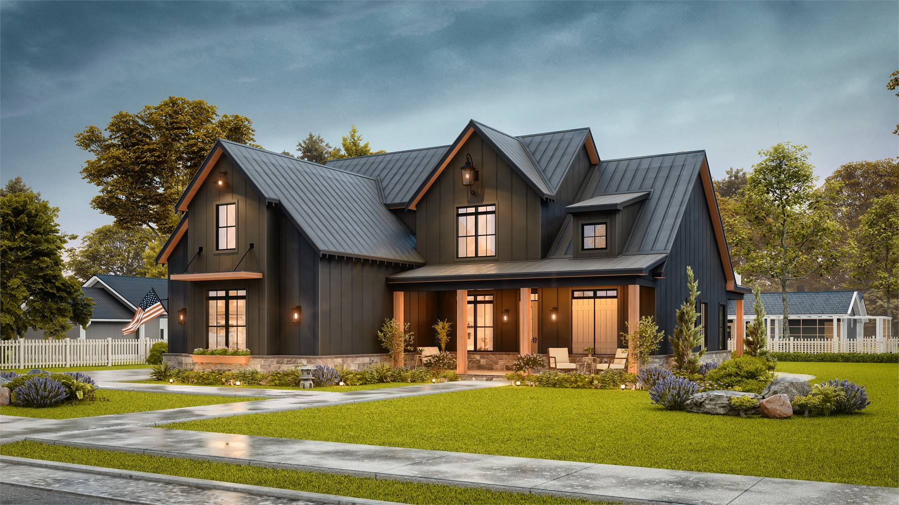 House Plan 11763 delivers 1,999 square feet of modern farmhouse comfort with a layout designed for real-life living. The covered front porch sets a warm, welcoming tone, leading into a bright, open floor plan where the dining room flows seamlessly into the great room and chef-inspired kitchen. The main-floor master suite provides a peaceful retreat with a separate tub, shower, and large walk-in closet. A functional mudroom and laundry space, along with a half bath and two-car garage, enhance everyday practicality. Upstairs, two bedrooms each include private baths and walk-in closets, while an unfinished bonus room above the garage offers room for a fourth bedroom or flexible living space. With its wraparound rear porch and balanced mix of style and utility, this home perfectly captures the essence of modern farmhouse living.