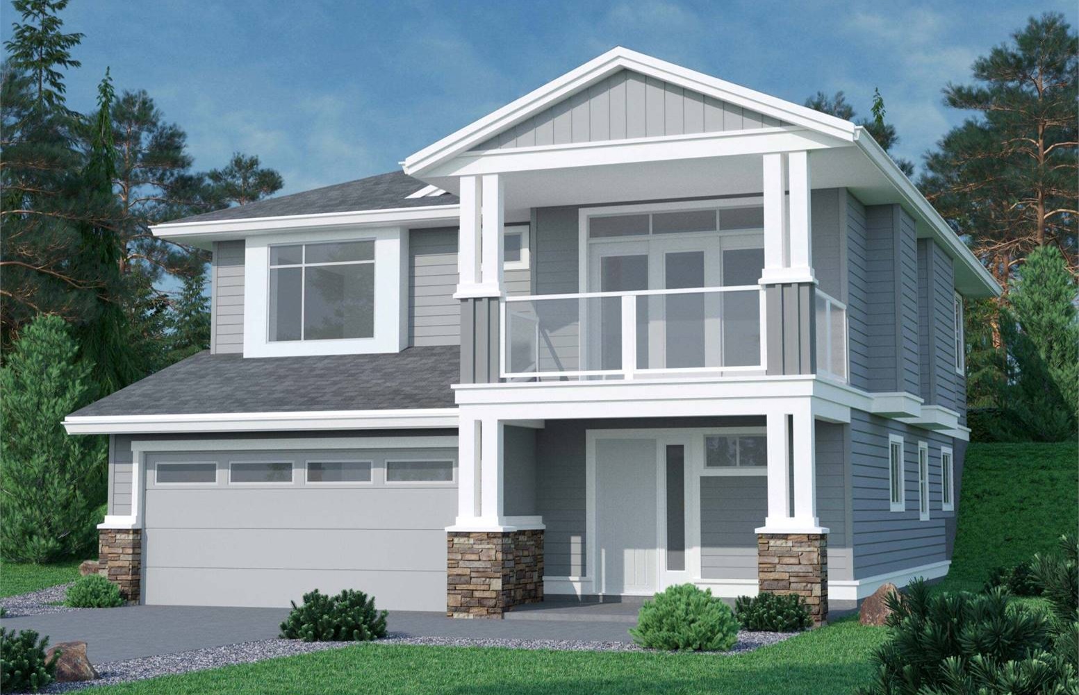 House Plan 11764 showcases a warm, traditional exterior paired with a versatile interior layout designed for long term living. Gabled rooflines and detailed pilasters give this two storey home a welcoming presence, while a covered front entry leads into a spacious foyer with generous storage. The main living areas are located upstairs, where the great room and dining room flow together seamlessly. A gas fireplace creates a cozy focal point, and access to a covered deck extends the living space outdoors. The dining area includes a bayed section that adds character and offers the perfect spot for custom cabinetry. The kitchen is efficiently arranged with an angled sink beneath a window, a pantry for storage, and direct access to a patio for grilling and casual meals outside. The primary suite faces the front garden and features a walk in closet and a private ensuite with a soaking tub, dual sinks, and a glass shower. Two additional bedrooms share a three piece bathroom, with a centrally located linen closet for added convenience. The ground floor includes a roughed in secondary suite with space for a kitchen, dining, and sitting area, along with a three piece bathroom, providing excellent flexibility for future needs. A laundry room with access to the double garage completes the lower level and doubles as a functional mudroom. With painted wood siding, vertical gable detailing, and classic trim accents, this home delivers 1,274 square feet of upper level living space within a compact and efficient footprint.