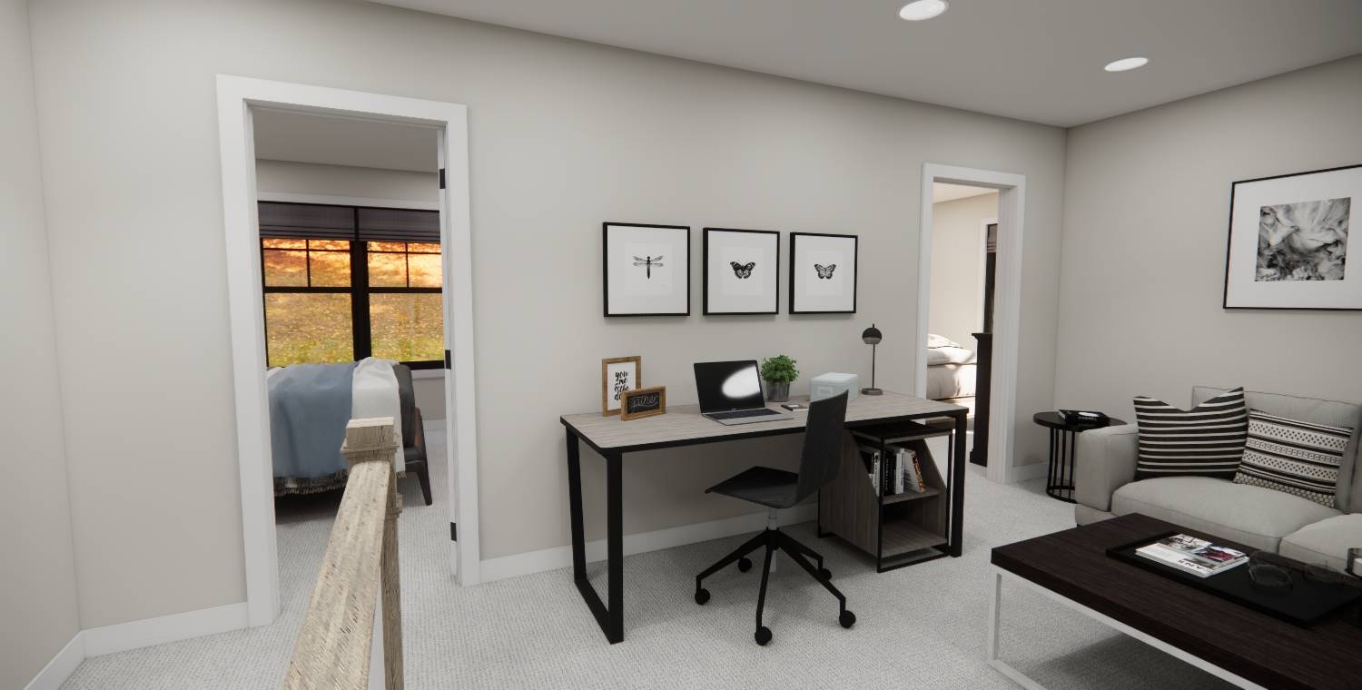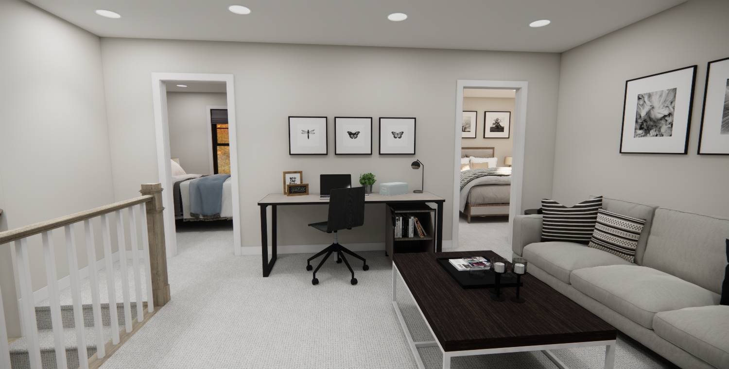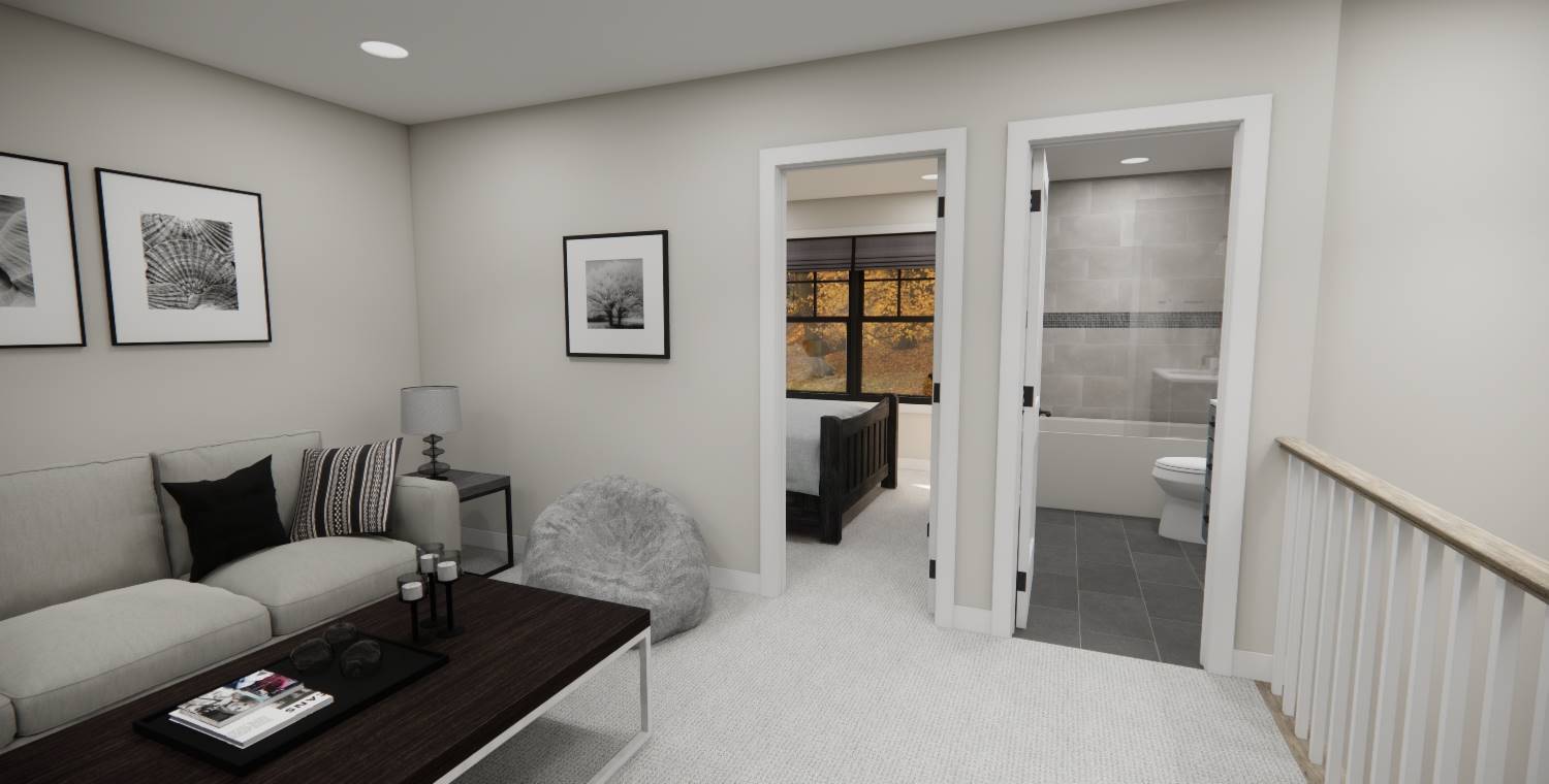 With 2,185 square feet of heated space, this home blends open living and private retreats across 4 bedrooms and 3.5 baths. The great room serves as the heart of the home, flowing naturally into the dining room and spacious kitchen. The main-level primary suite offers privacy and comfort with generous closet space and an efficient bath layout. A walk-in pantry, mud room, and first-floor laundry add everyday practicality to the layout. The upper level features additional bedrooms along with a loft area that overlooks the main living space below. Natural flow and thoughtful room placement make the home easy to live in and enjoy. Finished with a covered front porch and front-entry garage, this design delivers warmth, flexibility, and everyday livability.