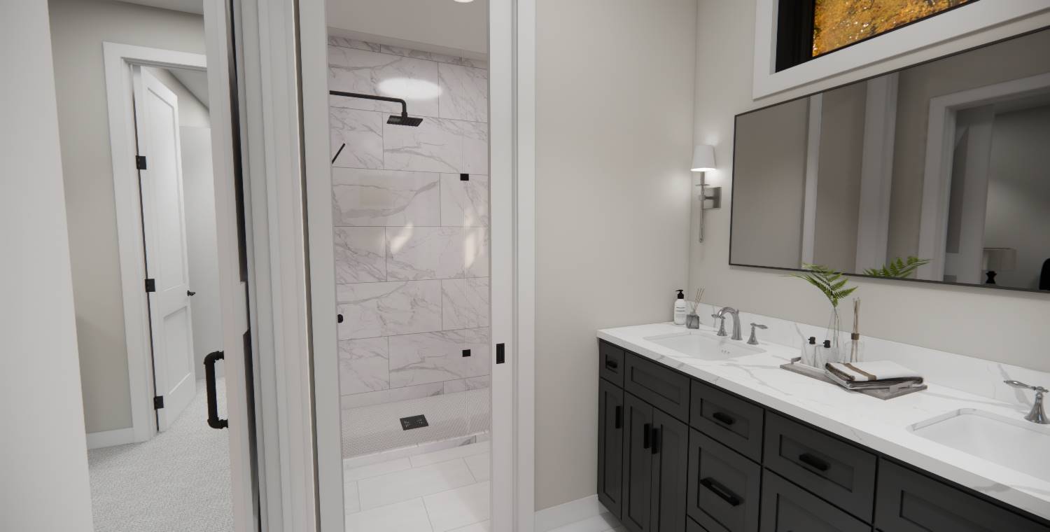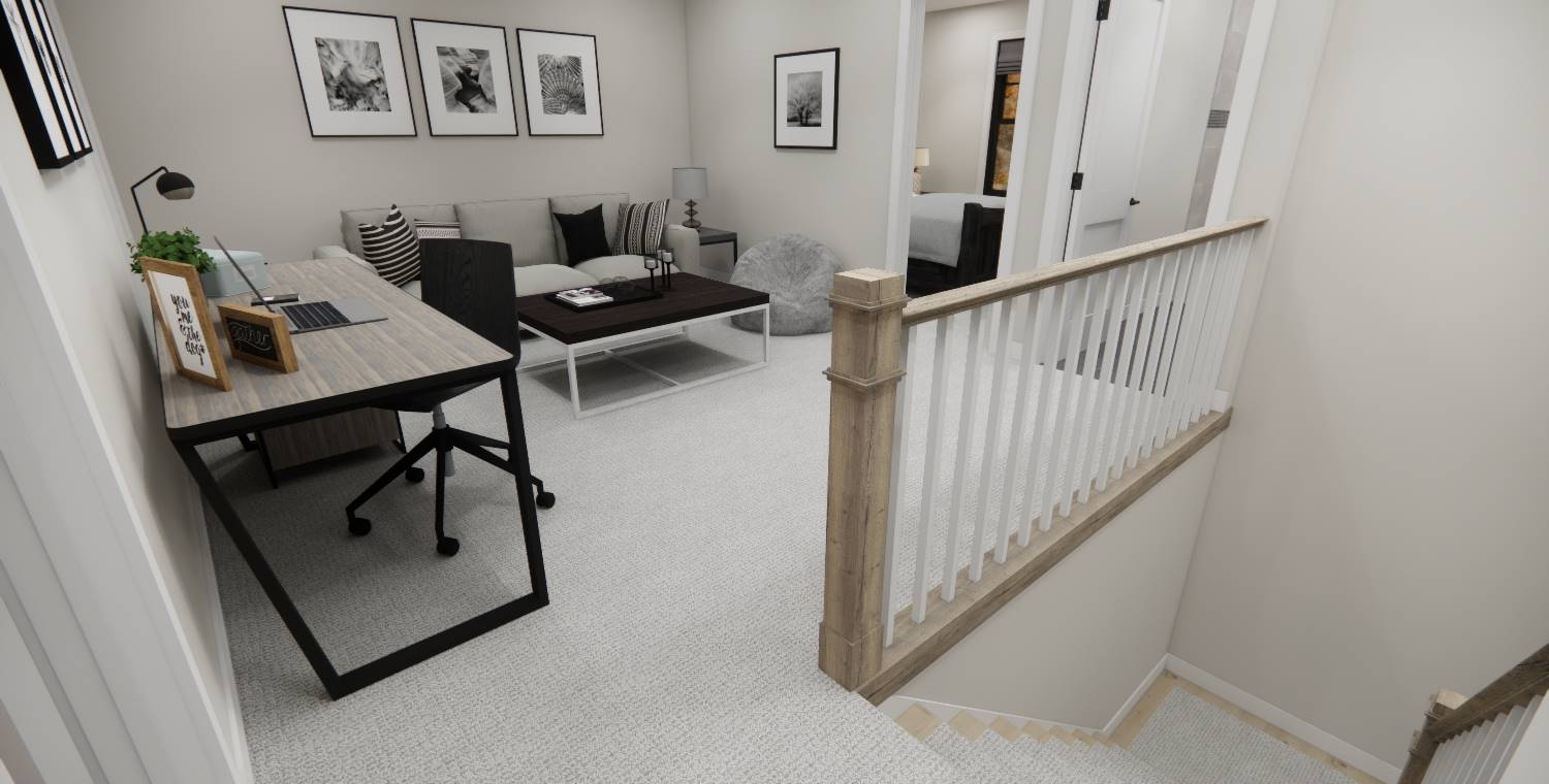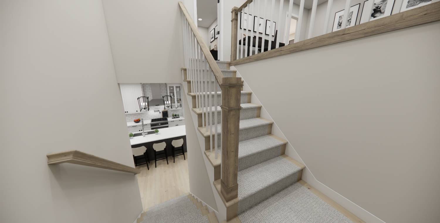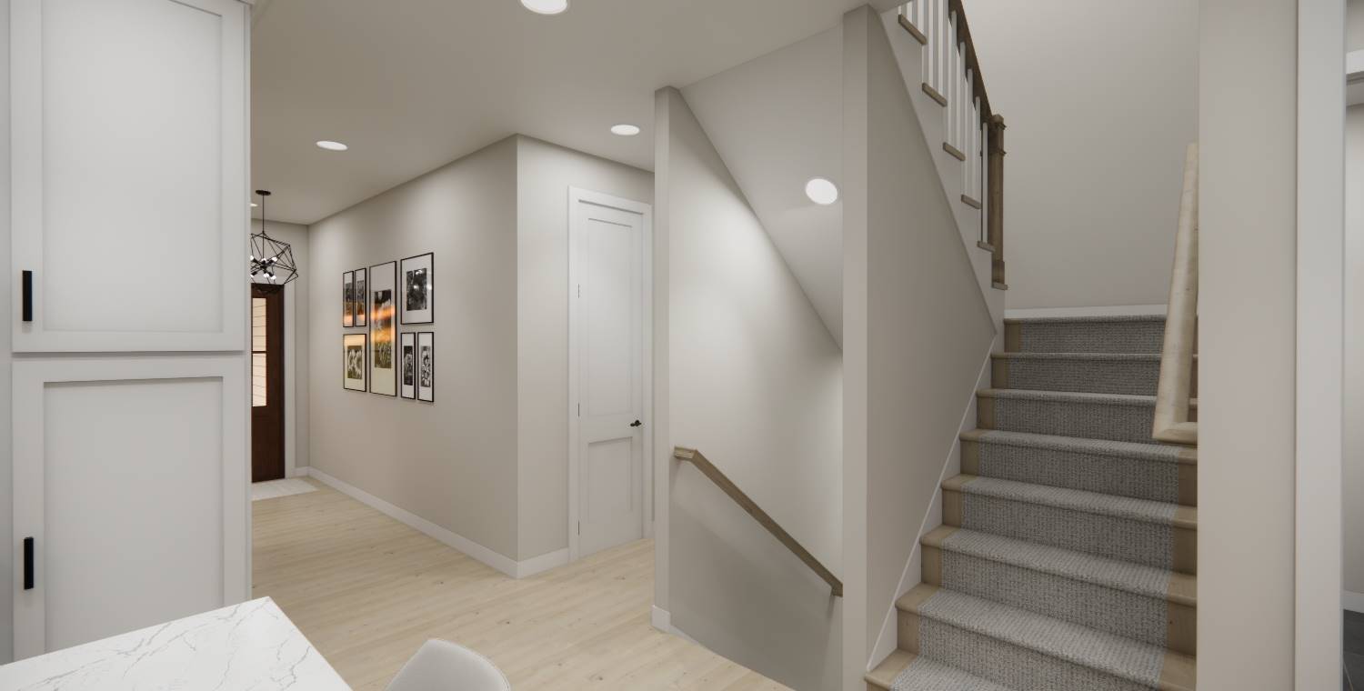 With 2,185 square feet of heated space, this home blends open living and private retreats across 4 bedrooms and 3.5 baths. The great room serves as the heart of the home, flowing naturally into the dining room and spacious kitchen. The main-level primary suite offers privacy and comfort with generous closet space and an efficient bath layout. A walk-in pantry, mud room, and first-floor laundry add everyday practicality to the layout. The upper level features additional bedrooms along with a loft area that overlooks the main living space below. Natural flow and thoughtful room placement make the home easy to live in and enjoy. Finished with a covered front porch and front-entry garage, this design delivers warmth, flexibility, and everyday livability.