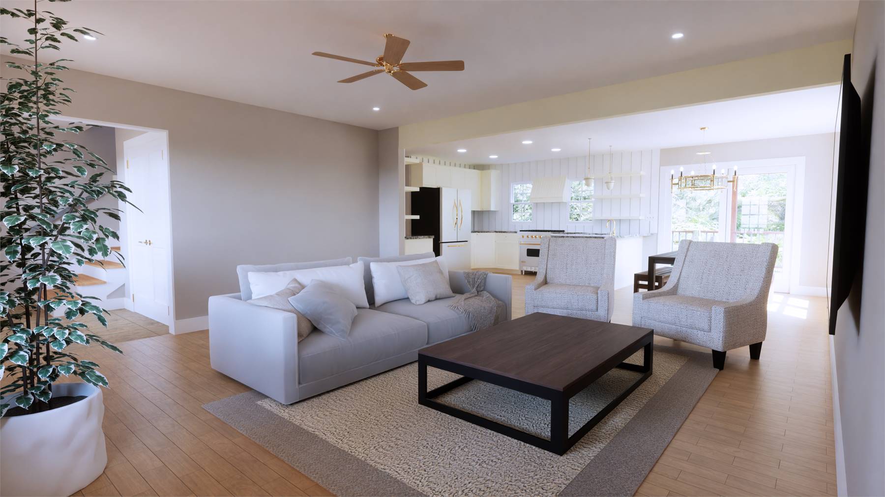This charming layout blends practicality with a cozy, welcoming feel from the moment you step onto the covered front porch. The main floor centers around an efficient U-shaped kitchen that pairs perfectly with the walk-in pantry for added storage and organization. A bright dining room sits nearby, creating a comfortable place for meals and conversation. The mud room and first-floor laundry help keep the home tidy and functional. Upstairs, the primary bedroom becomes a peaceful escape featuring its own walk-in closet and a bath designed with two sinks for easy routines. Two secondary bedrooms complete the level, offering flexibility for family, guests, or hobbies. The rear deck adds an inviting outdoor extension of the living space.