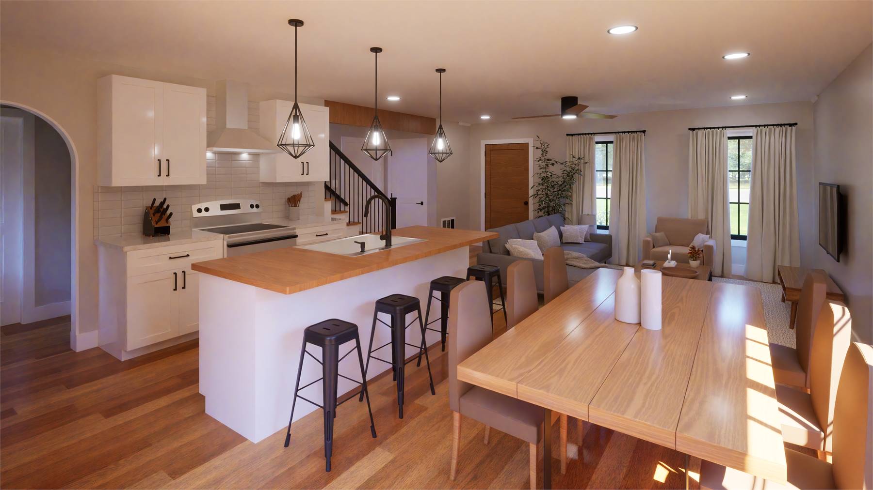 A covered front porch welcomes you into a bright and open main floor designed for comfortable daily living. The family room sits at the heart of the layout and connects smoothly to the kitchen, where an island and walk-in pantry make meal prep simple and enjoyable. The main-floor primary bedroom provides privacy from the secondary bedrooms and includes a spacious walk-in closet and dual-sink bath. The dining area sits just off the kitchen, creating an easy flow for weeknight dinners or casual gatherings. The first-floor laundry and mud space help keep the home organized and functional. Upstairs, a loft offers extra room for study, play, or relaxation, along with two bedrooms and a shared bath. A rear deck completes the design by offering a calm outdoor spot for unwinding at the end of the day.