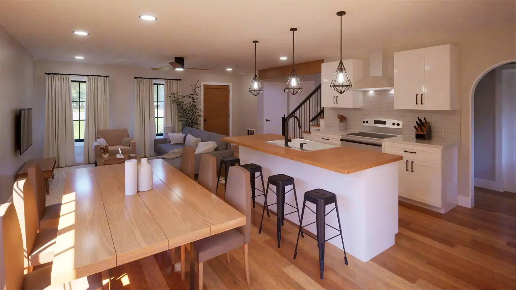 A covered front porch welcomes you into a bright and open main floor designed for comfortable daily living. The family room sits at the heart of the layout and connects smoothly to the kitchen, where an island and walk-in pantry make meal prep simple and enjoyable. The main-floor primary bedroom provides privacy from the secondary bedrooms and includes a spacious walk-in closet and dual-sink bath. The dining area sits just off the kitchen, creating an easy flow for weeknight dinners or casual gatherings. The first-floor laundry and mud space help keep the home organized and functional. Upstairs, a loft offers extra room for study, play, or relaxation, along with two bedrooms and a shared bath. A rear deck completes the design by offering a calm outdoor spot for unwinding at the end of the day.