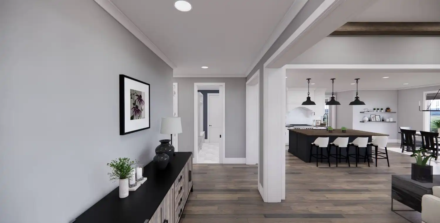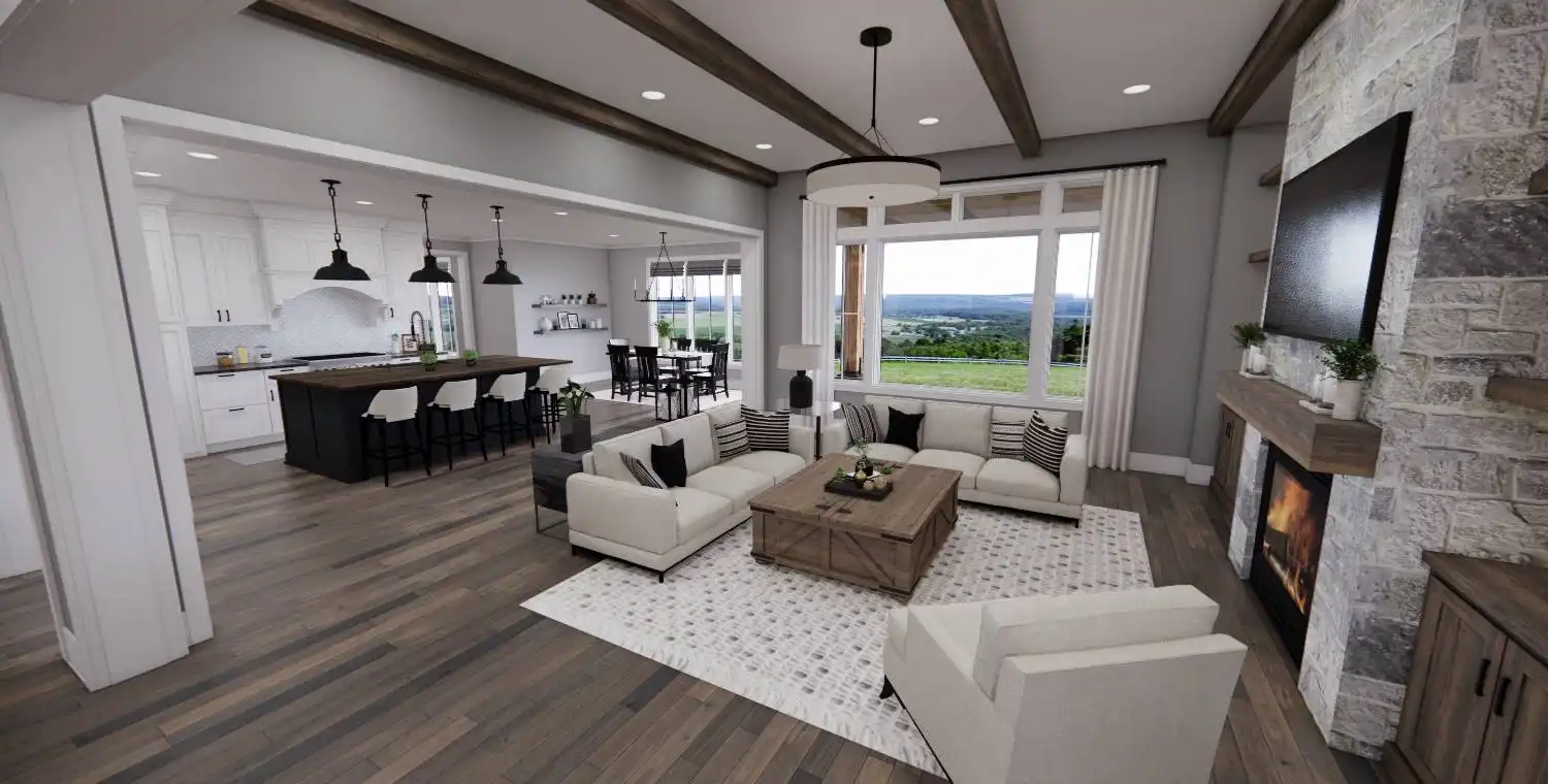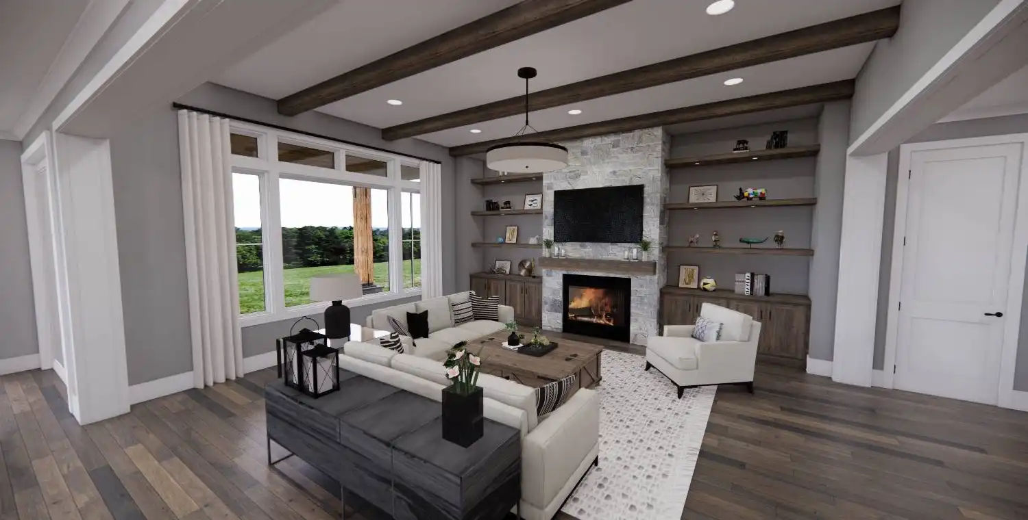 This 3-bedroom, 2-bath Traditional Farmhouse offers open living spaces, a private master suite, and a bonus room for future expansion. With covered porches, a cozy fireplace, and functional design details throughout, Weston Lake provides the perfect balance of charm and comfort.