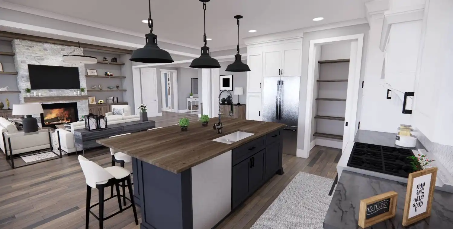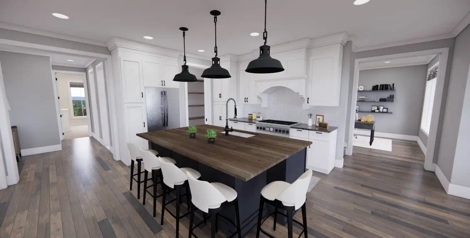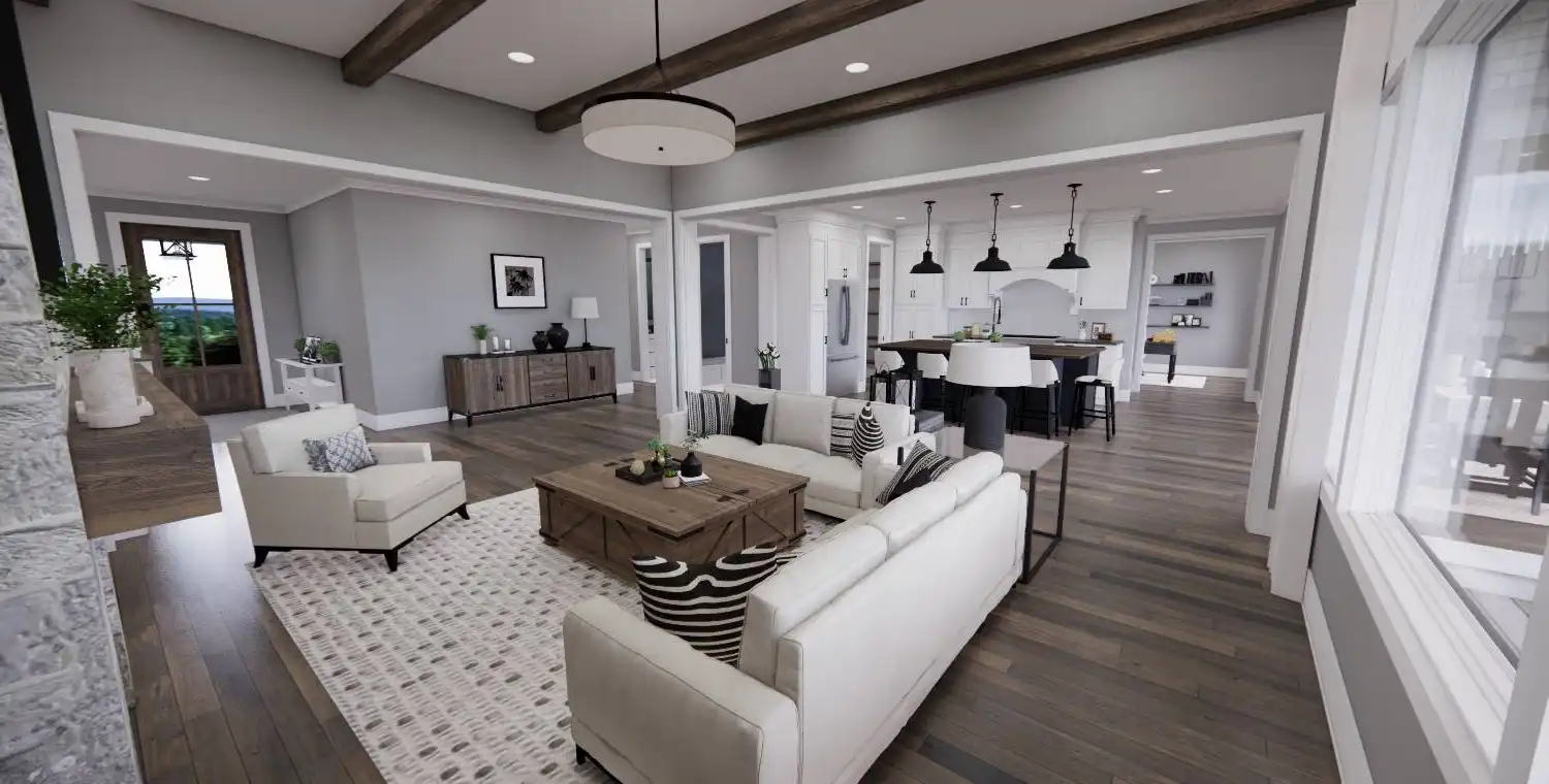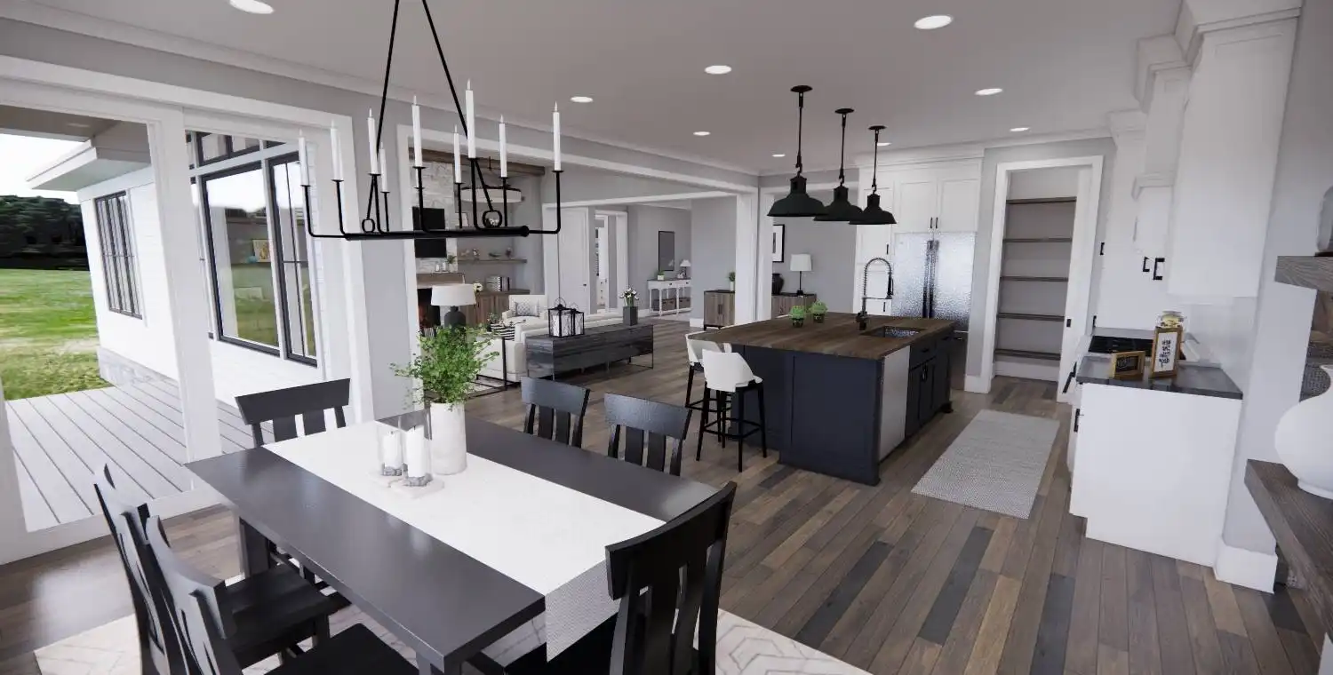 This 3-bedroom, 2-bath Traditional Farmhouse offers open living spaces, a private master suite, and a bonus room for future expansion. With covered porches, a cozy fireplace, and functional design details throughout, Weston Lake provides the perfect balance of charm and comfort.