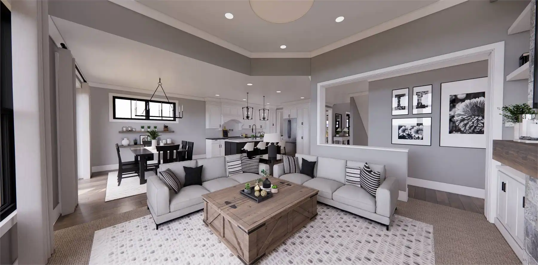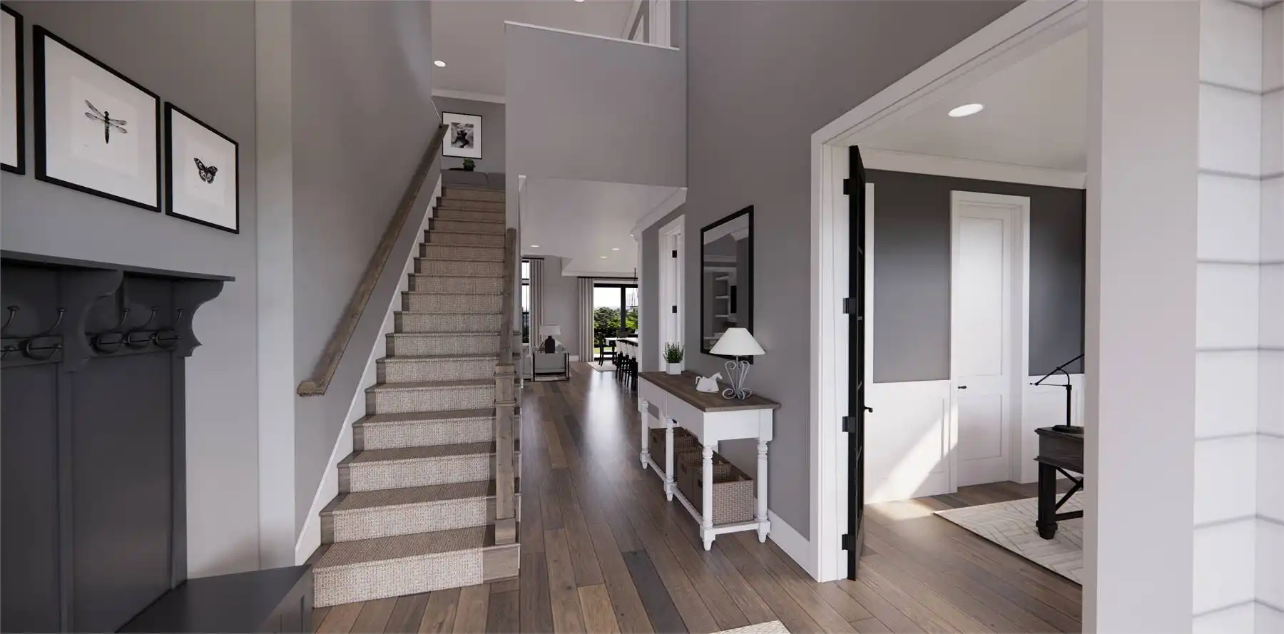 With 2,341 square feet of heated space, this thoughtfully designed home features 3 bedrooms and 3.5 baths arranged for modern living. The great room flows seamlessly into the dining room and island kitchen, creating an easy setting for entertaining and daily routines. The primary suite is located on the main floor and offers privacy along with generous closet space and a comfortable bath layout. Split bedrooms enhance privacy for family members or guests. A mud room and laundry room on the first floor add convenience and organization. The upper-level loft provides flexible living space while overlooking the main living area below. Finished with a covered front porch and outdoor living area, this home delivers a warm and welcoming place to settle in and enjoy.