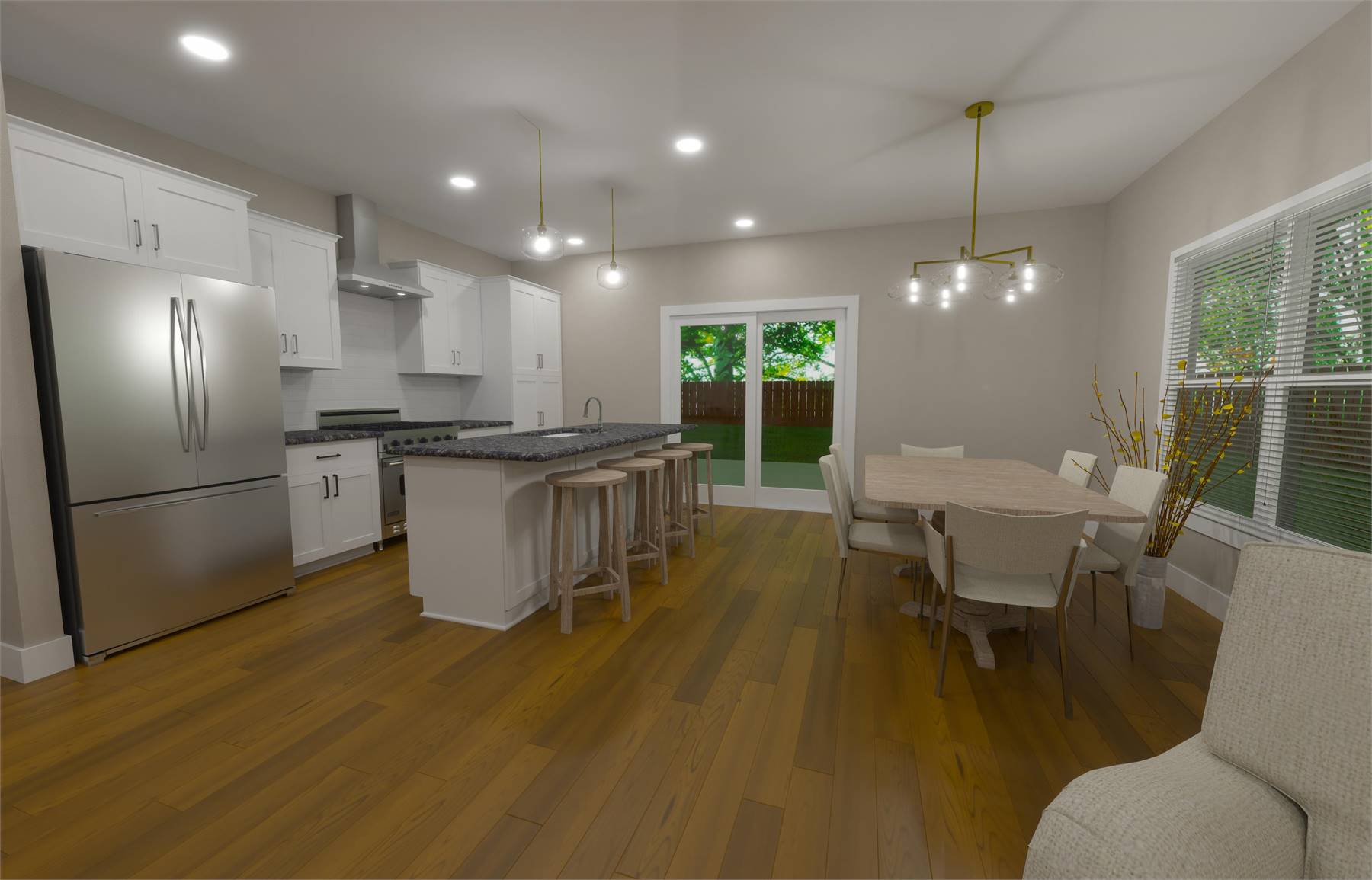 This charming 1,788 square foot plan combines efficient use of space with inviting areas designed for comfortable family routines. The kitchen features an island, peninsula seating, and a butler’s pantry, giving you a versatile workspace that connects seamlessly to the dining and family rooms. A front porch welcomes guests, while the rear porch provides an easy outdoor extension of the main living areas. The upstairs primary suite offers a vaulted ceiling, double vanity bath, and generous walk-in closet, creating a restful and private escape. Three additional bedrooms share the upper floor with a conveniently located laundry room that simplifies daily chores. A main-floor home office adds practicality for work, study, or planning. Blending warmth, function, and an easy flow between spaces, this home creates an atmosphere that feels comfortable and lived-in from the moment you step inside.