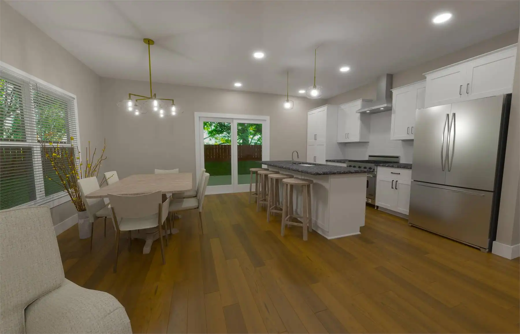 This charming 1,788 square foot plan combines efficient use of space with inviting areas designed for comfortable family routines. The kitchen features an island, peninsula seating, and a butler’s pantry, giving you a versatile workspace that connects seamlessly to the dining and family rooms. A front porch welcomes guests, while the rear porch provides an easy outdoor extension of the main living areas. The upstairs primary suite offers a vaulted ceiling, double vanity bath, and generous walk-in closet, creating a restful and private escape. Three additional bedrooms share the upper floor with a conveniently located laundry room that simplifies daily chores. A main-floor home office adds practicality for work, study, or planning. Blending warmth, function, and an easy flow between spaces, this home creates an atmosphere that feels comfortable and lived-in from the moment you step inside.