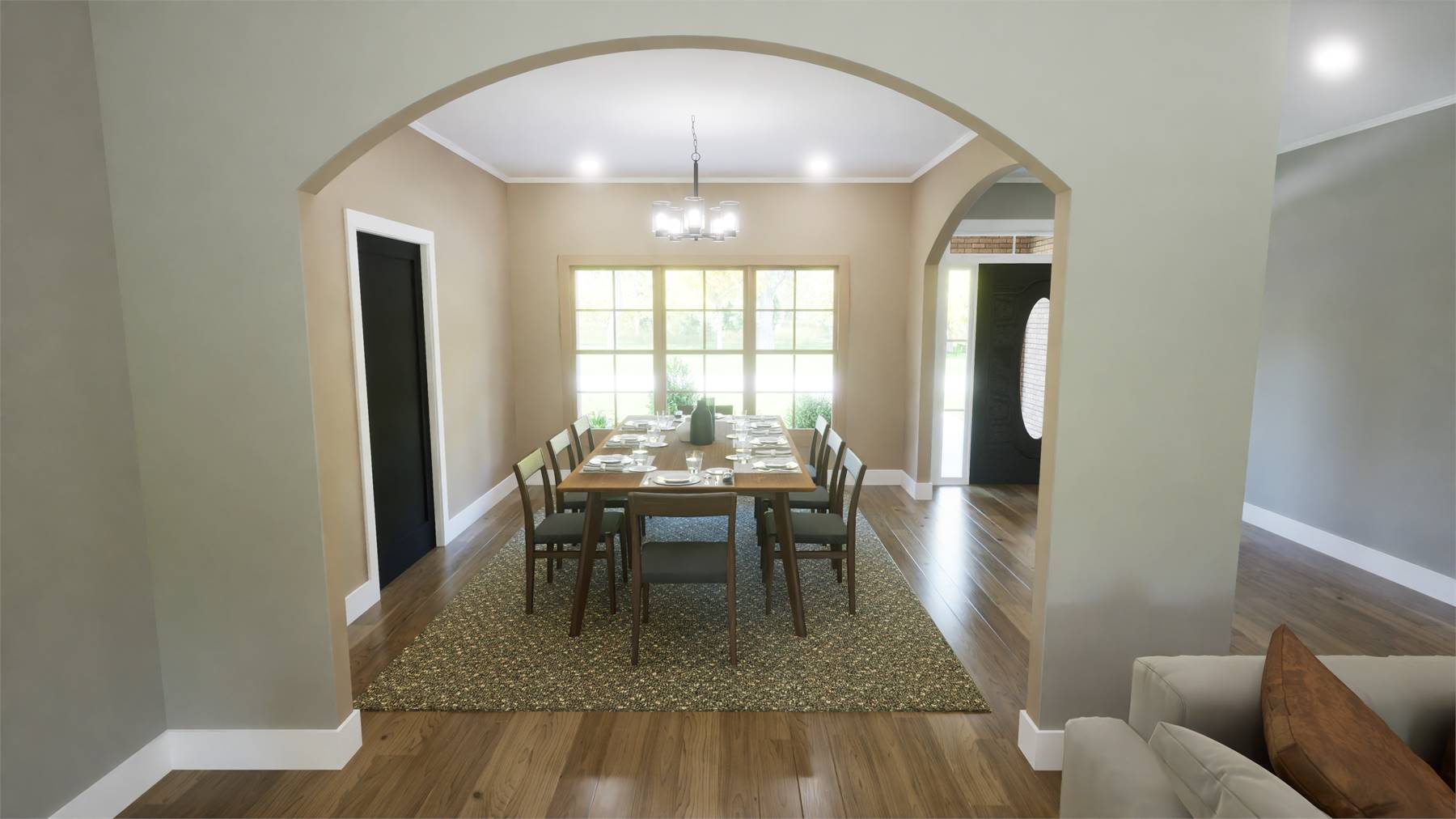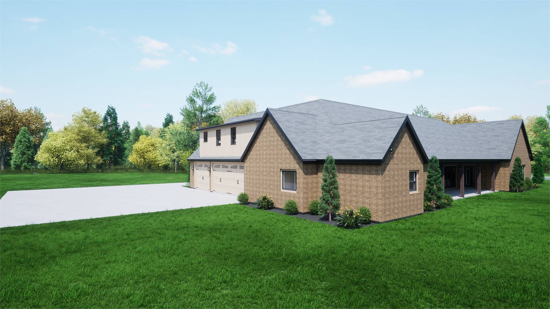 This charming 3,786 square foot plan blends comfort, storage, and open design into a layout that supports relaxed family living. The kitchen’s island, peninsula, and butler’s pantry provide functional cooking and prep space while connecting smoothly to the great room, where a vaulted ceiling adds a sense of volume and warmth. The main-floor primary suite features a spacious bath with double vanities and a walk-in closet, while the split-bedroom layout enhances privacy for both family and guests. A welcoming foyer leads into the heart of the home, and nearby spaces such as the exercise room, home office, and rec room offer versatility for work, play, and wellness. The covered front and rear porches, along with the back patio, give you multiple ways to enjoy the outdoors. With its comfortable flow and inviting spaces, this home offers a warm and easygoing setting that suits everyday life beautifully.