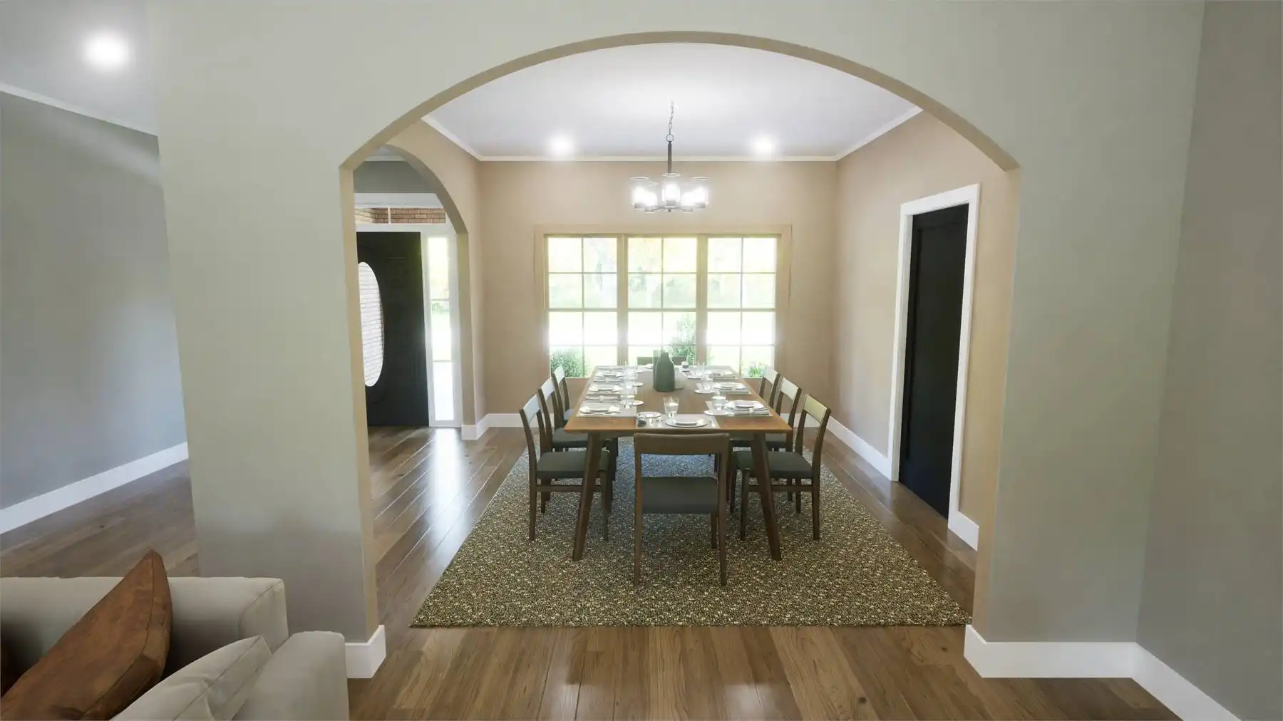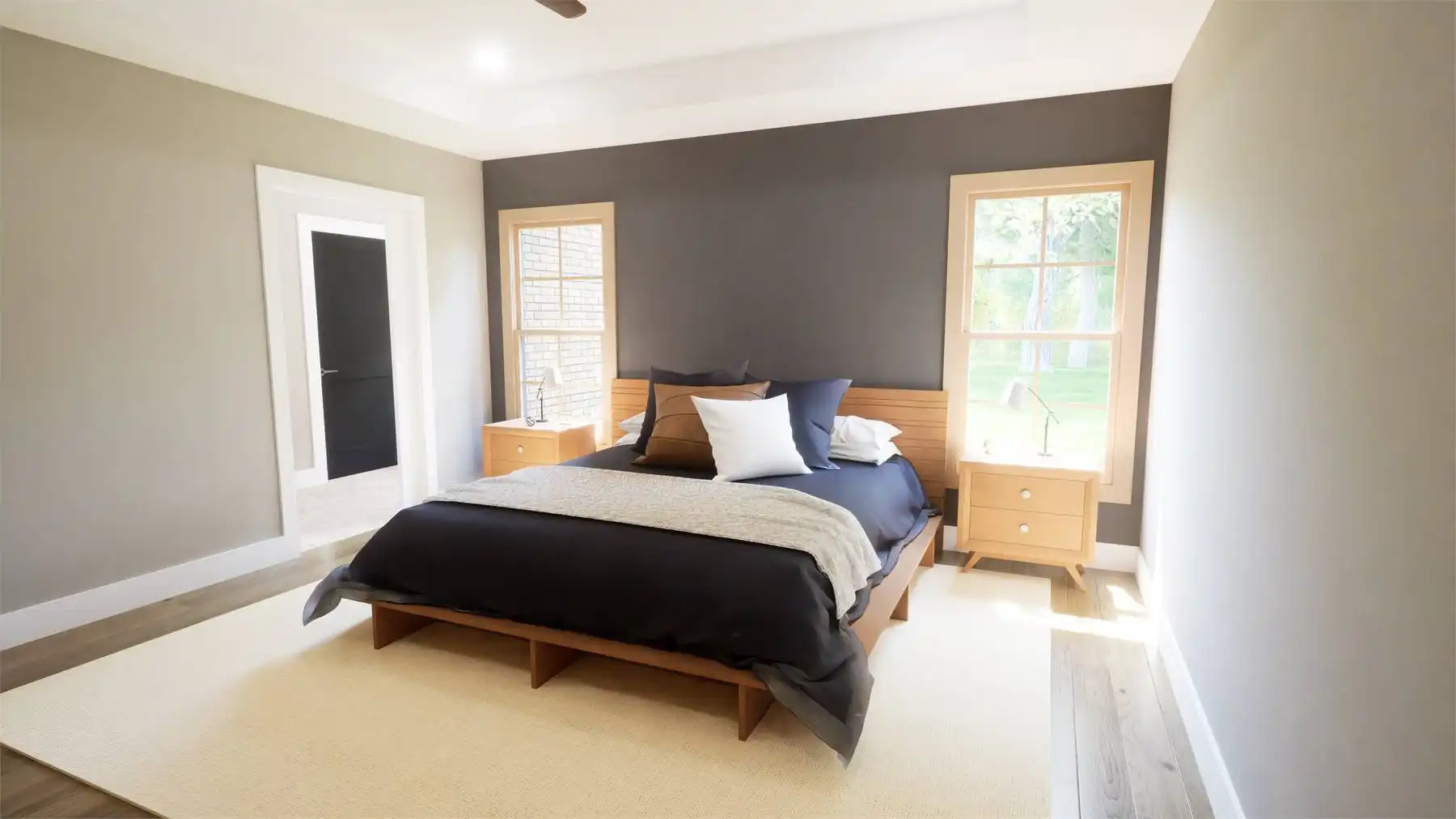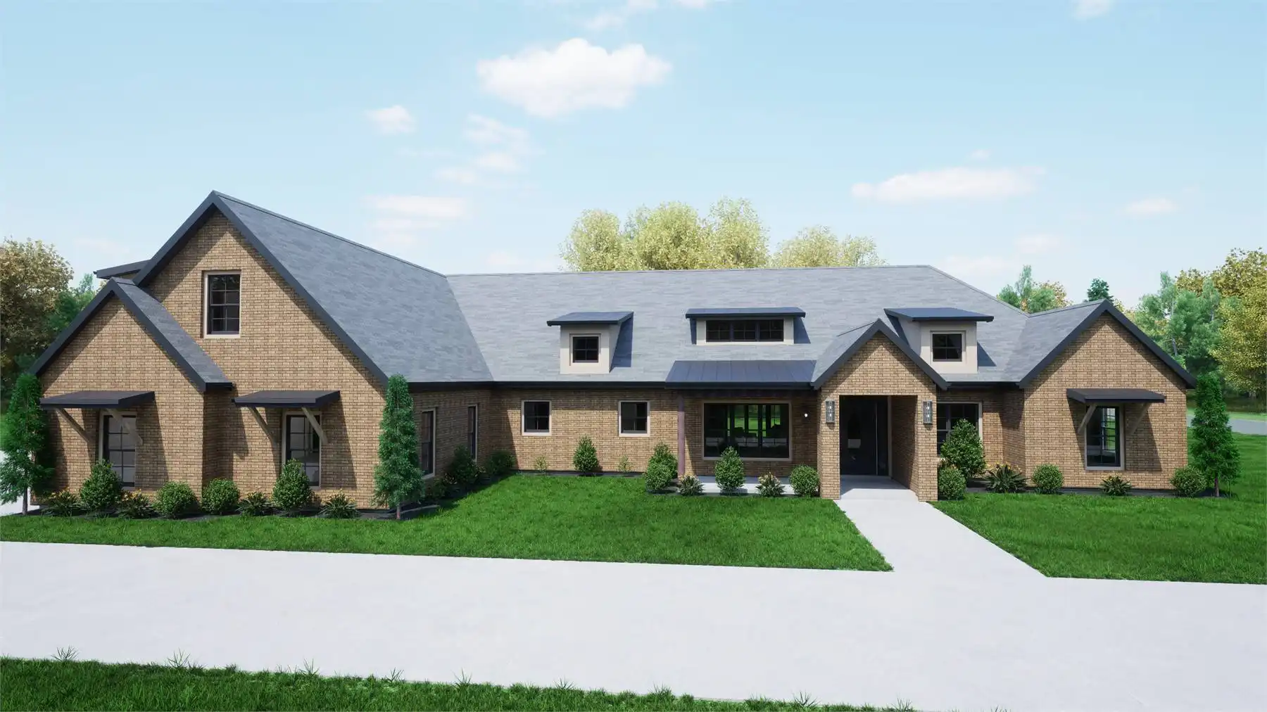 This charming 3,786 square foot plan blends comfort, storage, and open design into a layout that supports relaxed family living. The kitchen’s island, peninsula, and butler’s pantry provide functional cooking and prep space while connecting smoothly to the great room, where a vaulted ceiling adds a sense of volume and warmth. The main-floor primary suite features a spacious bath with double vanities and a walk-in closet, while the split-bedroom layout enhances privacy for both family and guests. A welcoming foyer leads into the heart of the home, and nearby spaces such as the exercise room, home office, and rec room offer versatility for work, play, and wellness. The covered front and rear porches, along with the back patio, give you multiple ways to enjoy the outdoors. With its comfortable flow and inviting spaces, this home offers a warm and easygoing setting that suits everyday life beautifully.