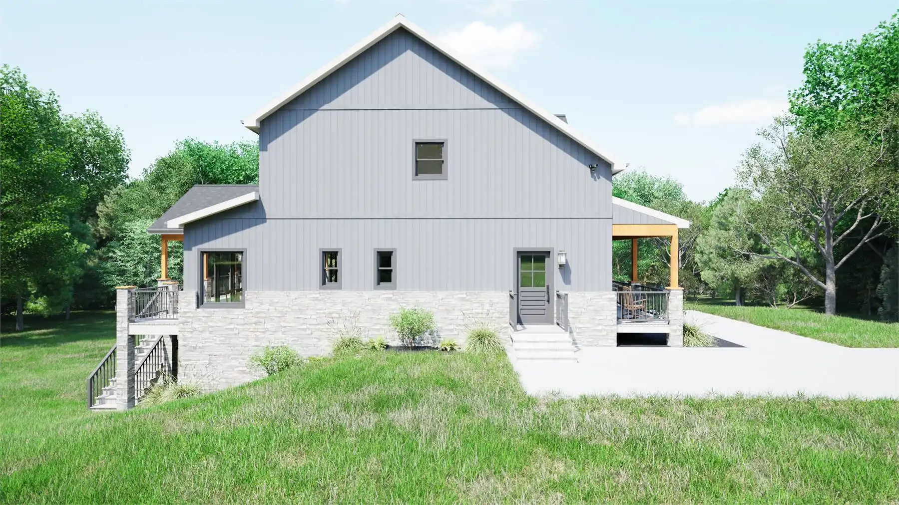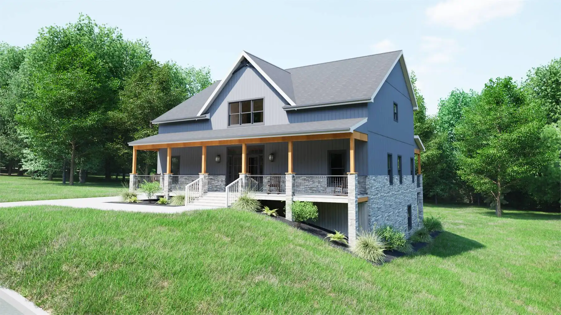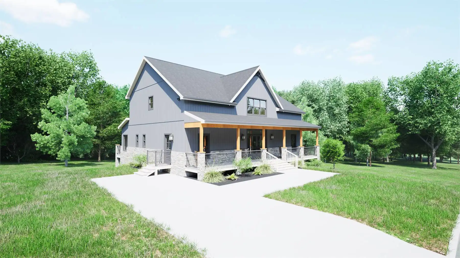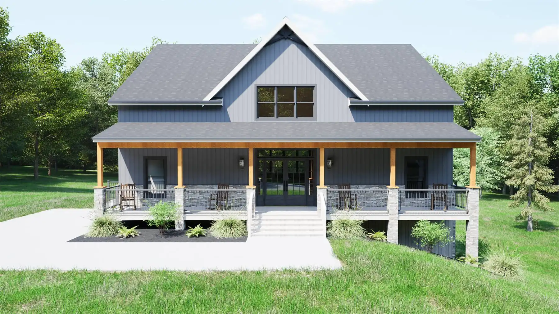 This charming 2,159 square feet layout offers a balanced blend of relaxation, efficiency, and warmth, making it ideal for comfortable family living. The main floor includes an open family room that connects naturally to the dining area and kitchen, where a walk-in pantry, butler’s pantry, and island provide plenty of convenience. The main-floor primary suite offers privacy and comfort with its double-sink bath and generous closet. Upstairs, the bonus room and additional bedrooms create a flexible space that adapts easily to changing needs. A practical mud room and first-floor laundry add ease to daily routines, while the home office offers a quiet spot for focused work. With its covered porches and inviting deck, the home extends living outdoors in a relaxed and welcoming way. This design offers a cozy and adaptable atmosphere that encourages comfortable living from the moment you arrive.