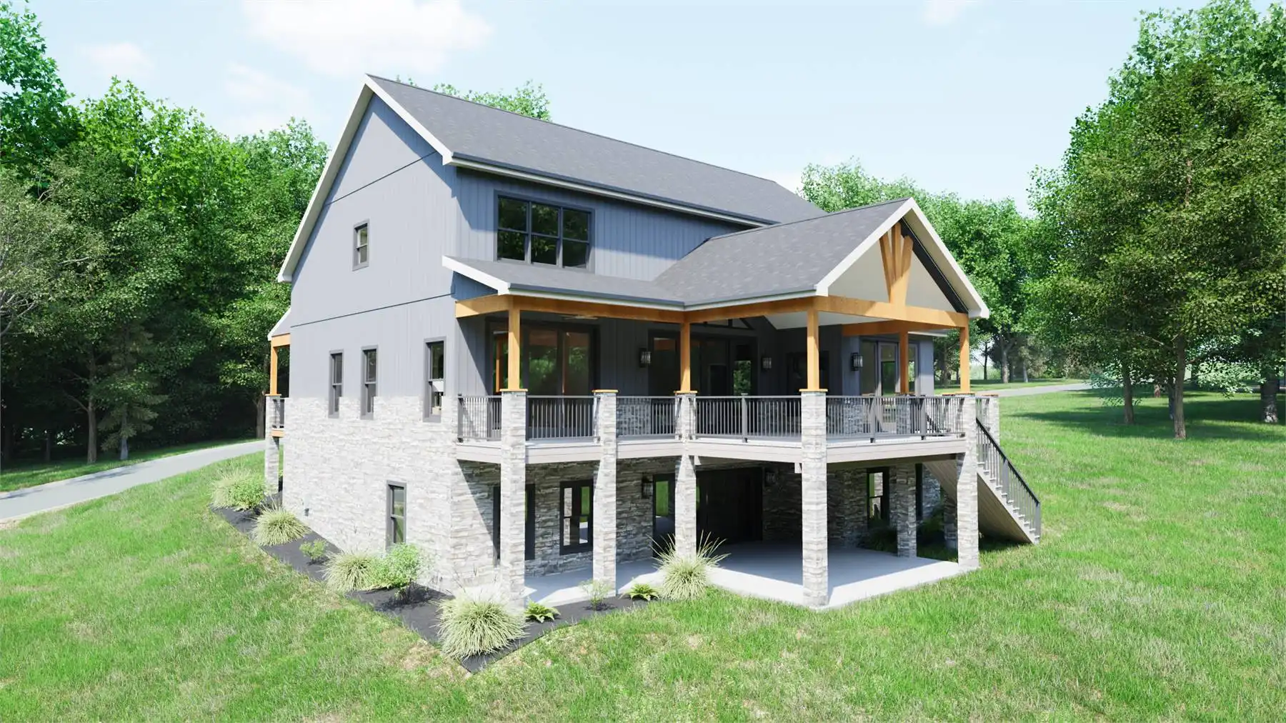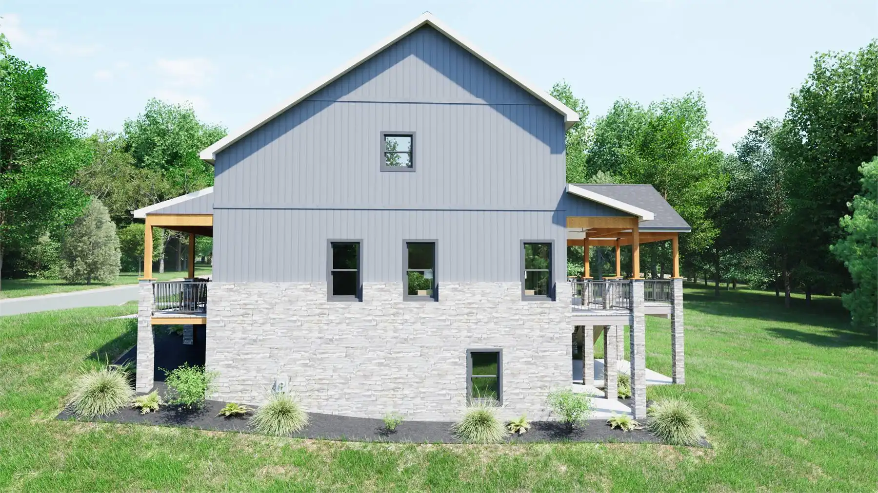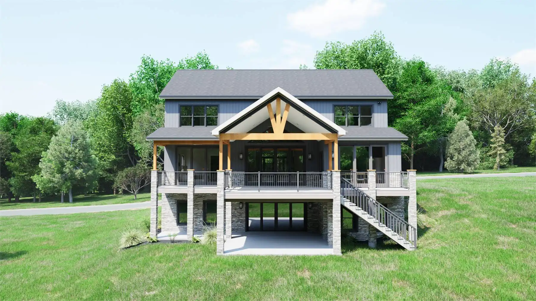 This charming 2,159 square feet layout offers a balanced blend of relaxation, efficiency, and warmth, making it ideal for comfortable family living. The main floor includes an open family room that connects naturally to the dining area and kitchen, where a walk-in pantry, butler’s pantry, and island provide plenty of convenience. The main-floor primary suite offers privacy and comfort with its double-sink bath and generous closet. Upstairs, the bonus room and additional bedrooms create a flexible space that adapts easily to changing needs. A practical mud room and first-floor laundry add ease to daily routines, while the home office offers a quiet spot for focused work. With its covered porches and inviting deck, the home extends living outdoors in a relaxed and welcoming way. This design offers a cozy and adaptable atmosphere that encourages comfortable living from the moment you arrive.