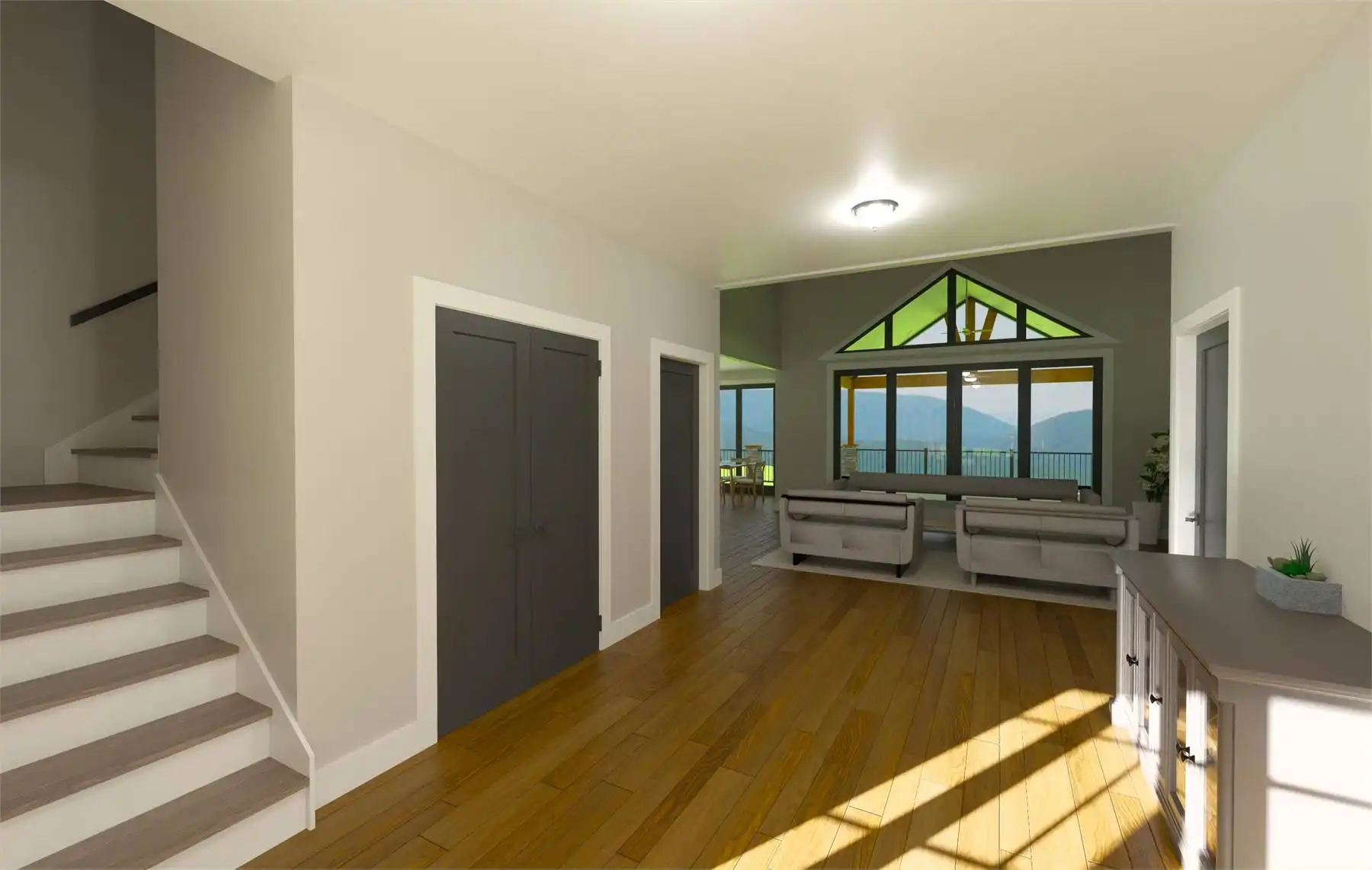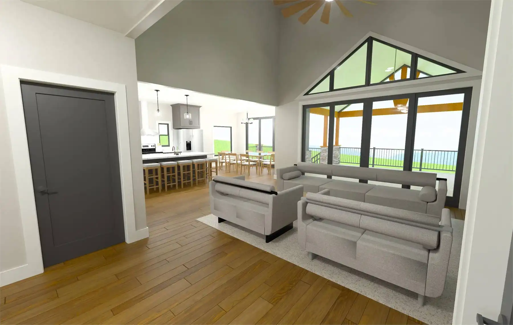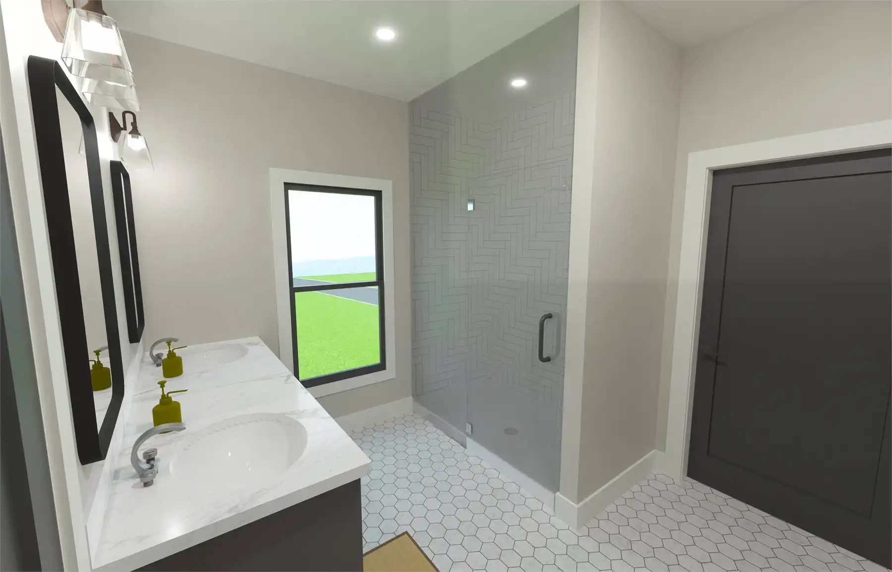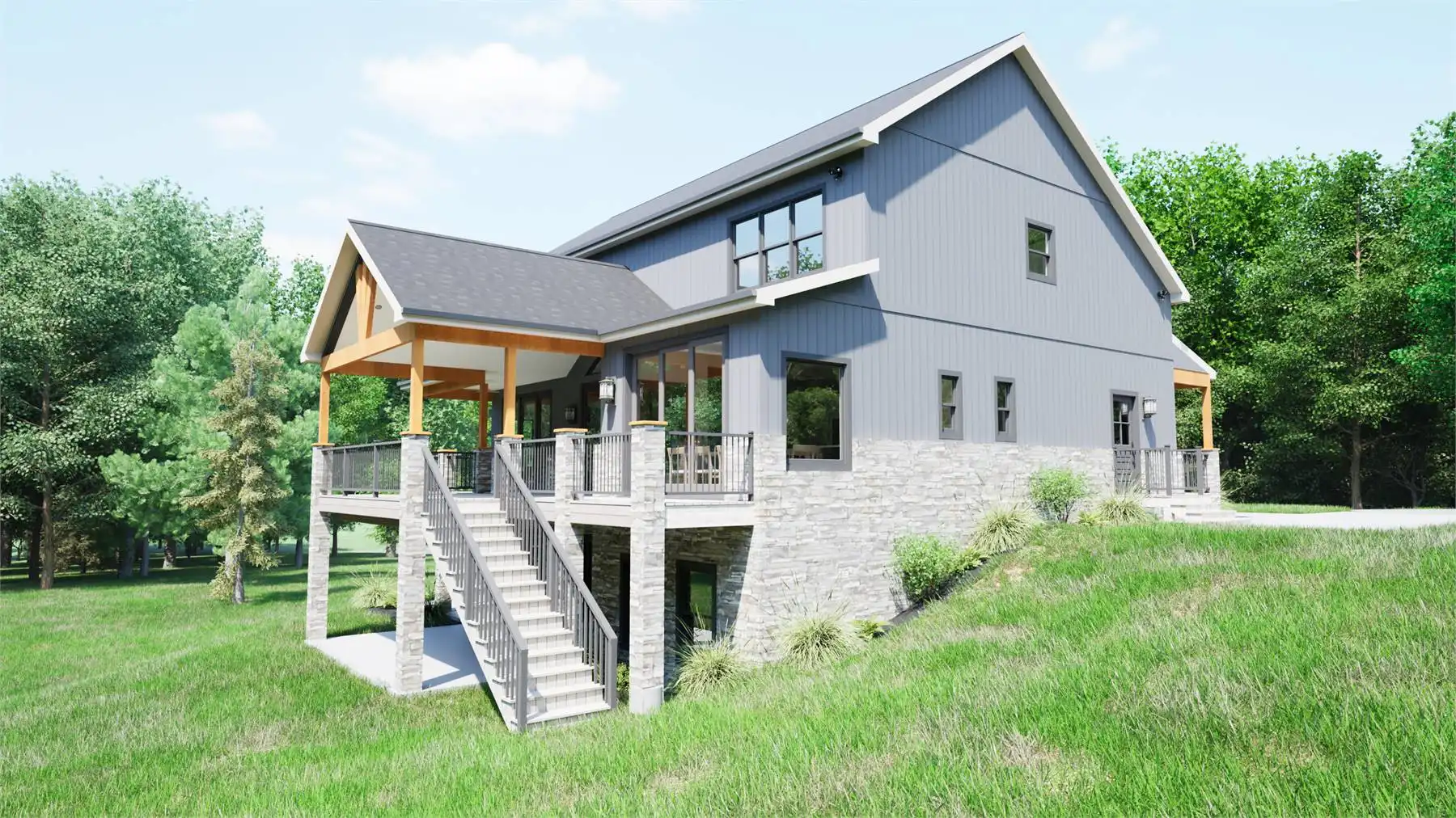 This charming 2,159 square feet layout offers a balanced blend of relaxation, efficiency, and warmth, making it ideal for comfortable family living. The main floor includes an open family room that connects naturally to the dining area and kitchen, where a walk-in pantry, butler’s pantry, and island provide plenty of convenience. The main-floor primary suite offers privacy and comfort with its double-sink bath and generous closet. Upstairs, the bonus room and additional bedrooms create a flexible space that adapts easily to changing needs. A practical mud room and first-floor laundry add ease to daily routines, while the home office offers a quiet spot for focused work. With its covered porches and inviting deck, the home extends living outdoors in a relaxed and welcoming way. This design offers a cozy and adaptable atmosphere that encourages comfortable living from the moment you arrive.