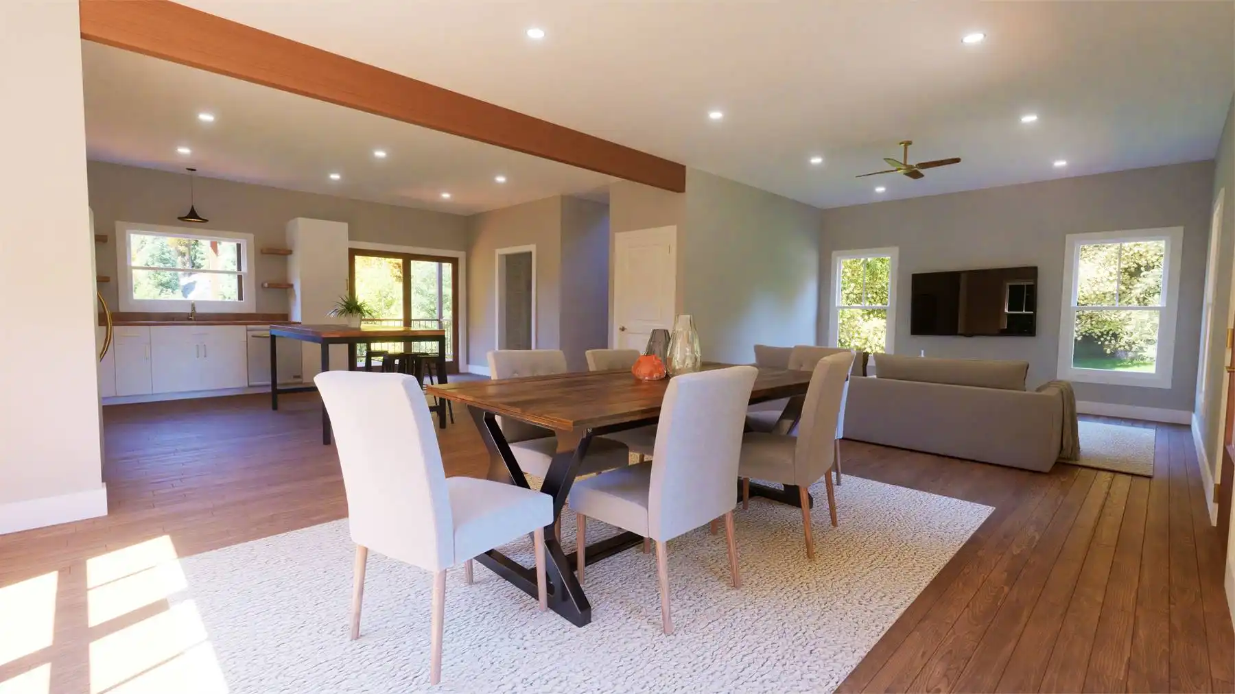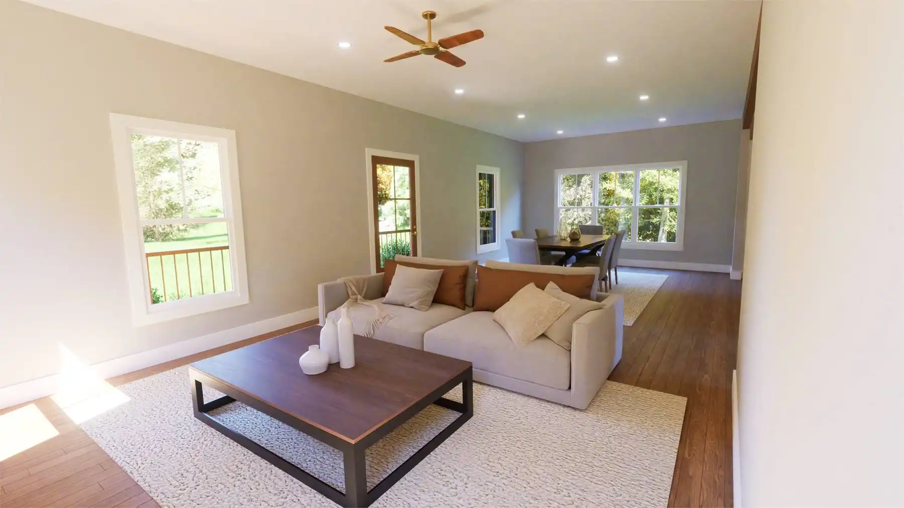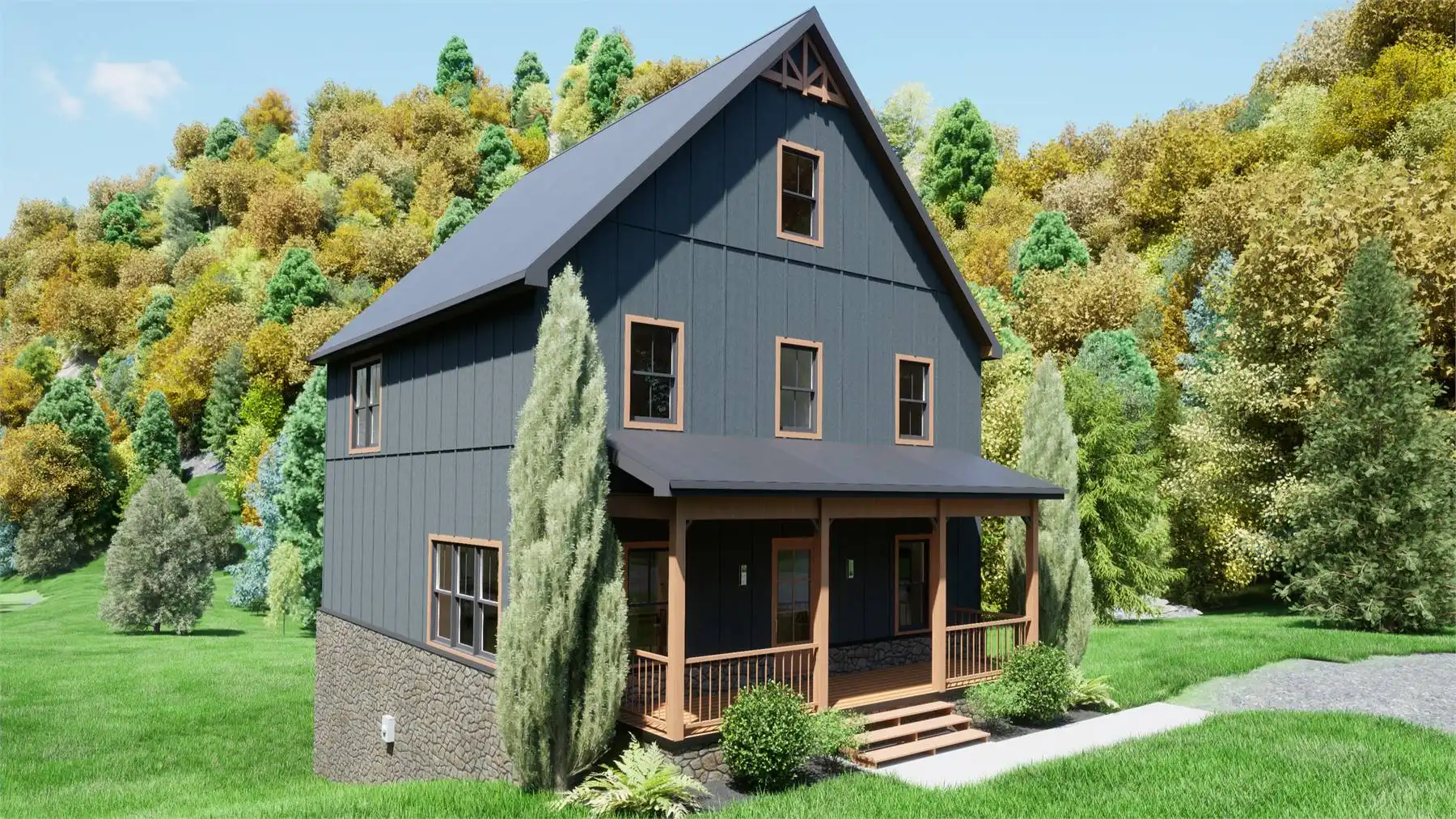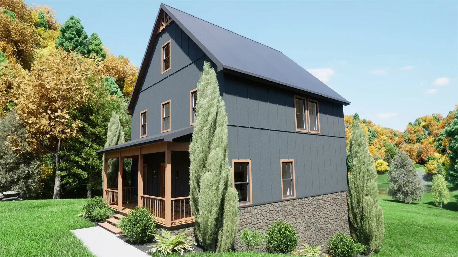 This charming 1,779 square feet plan blends simplicity and warmth in a design that feels both inviting and efficient. The main floor features an open dining space that flows naturally toward the kitchen, arranged in a classic L-shape to make cooking and entertaining easy. The upstairs primary suite is a comfortable haven, complete with a walk-in closet, double sinks, and a private bath with a separate tub and shower. Two additional bedrooms offer flexibility for family or guests, while the first-floor laundry adds a touch of convenience to daily routines. A basement level provides unfinished space for storage or future projects, allowing the home to grow with your needs. With its covered front porch and spacious rear deck, this home encourages outdoor enjoyment throughout the seasons. Altogether, it delivers a cozy and functional layout that feels just right for comfortable family living.
