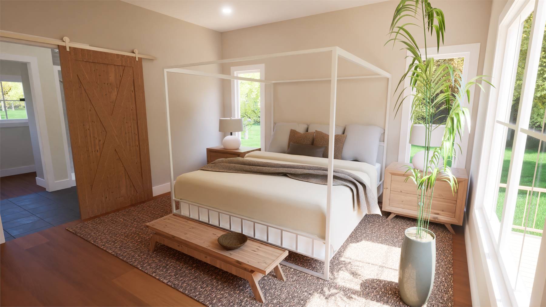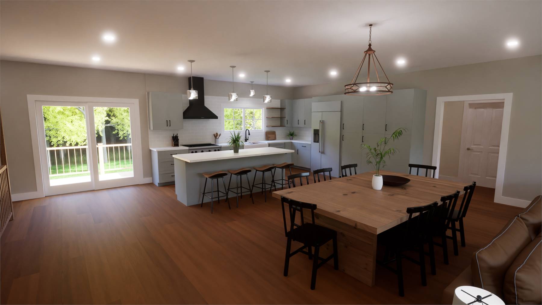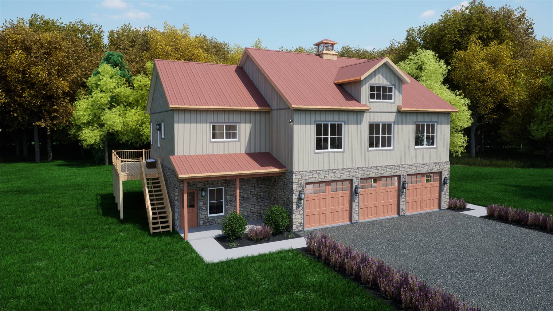 This charming 2,108 square feet plan offers modern family living with open spaces, flexible design, and a bright, airy feel. The L-shaped kitchen stands at the center with a spacious island and a peninsula bar ideal for casual dining or entertaining. Upstairs, the primary bedroom includes a large walk-in closet and a stylish bath with a double vanity, creating a peaceful escape from the day. Two additional bedrooms share the upper level, alongside a conveniently located laundry room. The home’s open dining and living areas extend to a front porch and rear deck, inviting connection with the outdoors. With a front-entry, attached garage and unfinished space for future customization, this design delivers a perfect blend of charm, efficiency, and everyday livability.