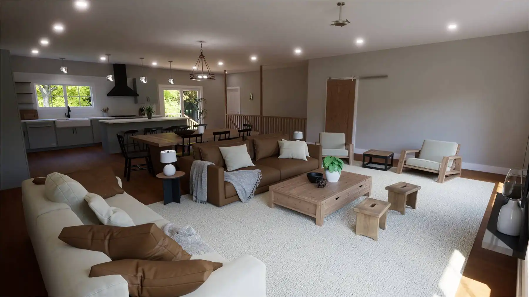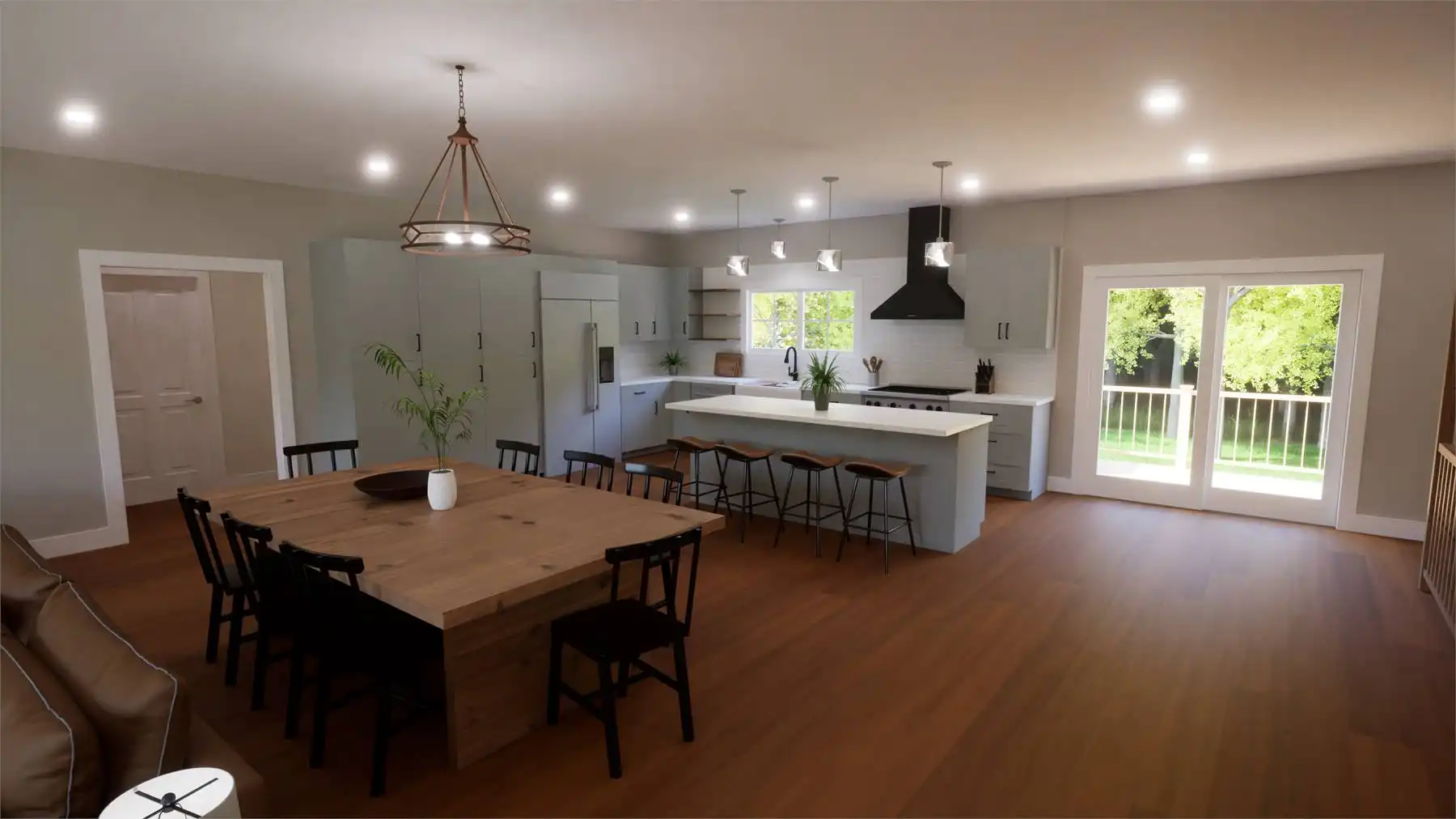This charming 2,108 square feet plan offers modern family living with open spaces, flexible design, and a bright, airy feel. The L-shaped kitchen stands at the center with a spacious island and a peninsula bar ideal for casual dining or entertaining. Upstairs, the primary bedroom includes a large walk-in closet and a stylish bath with a double vanity, creating a peaceful escape from the day. Two additional bedrooms share the upper level, alongside a conveniently located laundry room. The home’s open dining and living areas extend to a front porch and rear deck, inviting connection with the outdoors. With a front-entry, attached garage and unfinished space for future customization, this design delivers a perfect blend of charm, efficiency, and everyday livability.