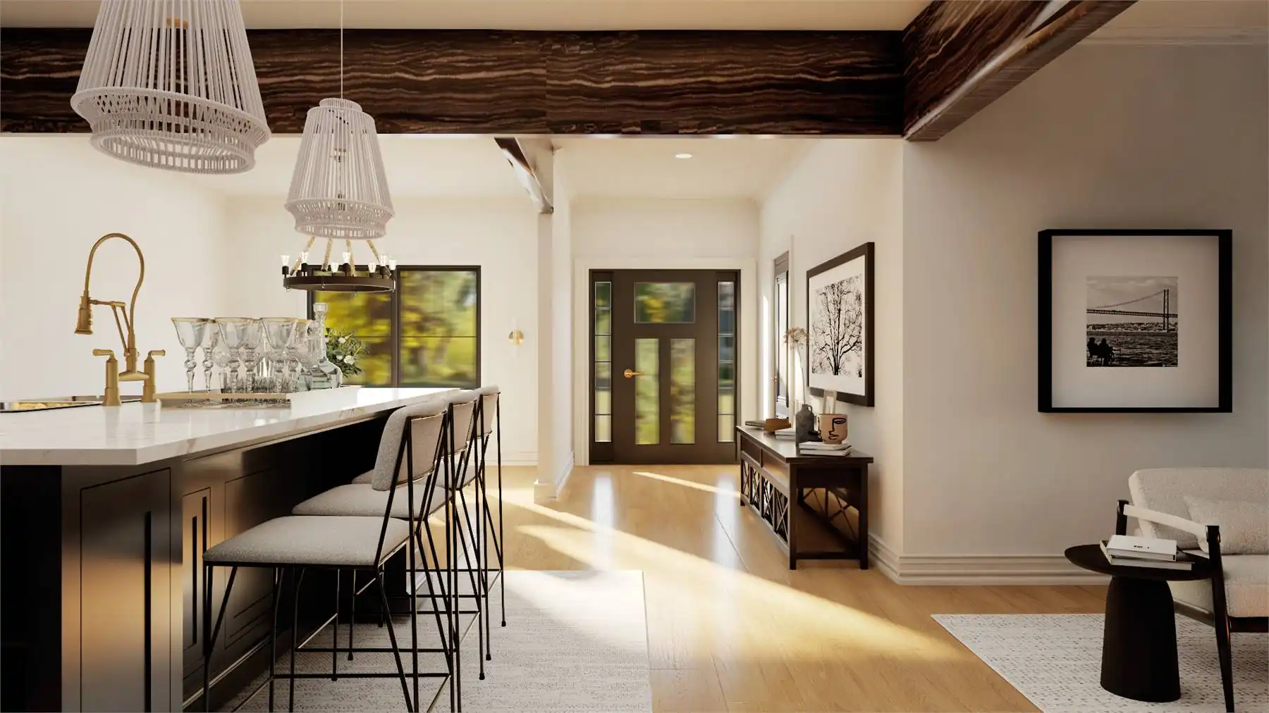 With 2,974 square feet of heated living space, this home delivers a well-balanced single-story design with 3 bedrooms and 3.5 bathrooms. The great room anchors the open floor plan and flows naturally into the kitchen and dining areas for easy family living. The kitchen is designed with an island, L-shaped counters, and a walk-in pantry that offer generous workspace and storage. The primary bedroom on the main level serves as a comfortable retreat with a spacious walk-in closet and private bath. Split bedrooms include a guest suite that adds privacy and convenience for overnight visitors. A home office, mud room, and first-floor laundry enhance everyday functionality. An inviting covered front porch completes the home with a welcoming space to relax and unwind.