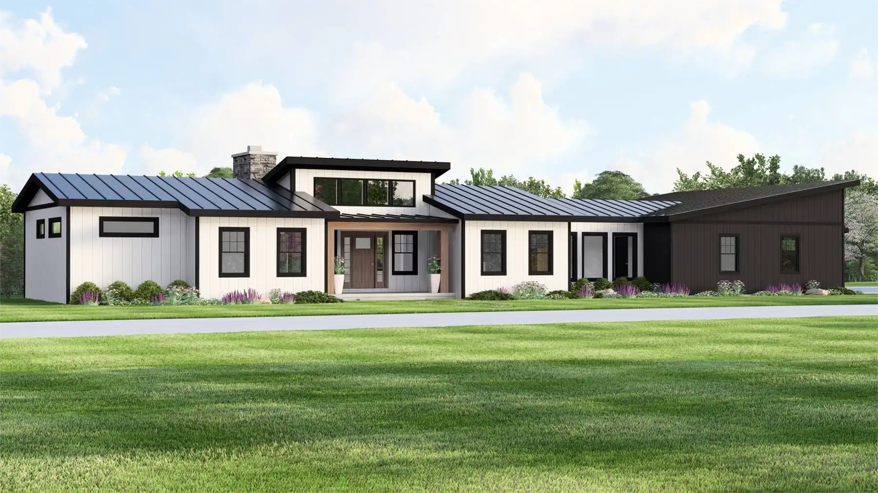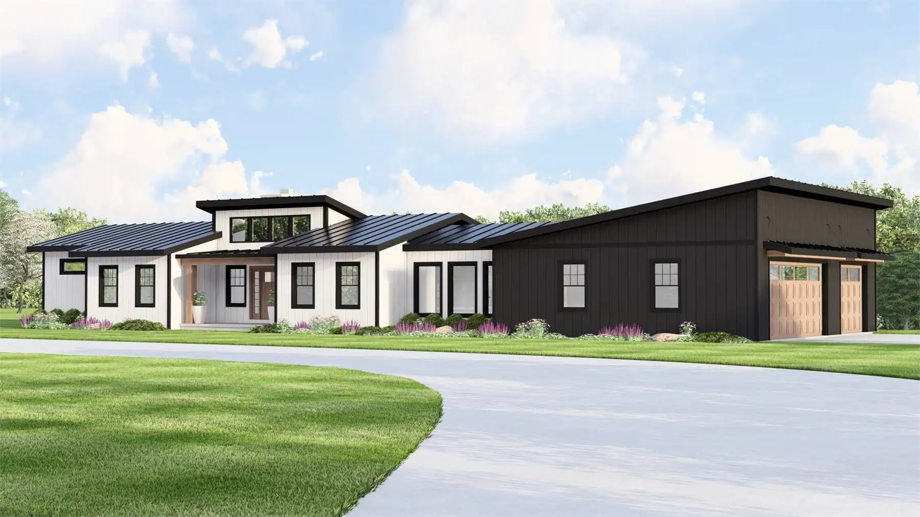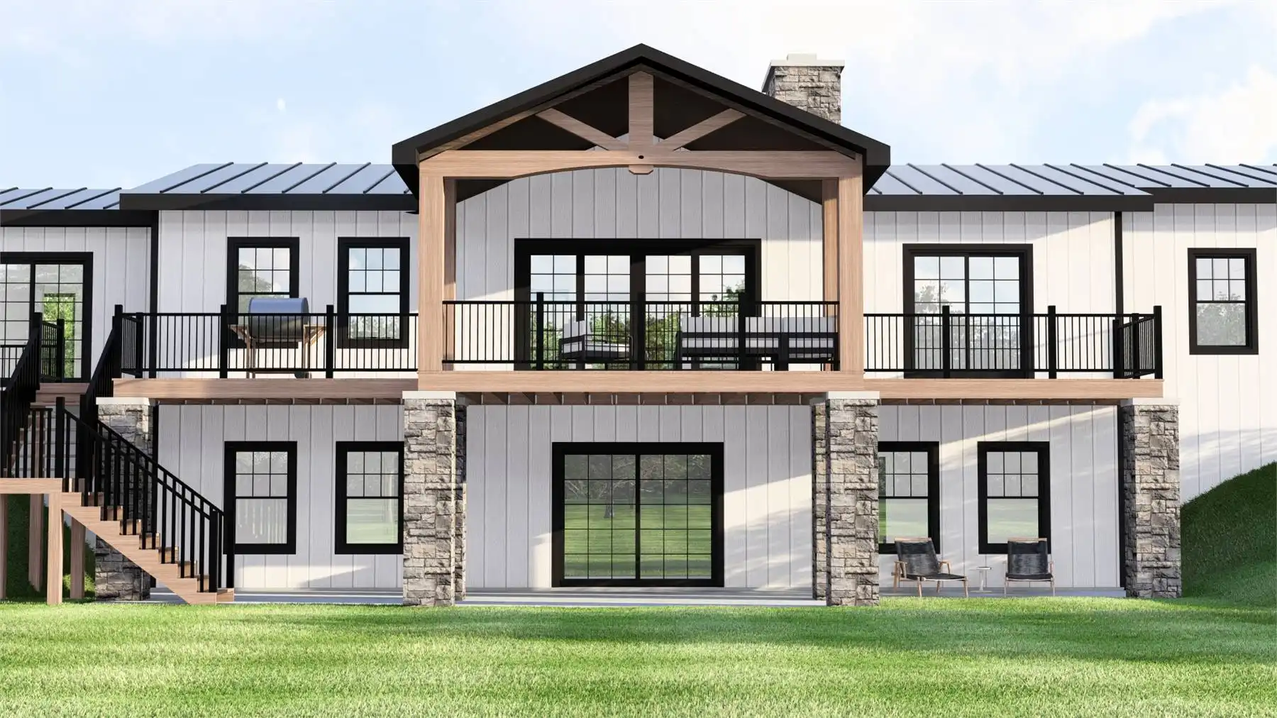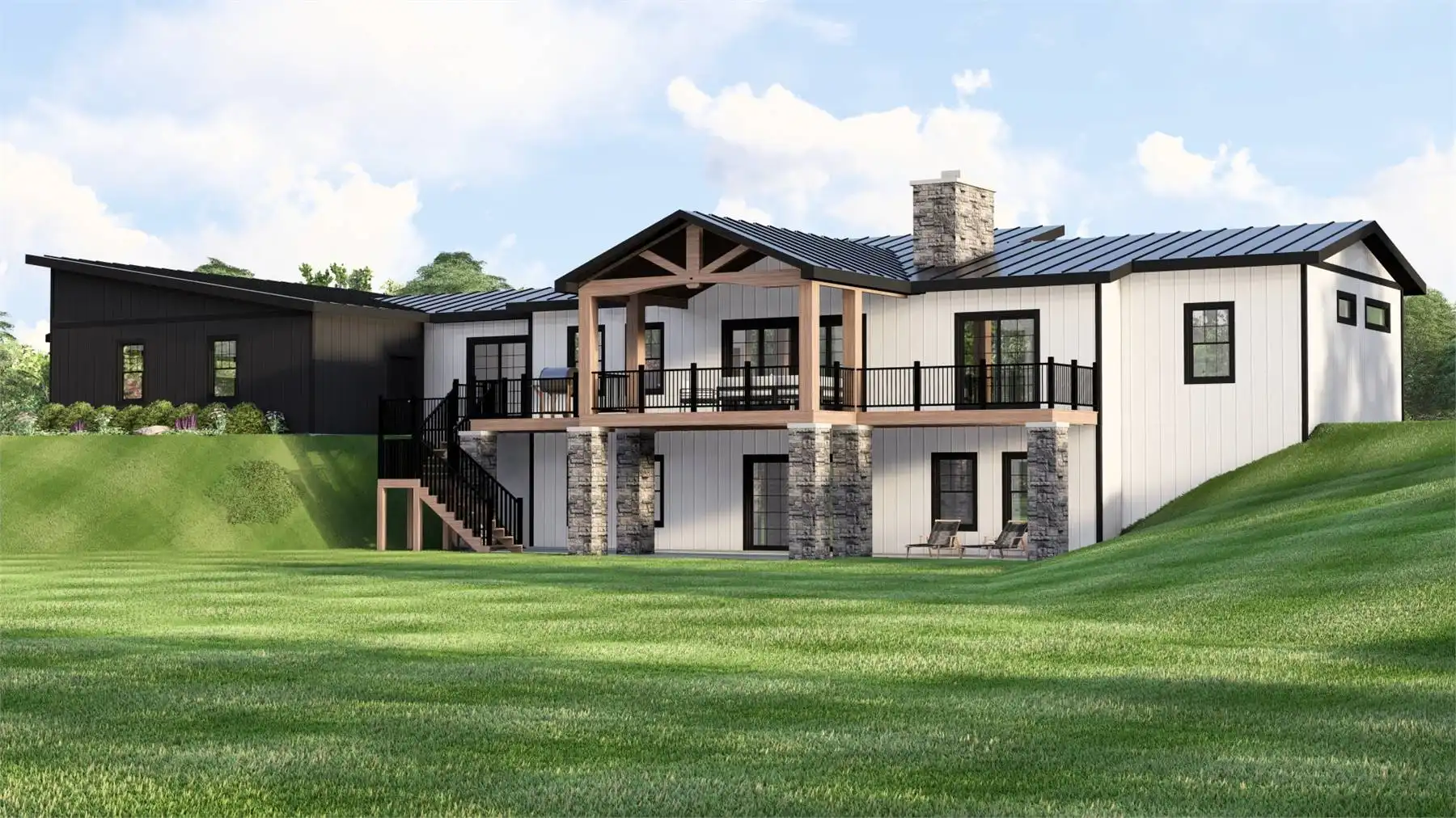 House Plan 11874 blends contemporary styling with rustic country warmth, featuring crisp rooflines, bold contrast, and an outdoor-living-first layout. Inside, 2,014 square feet on the main floor includes an airy great room, an island kitchen, and a butler’s pantry that makes entertaining feel effortless. The primary suite is located on the main level, and the plan also includes a home office, main-level laundry, and a mudroom drop zone off the garage. Multiple rear outdoor spaces—covered porch and deck areas—make this design especially appealing for lake, mountain, or view properties. A 3-car, side-entry garage adds serious function for storage, gear, and tools. Finish the basement to unlock 2 additional bedrooms, a full bath, and a kitchenette that’s perfect for multigenerational living or rental potential.
