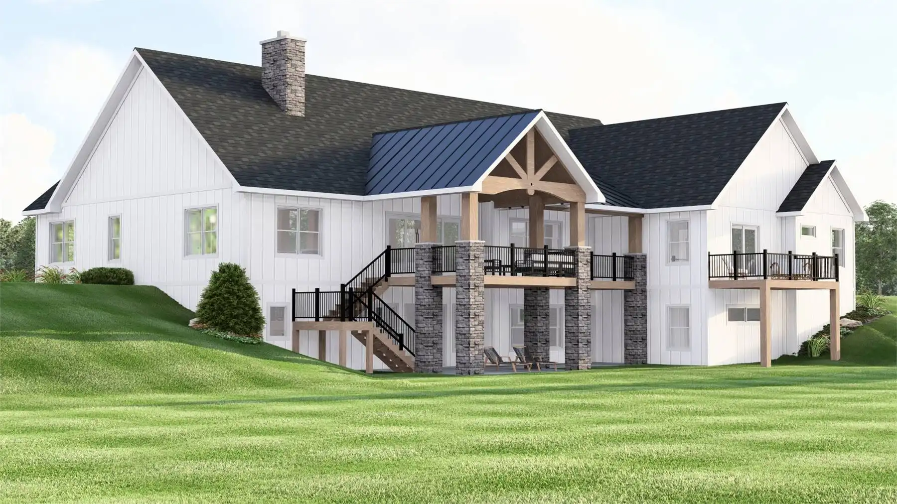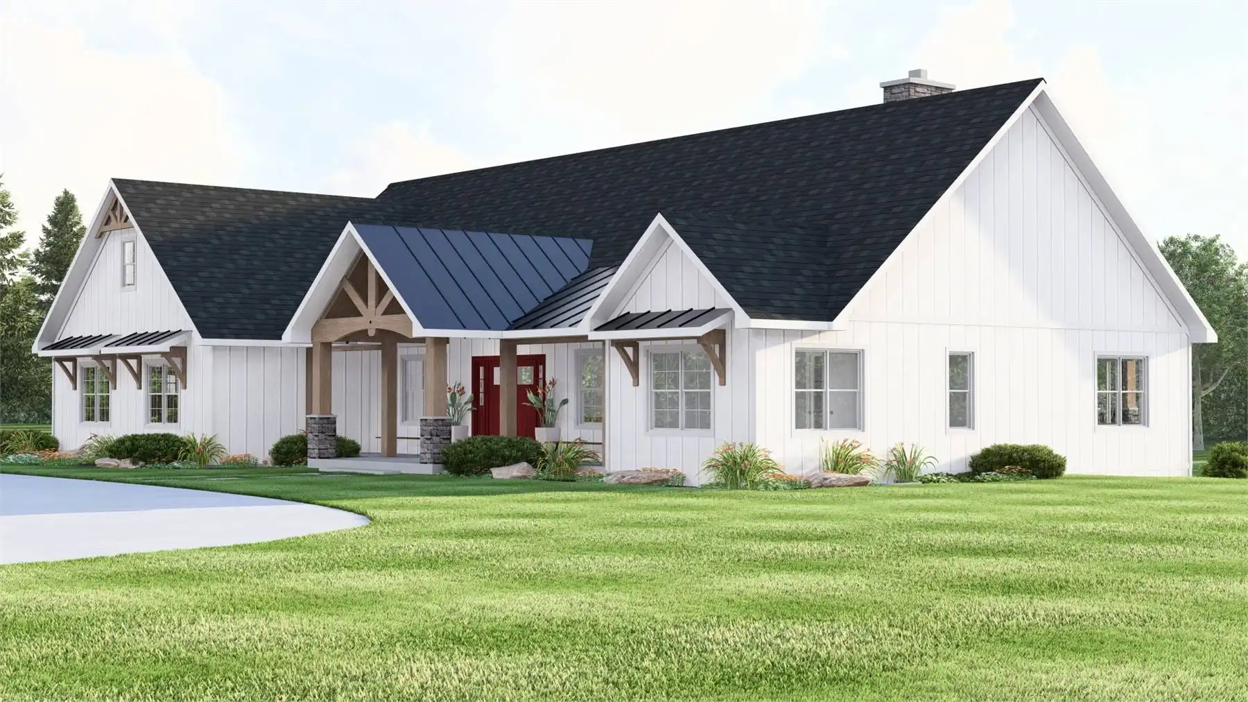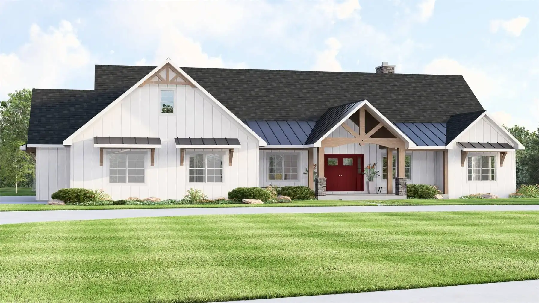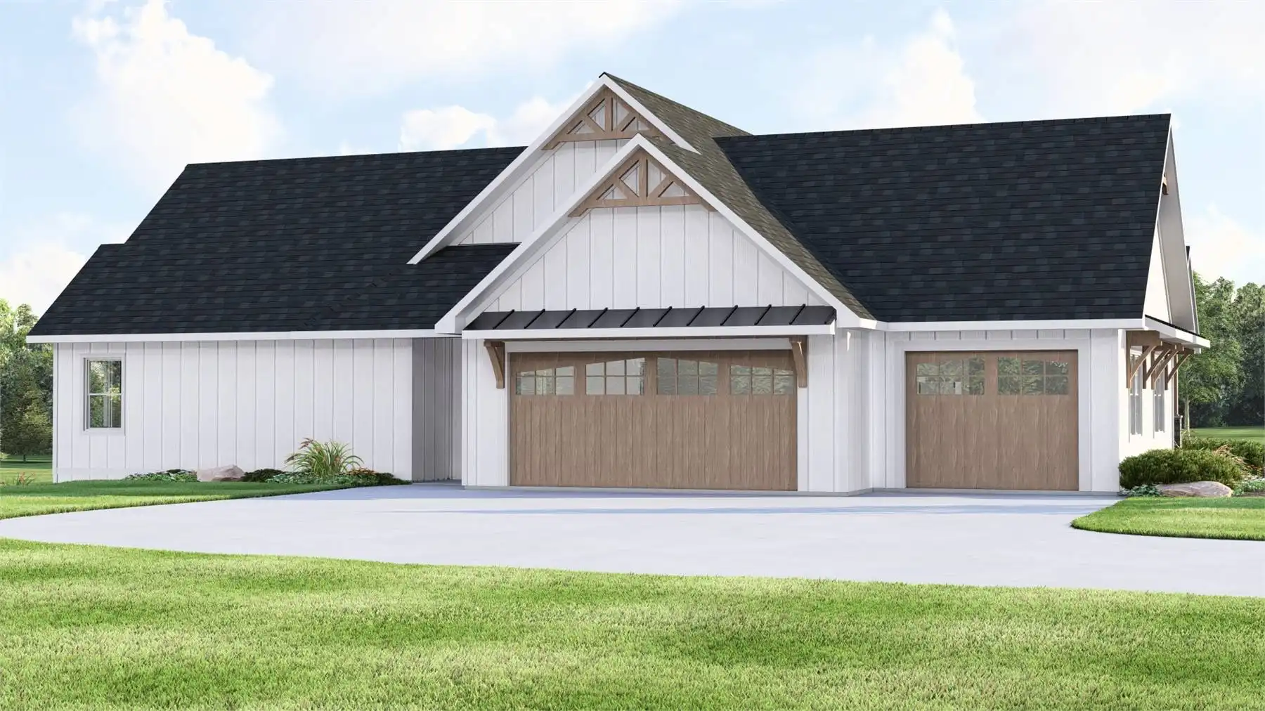 With 3,086 square feet of heated living space, this home delivers generous room sizes and a well-balanced layout designed for modern family living. The family room and great room provide multiple gathering spaces, anchored by a fireplace and enhanced by vaulted ceilings. The kitchen blends function and style with an island, L-shaped counters, butler’s pantry, and walk-in pantry that make hosting and meal prep effortless. A private home office and exercise room add flexibility for work, wellness, and hobbies. The primary bedroom on the main level offers a peaceful retreat with a walk-in closet and a well-appointed bath featuring double vanities and a separate tub and shower. Additional bedrooms are split from the primary suite to maintain privacy throughout the home. Covered porches and an outdoor living area, along with a deck, complete the design with welcoming spaces for enjoying time outdoors.
