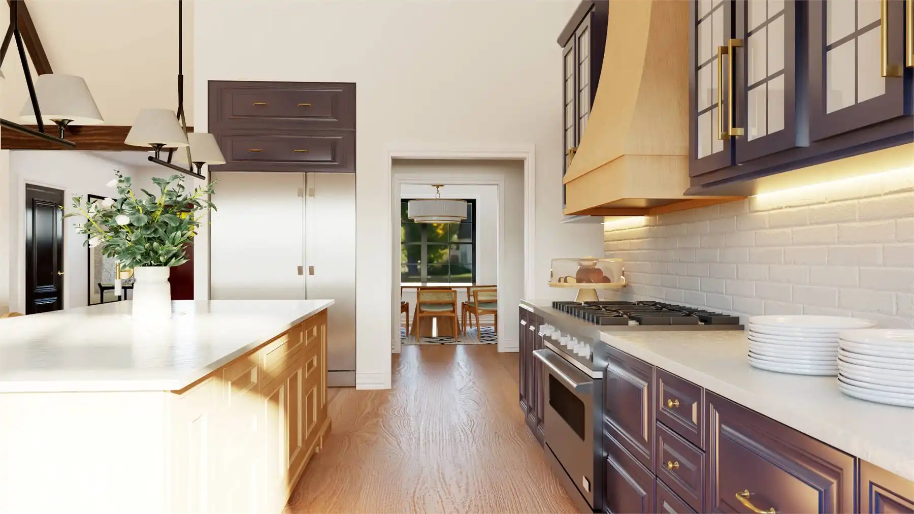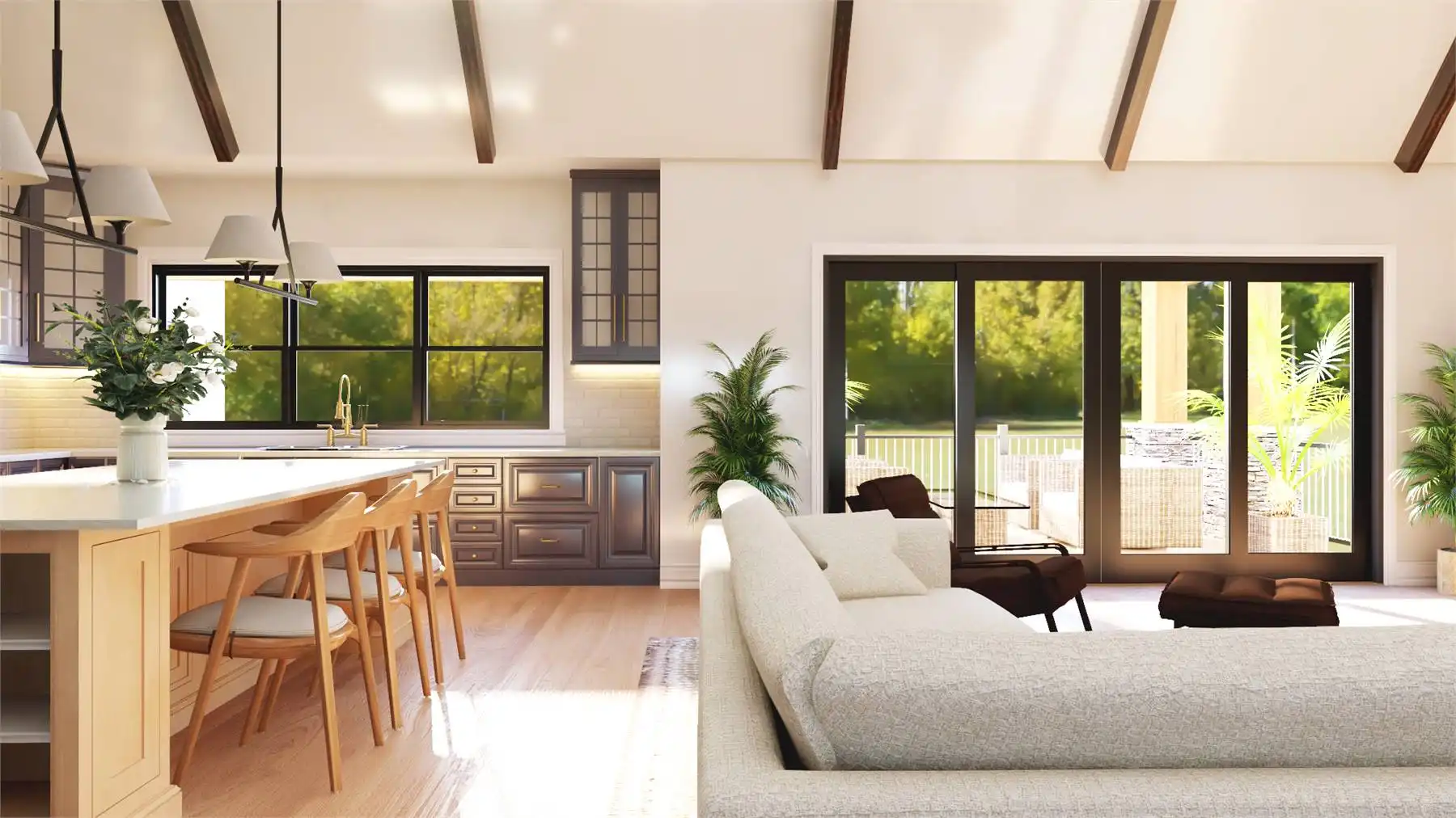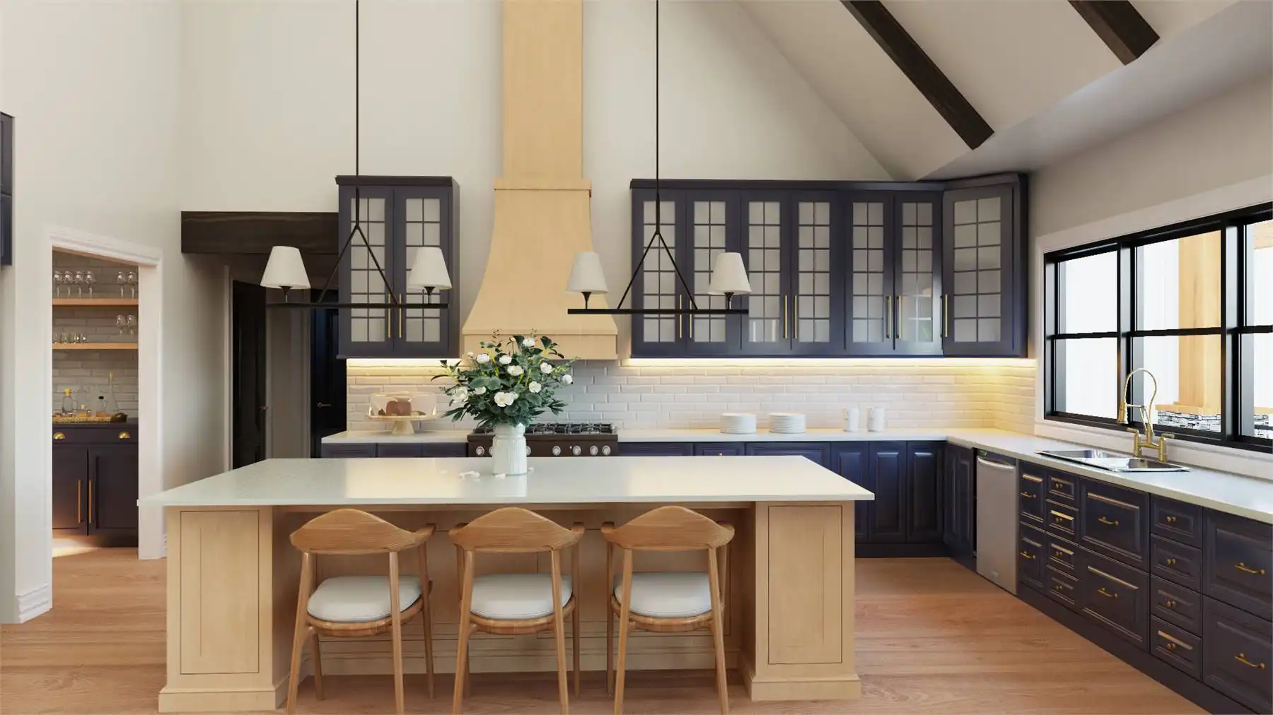 With 3,086 square feet of heated living space, this home delivers generous room sizes and a well-balanced layout designed for modern family living. The family room and great room provide multiple gathering spaces, anchored by a fireplace and enhanced by vaulted ceilings. The kitchen blends function and style with an island, L-shaped counters, butler’s pantry, and walk-in pantry that make hosting and meal prep effortless. A private home office and exercise room add flexibility for work, wellness, and hobbies. The primary bedroom on the main level offers a peaceful retreat with a walk-in closet and a well-appointed bath featuring double vanities and a separate tub and shower. Additional bedrooms are split from the primary suite to maintain privacy throughout the home. Covered porches and an outdoor living area, along with a deck, complete the design with welcoming spaces for enjoying time outdoors.