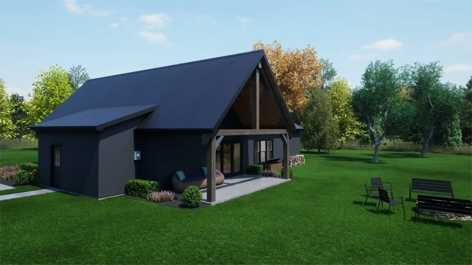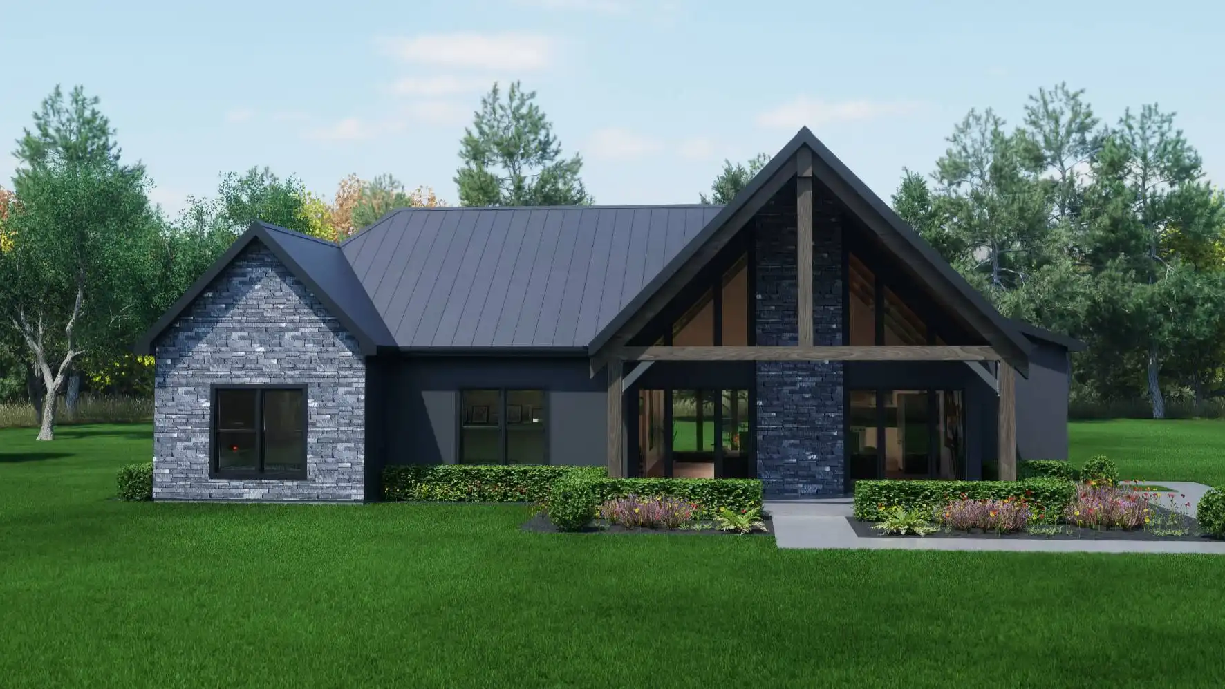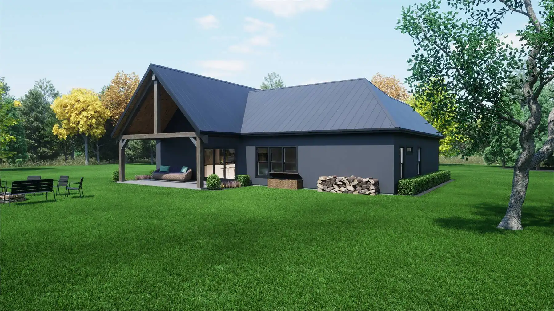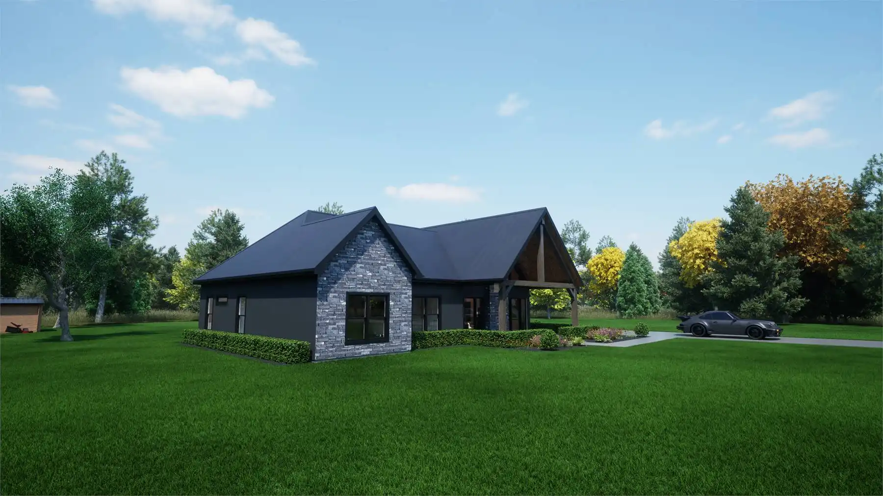 This charming 1,654 square feet plan offers open, airy living with practical design and inviting detail. The vaulted great room and kitchen create a spacious centerpiece for family gatherings, complete with an island, eating bar, and butler’s pantry. The dining room opens to a covered rear porch, extending the living space outdoors for relaxed evenings or weekend barbecues. The main-floor primary suite includes a large walk-in closet and a private bath with double vanities, while two secondary bedrooms share easy access to a full bath. A mud room and first-floor laundry make daily living simple and organized. Blending vaulted spaces, comfortable flow, and a warm aesthetic, this home brings together the best of contemporary and country living for families who value both beauty and ease.