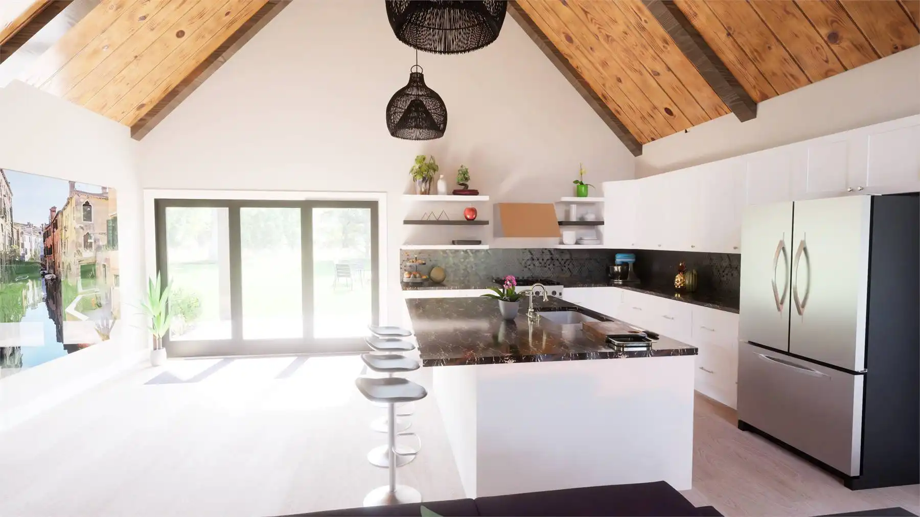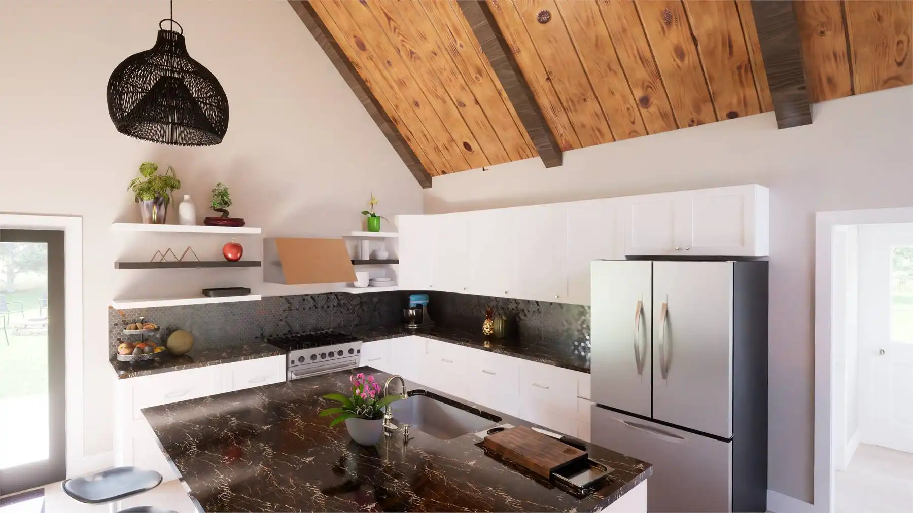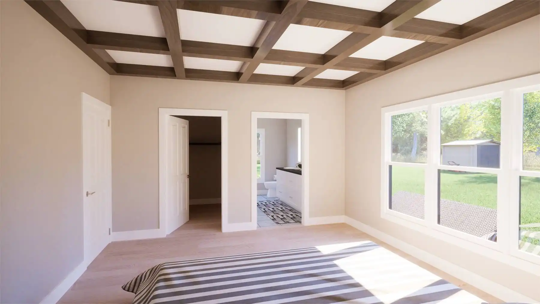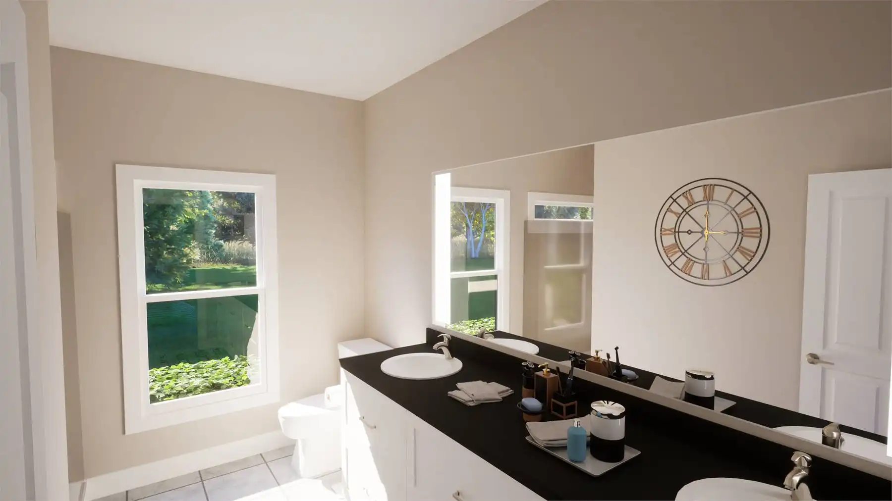 This charming 1,654 square feet plan offers open, airy living with practical design and inviting detail. The vaulted great room and kitchen create a spacious centerpiece for family gatherings, complete with an island, eating bar, and butler’s pantry. The dining room opens to a covered rear porch, extending the living space outdoors for relaxed evenings or weekend barbecues. The main-floor primary suite includes a large walk-in closet and a private bath with double vanities, while two secondary bedrooms share easy access to a full bath. A mud room and first-floor laundry make daily living simple and organized. Blending vaulted spaces, comfortable flow, and a warm aesthetic, this home brings together the best of contemporary and country living for families who value both beauty and ease.