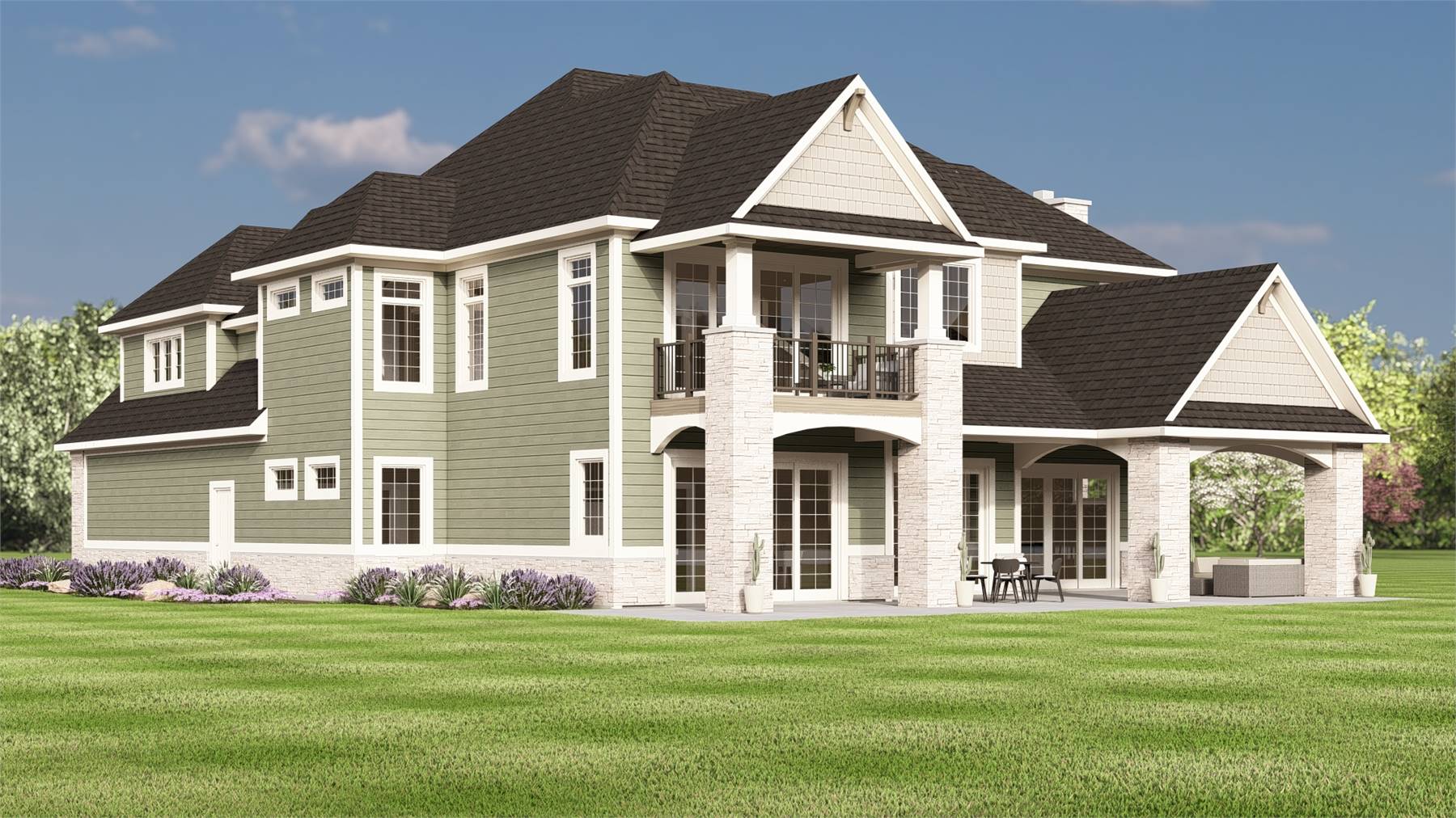 With 4,370 square feet of heated living space, this two-story home delivers generous room sizes and a layout built for both daily life and hosting. The great room rises to a two-story volume with vaulted ceilings and a fireplace that creates a striking centerpiece. The kitchen is designed for efficiency and connection, offering a large island, L-shaped counters, walk-in pantry, and a casual breakfast area. The main level includes a dining room, media or library space, and first-floor laundry that support organized living. The primary bedroom is located upstairs and features a sitting area, walk-in closet, and a well-appointed bath with a separate tub and shower. Additional bedrooms are arranged to provide comfort and privacy throughout the upper level. Outdoor living is enhanced with covered porches and a deck that invite time spent relaxing or gathering outdoors.