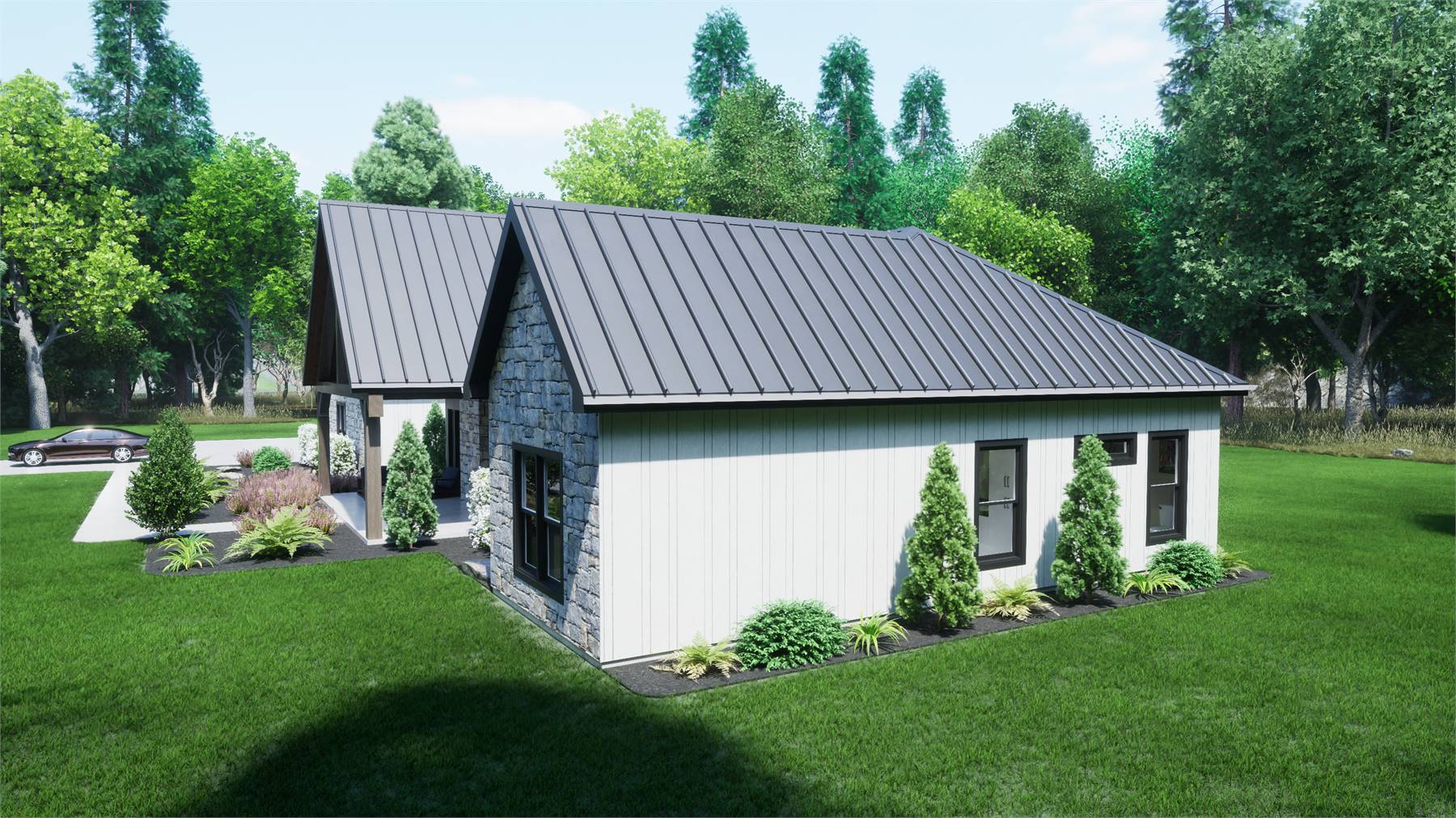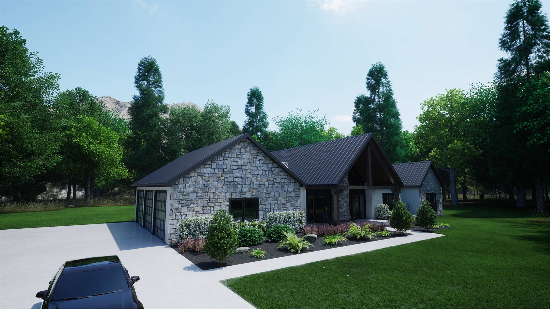 This charming 1,655 square feet plan blends relaxed living with elegant architectural touches. The vaulted great room and kitchen form the heart of the home, featuring an island, eating bar, and butler’s pantry that make meal prep and entertaining effortless. The open floor plan flows naturally to the dining area and covered rear porch, ideal for hosting family dinners or enjoying peaceful mornings. The main-floor primary suite offers privacy and comfort, complete with a walk-in closet and double vanity bath. Two additional bedrooms share a convenient full bath, making this design as functional as it is beautiful. A mud room and first-floor laundry add thoughtful convenience, while the side-entry garage enhances the home’s graceful curb presence. With its bright, open spaces and timeless design, this home provides everything needed for easy, comfortable living with a touch of sophistication.