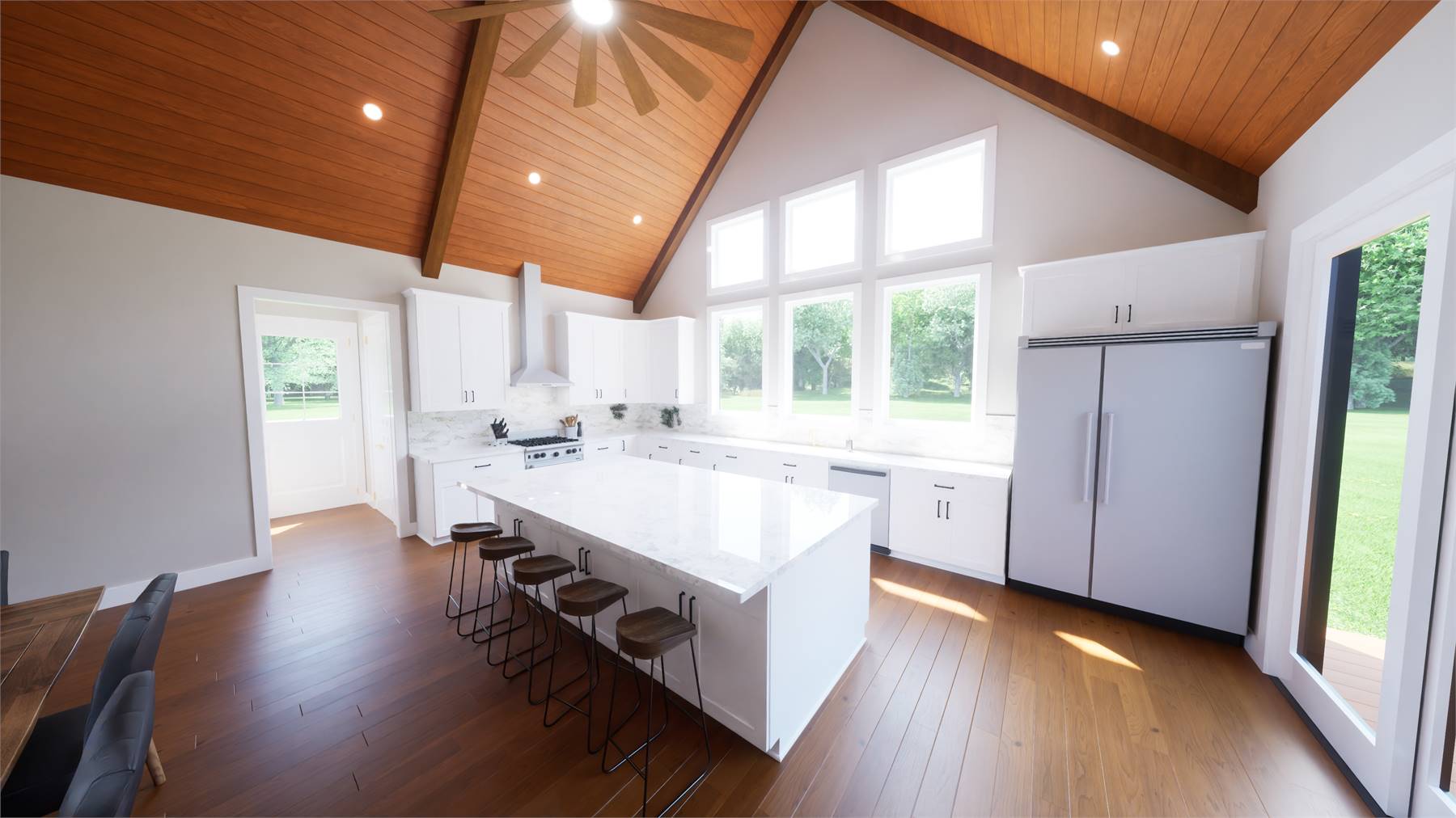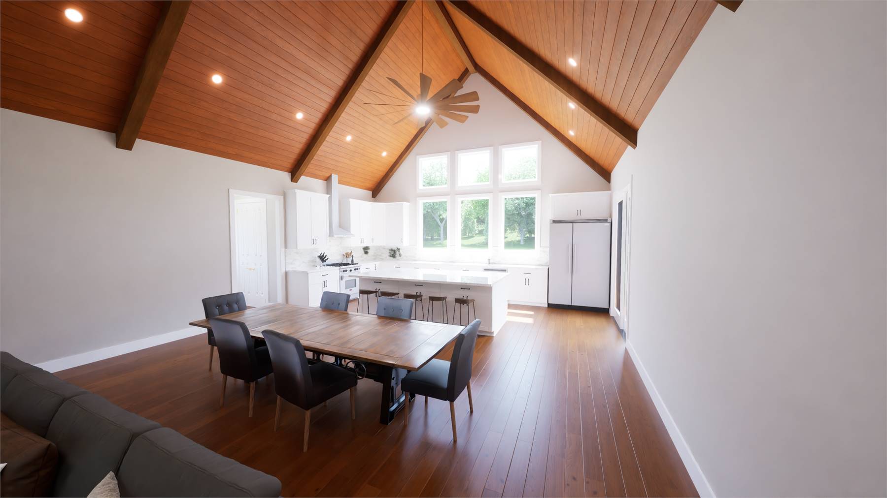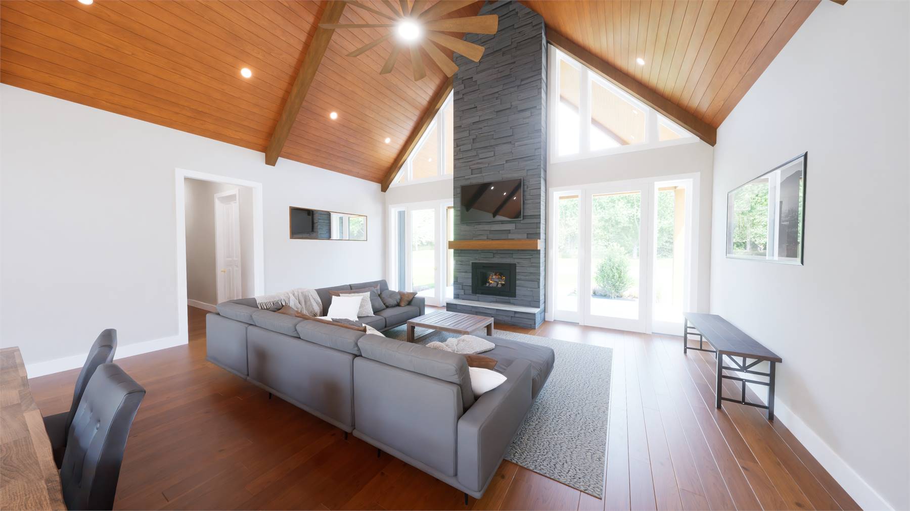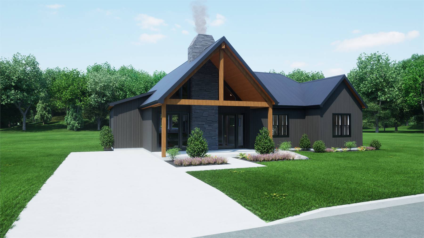 This charming 1,896 square feet plan combines open, family-focused living with timeless style and thoughtful design. Inside, the L-shaped kitchen with island and peninsula provides plenty of space for meal prep, conversation, and entertaining. The vaulted great room creates a bright, airy atmosphere centered around a warm fireplace, while the open floor plan enhances connection between the living, dining, and kitchen areas. The main-level primary suite offers privacy and comfort, featuring a large walk-in closet and elegant double vanity bath. Two additional bedrooms provide flexibility for family, guests, or a home office. With features like a mud room, first-floor laundry, and covered porch, daily routines become effortless. Perfect for first-time homeowners or those looking to downsize without compromise, this home blends contemporary ease with a welcoming country feel.