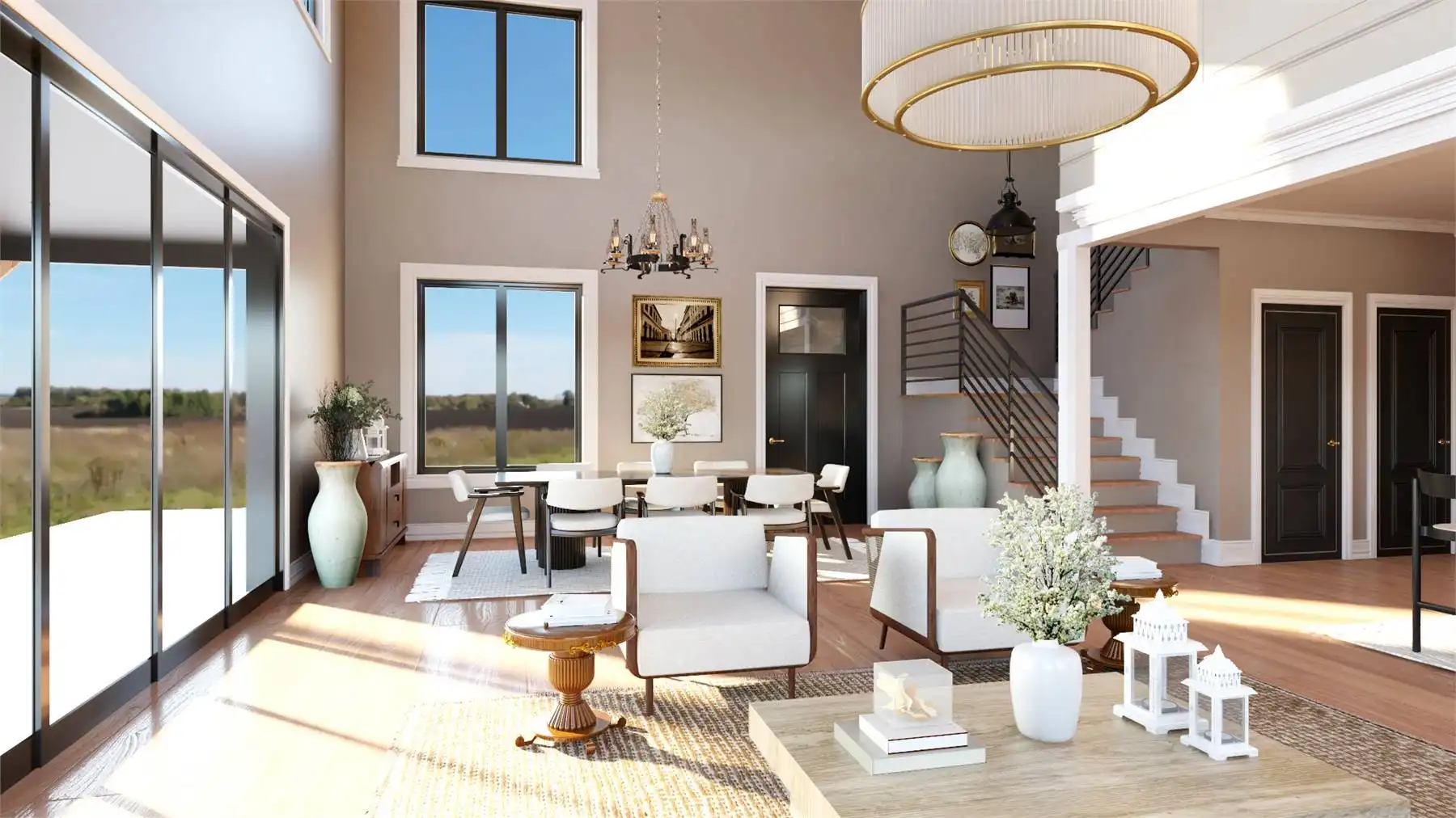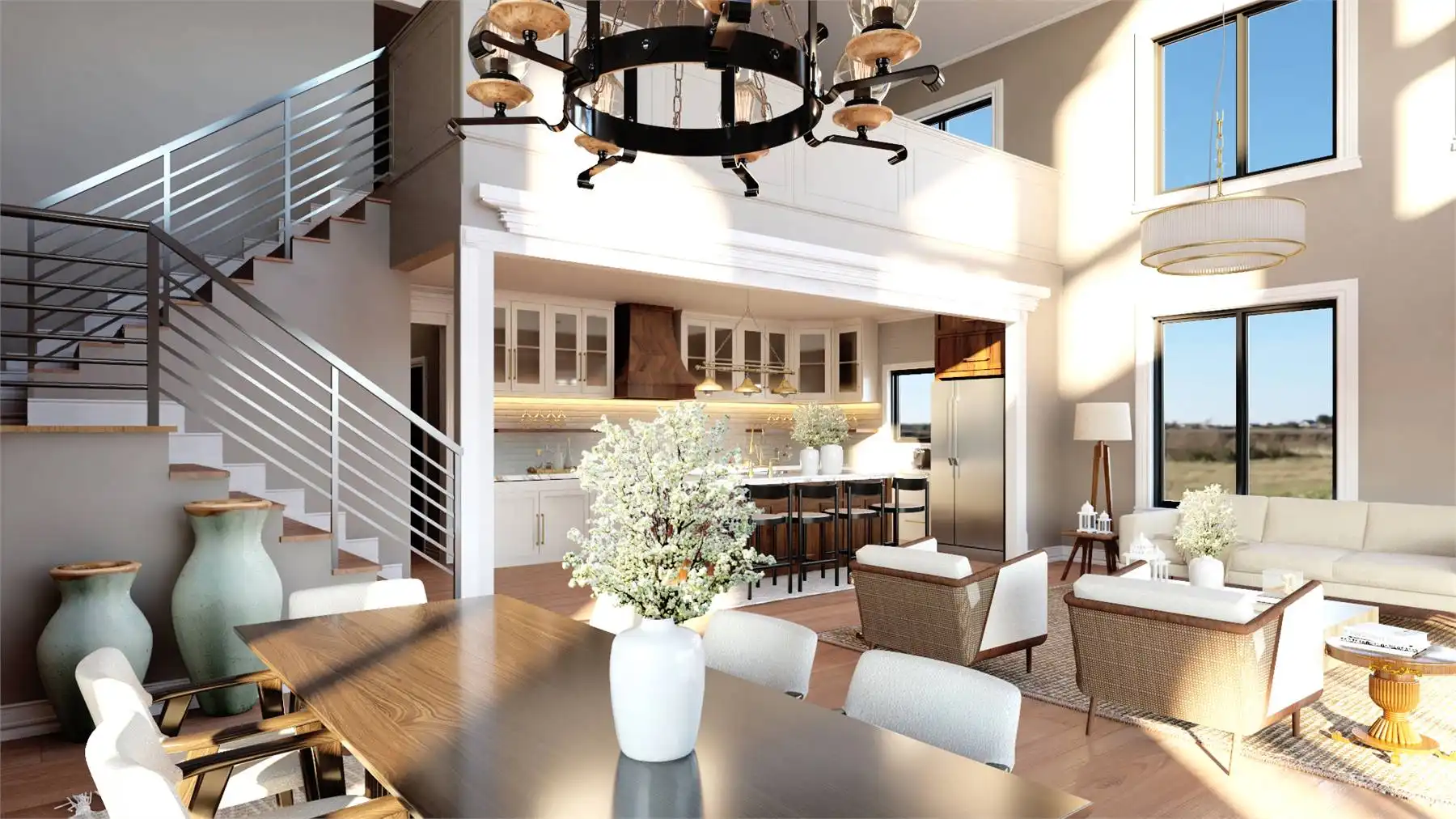 With 2,545 square feet of heated living space, this two-story home delivers 6 bedrooms and 4.5 bathrooms arranged for versatility and comfort. The great room anchors the open floor plan, providing a central gathering area that flows easily into the dining room and kitchen. An L-shaped kitchen with an island supports everyday meals and larger gatherings alike. The primary suite is located on the main floor, offering privacy and ease of access. Practical features such as first-floor laundry and a well-defined foyer support busy daily life. The upper level includes multiple secondary bedrooms along with a loft or balcony space that adds flexibility for shared living or quiet retreat areas. A covered front porch adds warmth and charm, creating a welcoming first impression.