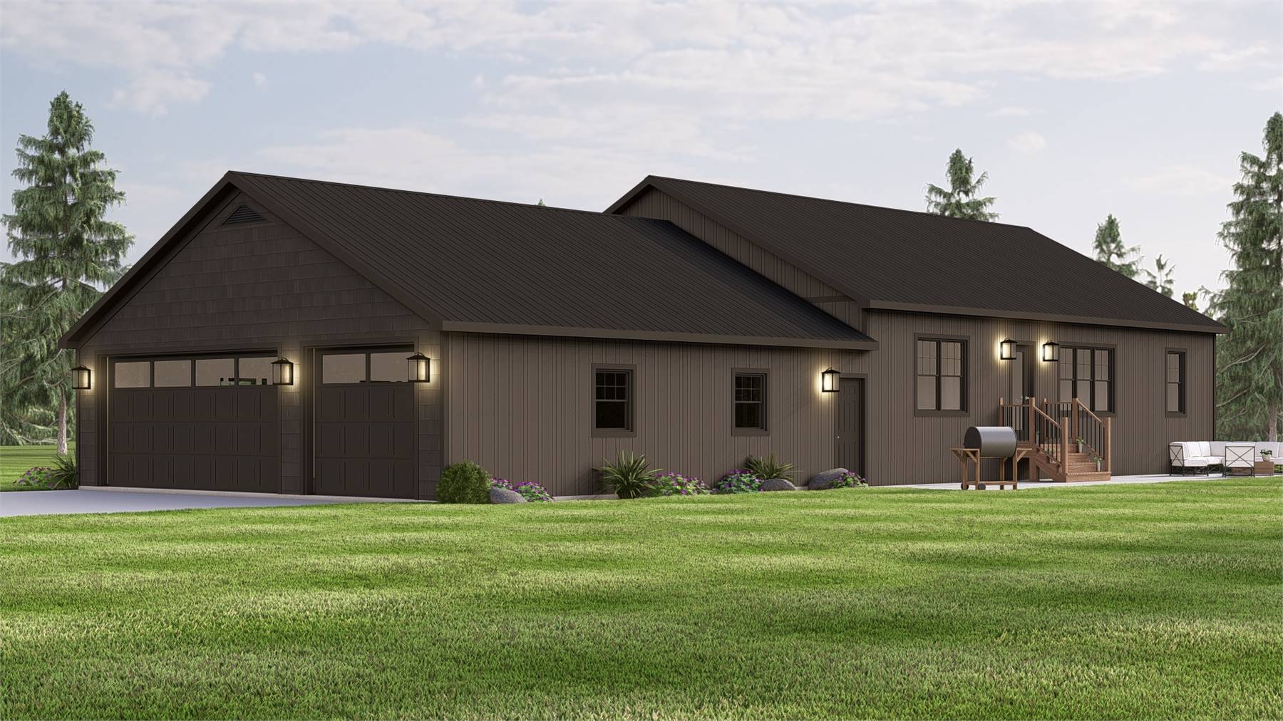House Plan 11897 pairs rustic country style with a smart ranch layout and room to expand below. The open main level makes daily life easy, with a great room that flows into an L-shaped kitchen and dining space. A split bedroom arrangement keeps the primary suite quiet and private, featuring a walk-in closet and a bathroom with dual vanities plus a separate tub and shower. Two secondary bedrooms share a full bath on the opposite side—great for kids, guests, or a home office setup. A mudroom entry and main-level laundry help keep everything organized, and the nearby half bath is perfect for visitors. Outdoor living is built in, thanks to a covered front porch and an extra-large rear patio for entertaining. The attached side-entry 3-car garage adds serious storage and work space. When you’re ready, the unfinished lower level offers a blank canvas for future rooms, recreation, or storage.