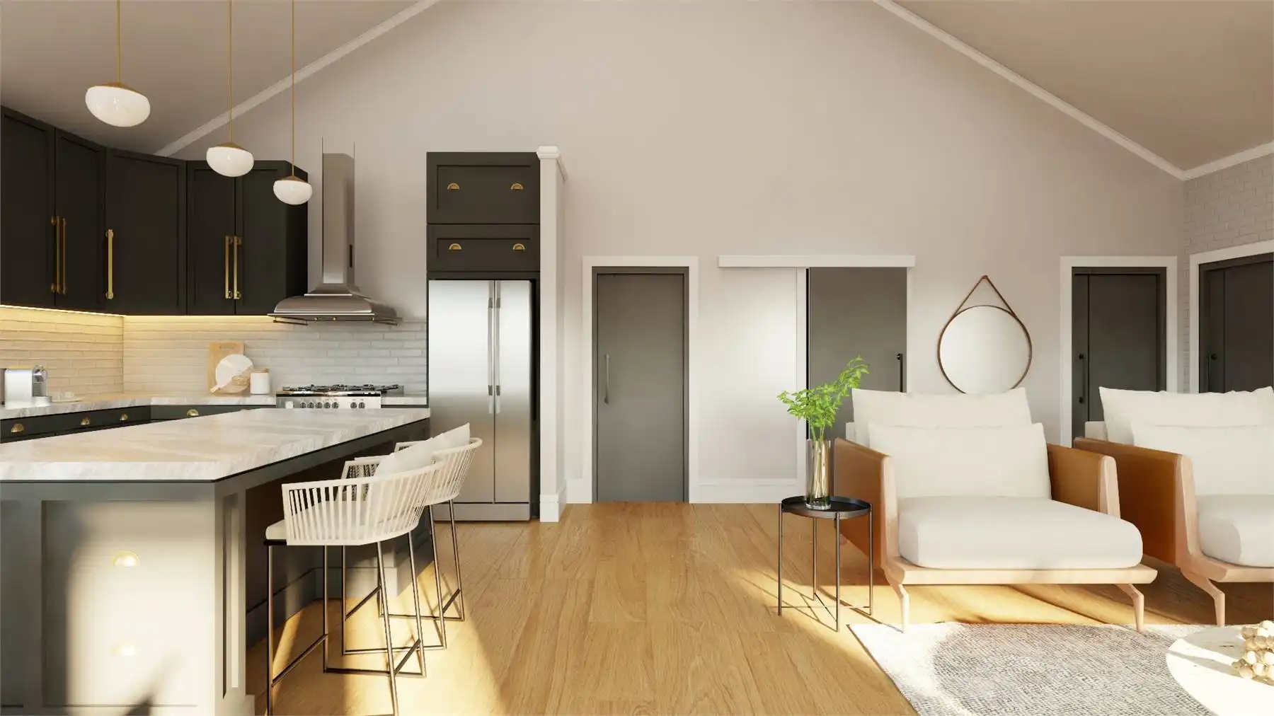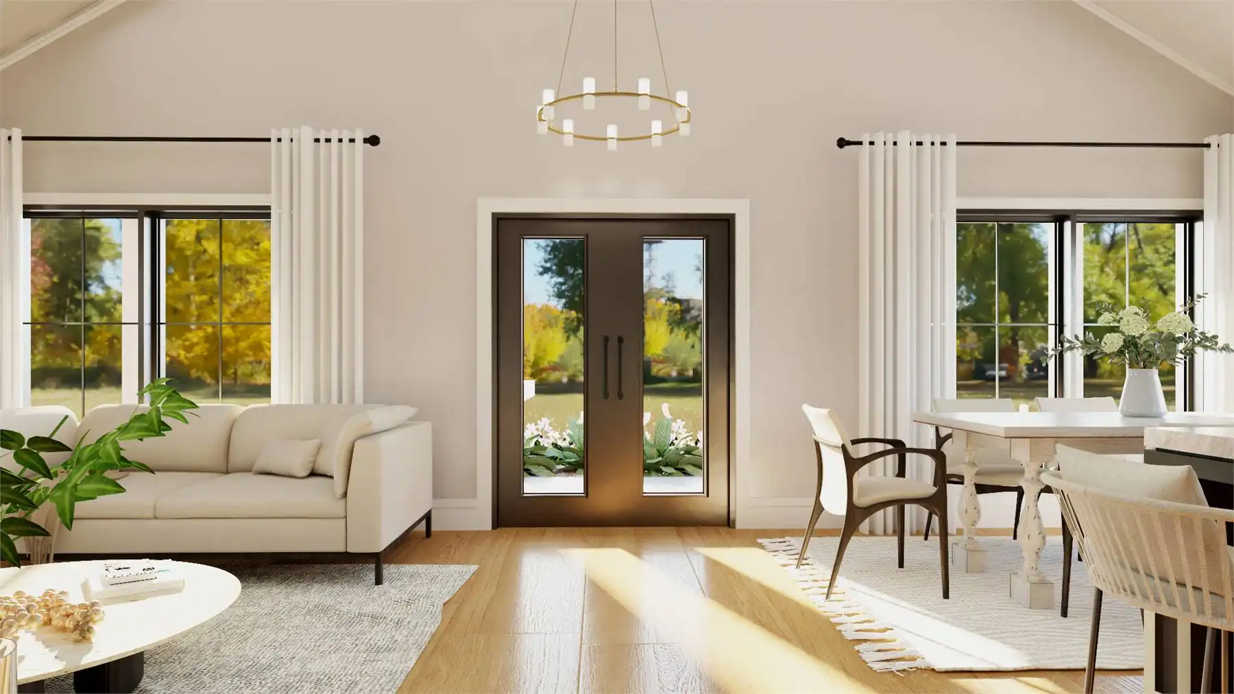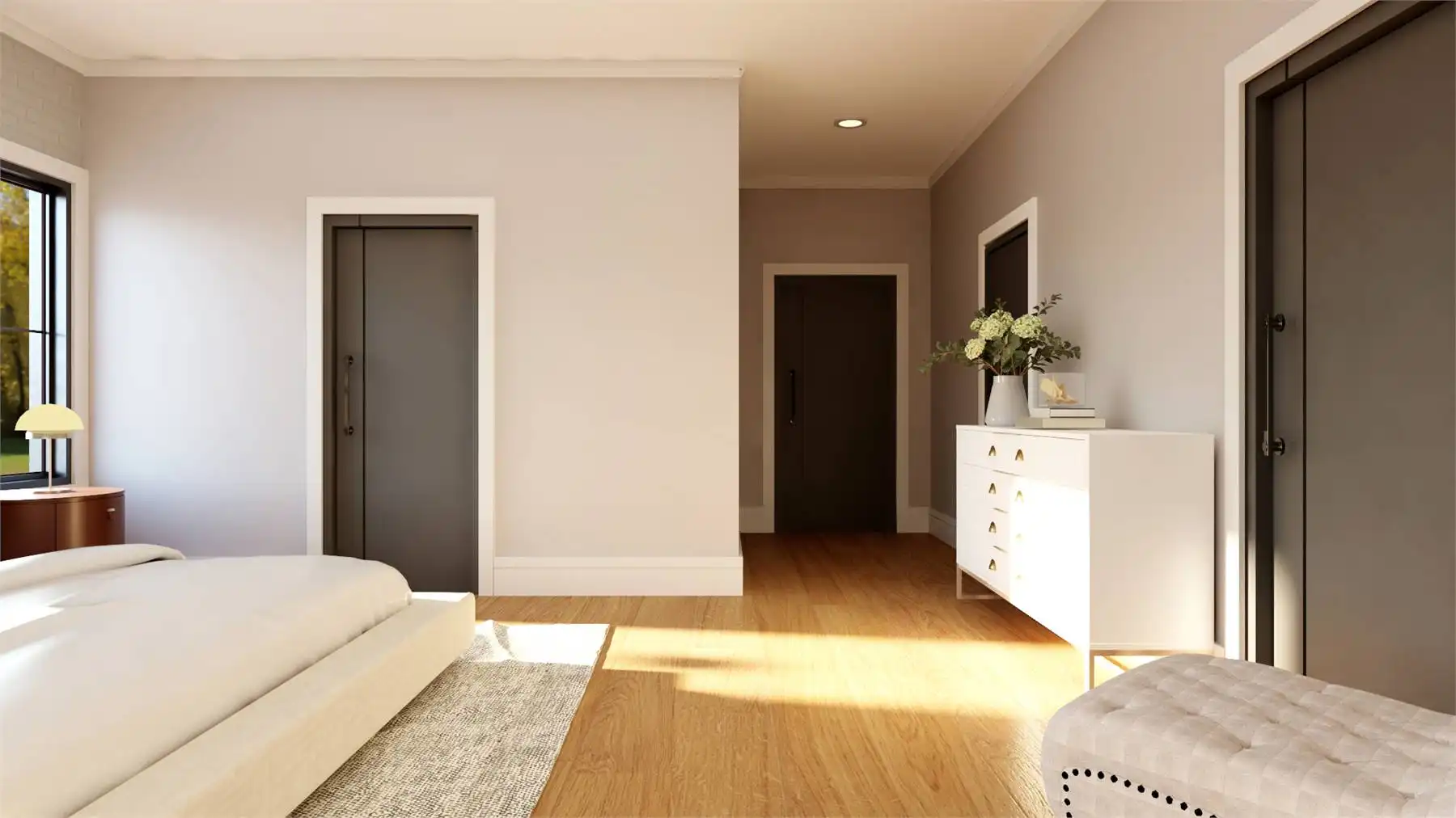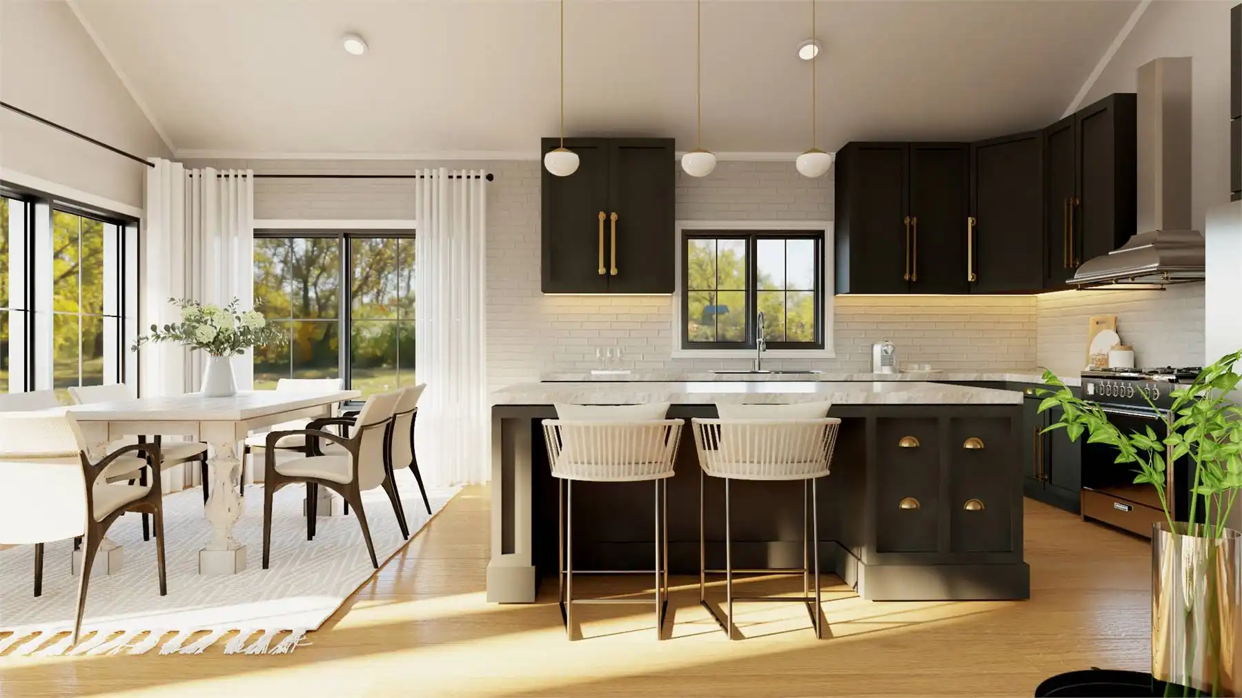 House Plan 11899 is a thoughtfully designed ranch home offering 1,440 square feet of comfortable, easy living, making it an ideal choice for retirement, downsizing, empty nesters, or a first home. The open floor plan seamlessly connects the living room, dining area, and L-shaped kitchen, creating a bright and welcoming space highlighted by a sloped ceiling that adds warmth and dimension. Located at the rear of the home for added privacy, the primary bedroom features a spacious ensuite with dual sinks, a separate soaking tub and shower, and a large walk-in closet. A one car garage provides everyday convenience, while the expansive covered rear porch spans the full width of the home, extending the living space outdoors and offering a relaxing spot to enjoy every season.
