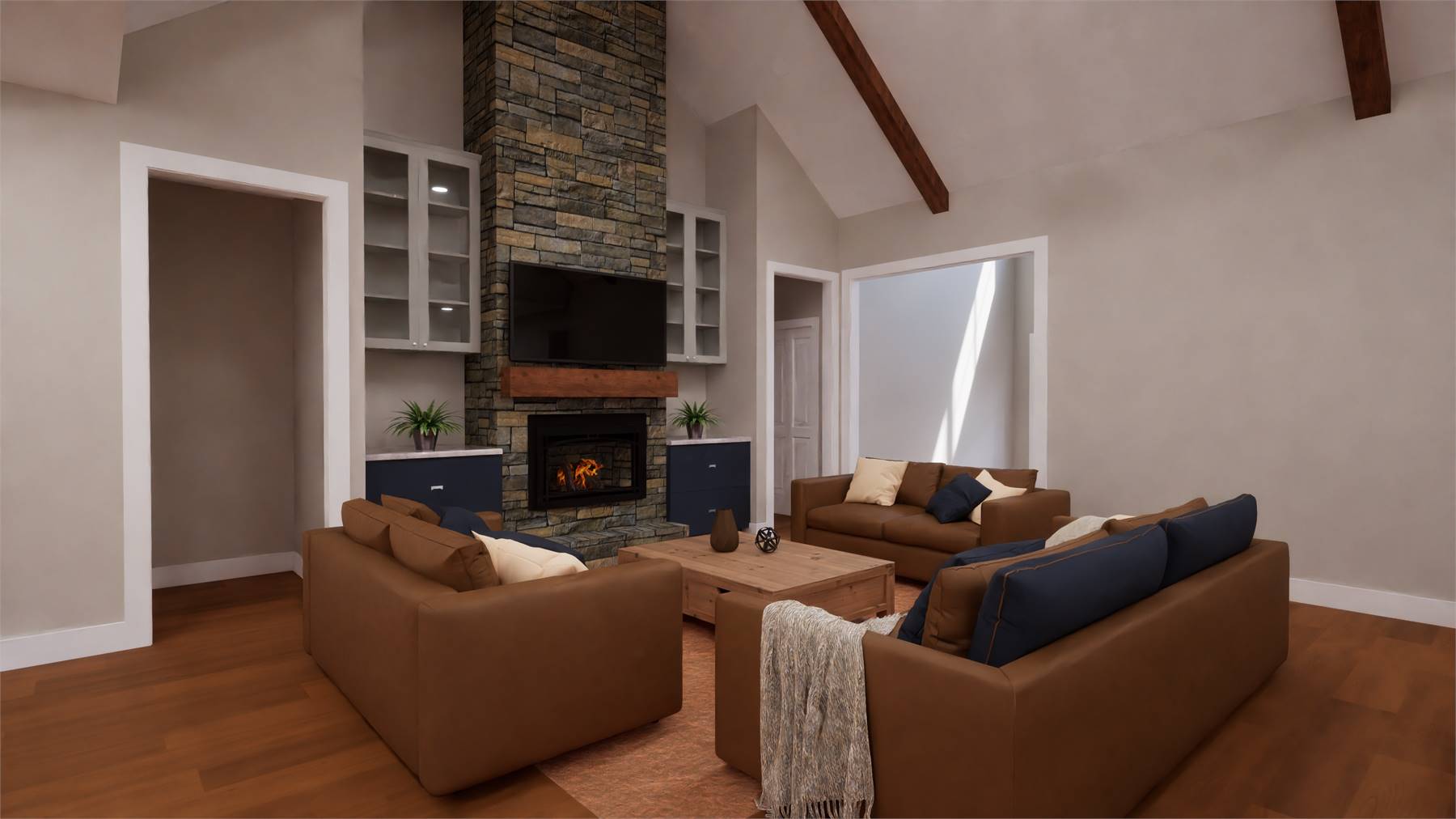 This charming 2,502 square feet plan is perfect for families seeking open, flexible spaces and vaulted ceilings. The kitchen features a large island, peninsula, and butler’s pantry, making meal prep and entertaining effortless. The vaulted great room and open layout allow natural light to fill the main living areas, while the dining room and bonus spaces add versatility. The main floor primary suite includes a walk-in closet, double vanity, and separate tub and shower for a luxurious daily experience. Additional bedrooms and a home office provide room for everyone’s needs. Outdoor spaces include a covered front porch, rear deck, and a screened porch/sunroom, extending living areas outdoors. With its functional design and thoughtful details, this home offers comfort, style, and convenience for modern living.
