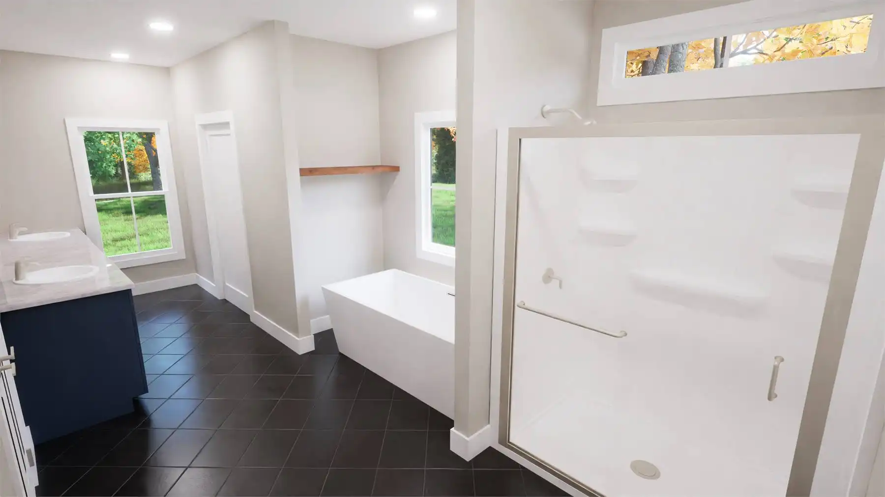 This charming 2,502 square feet plan is perfect for families seeking open, flexible spaces and vaulted ceilings. The kitchen features a large island, peninsula, and butler’s pantry, making meal prep and entertaining effortless. The vaulted great room and open layout allow natural light to fill the main living areas, while the dining room and bonus spaces add versatility. The main floor primary suite includes a walk-in closet, double vanity, and separate tub and shower for a luxurious daily experience. Additional bedrooms and a home office provide room for everyone’s needs. Outdoor spaces include a covered front porch, rear deck, and a screened porch/sunroom, extending living areas outdoors. With its functional design and thoughtful details, this home offers comfort, style, and convenience for modern living.