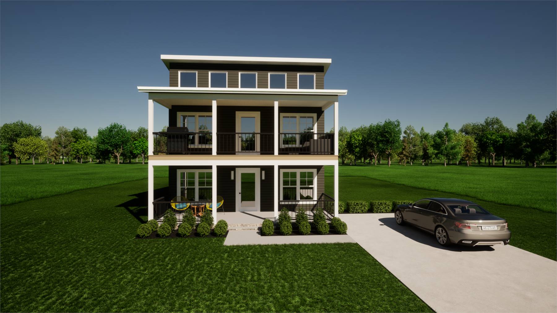 This charming 1,969 square feet plan blends open family living with a practical arrangement ideal for everyday comfort. The L-shaped kitchen offers an island and peninsula with an eating bar, making it easy to prepare meals while staying connected to the dining and family rooms. The main-floor primary bedroom features a generous walk-in closet and a convenient layout that supports privacy. Two upstairs bedrooms enhance the home’s flexibility, while the rec room and multiple storage spaces add even more functionality. A first-floor laundry room keeps routines simple and efficient. With a welcoming covered front porch and a relaxing rear porch, this home offers warm, inviting spaces both inside and out, creating a place where comfortable living comes naturally.