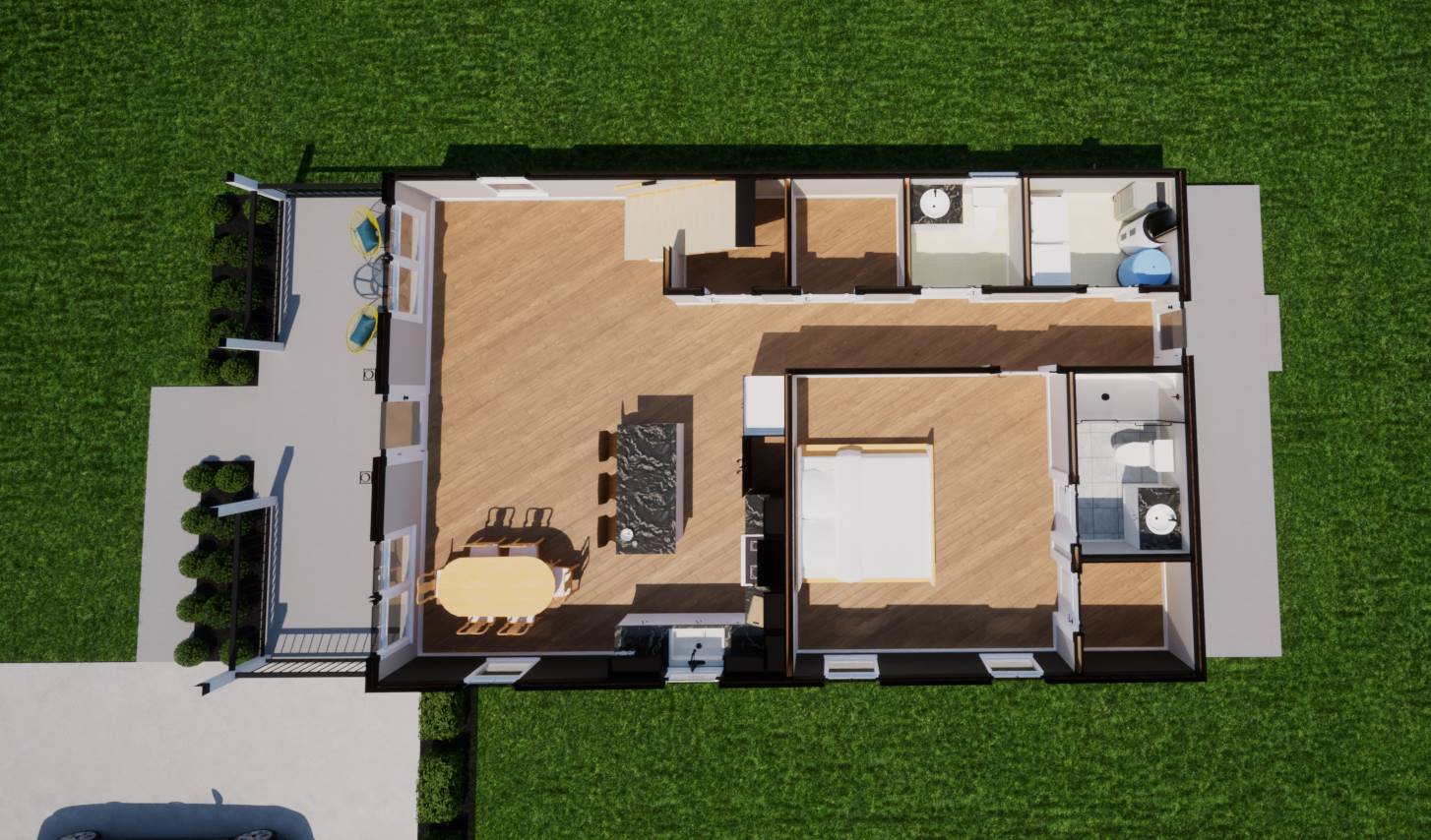 This package also comes with a PDF set of plans and a multi-use building license, granting permission to construct the home an unlimited number of times, along with a copyright release for making modifications and printing unlimited copies.