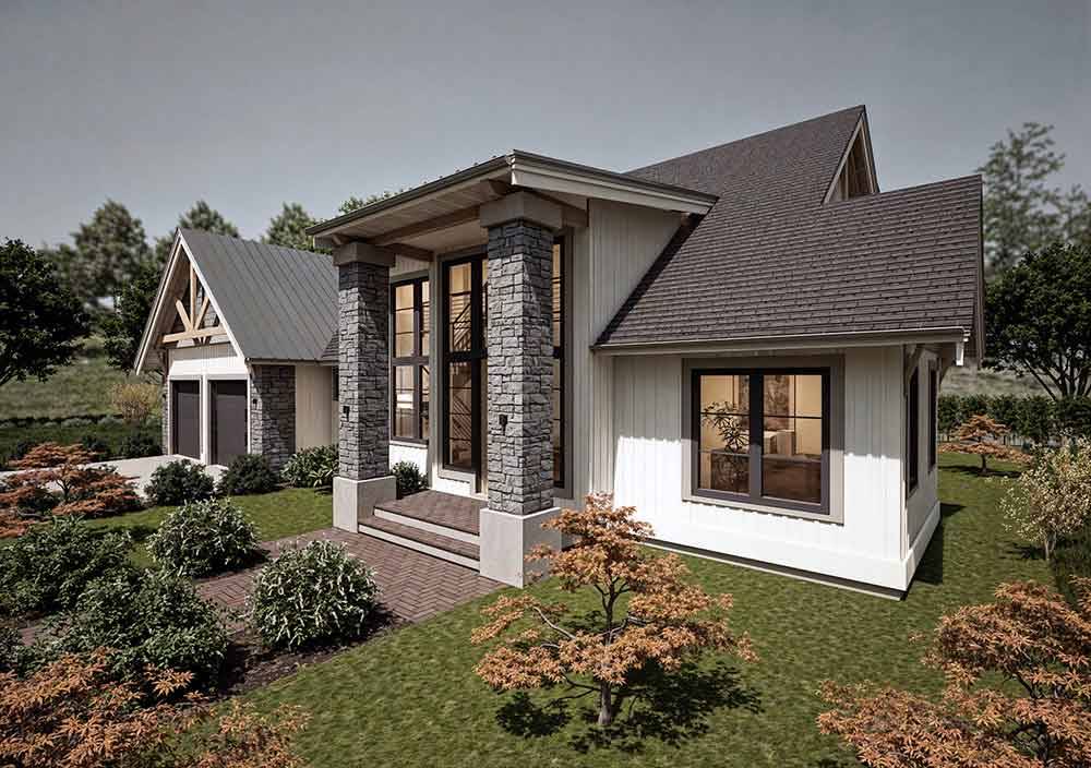 With 3,803 square feet of heated space, this home blends open living with dramatic architectural details across 3 bedrooms and 3.5 baths. The great room features soaring two-story volume and a fireplace, creating a bright and memorable gathering space. An open kitchen design with an island and walk-in pantry connects seamlessly to the main living areas, supporting both daily use and entertaining. The primary suite offers a relaxing retreat with a double vanity and a separate tub and shower. Practical features such as a foyer and first-floor laundry enhance the overall flow of the layout. Covered porches and a rear deck provide comfortable outdoor spaces that complement the home’s warm and welcoming design.