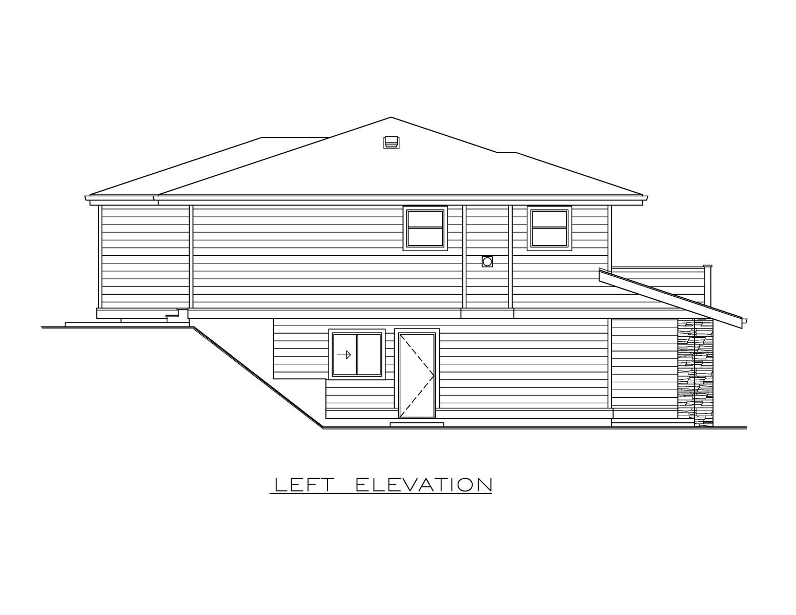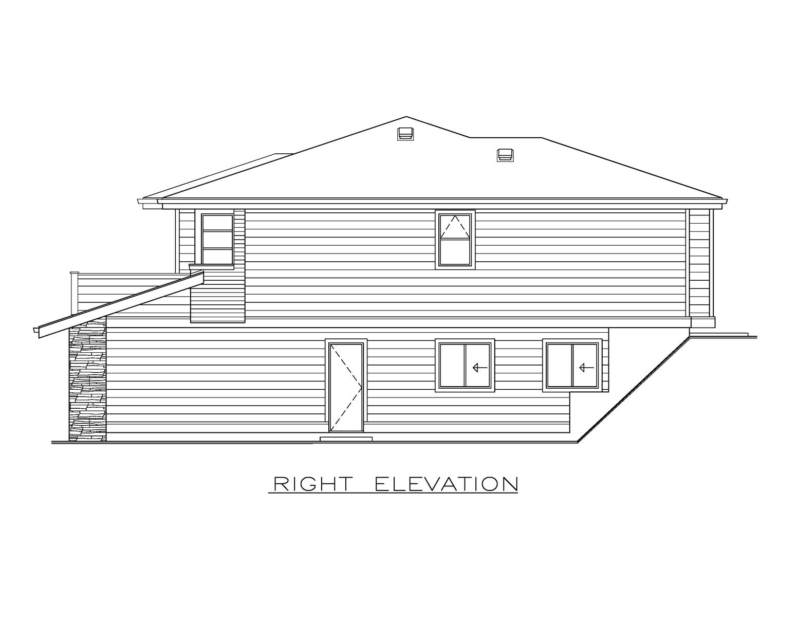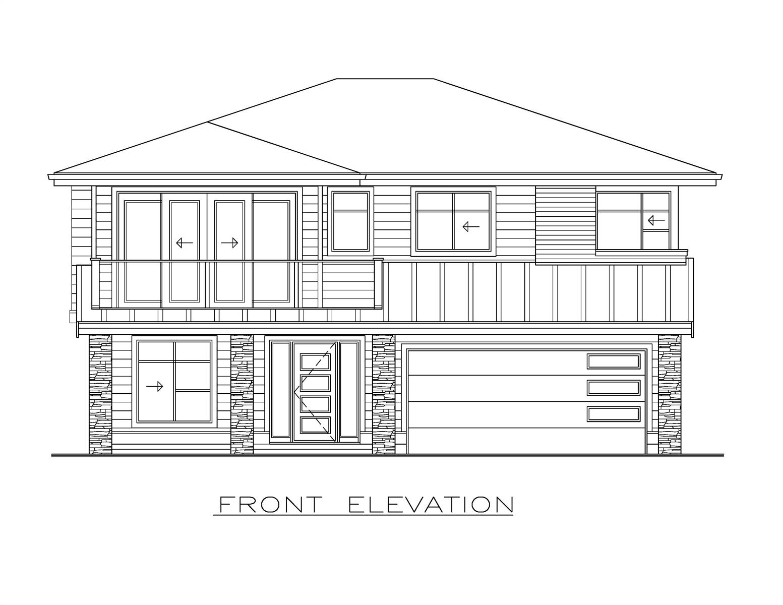 House Plan 11936 delivers a versatile two level layout designed to adapt to changing household needs. The main living spaces are located on the upper floor, creating bright, elevated views and seamless indoor outdoor flow, while the ground level offers a den and the option for a future two bedroom secondary suite. A covered front entry leads into a practical foyer with built in seating and storage, with the den positioned nearby and outfitted with a closet for added flexibility. Upstairs, the great room features a refined tray ceiling and a gas fireplace, anchoring the open living, dining, and kitchen areas. Sliding doors open to a front balcony with glass railing, while the dining area connects to a rear patio overlooking the backyard. The kitchen includes ample counter space, a corner pantry, and a central island with double sink that encourages easy conversation and everyday functionality. The primary suite is tucked away at the back of the home for privacy and includes a spacious ensuite with dual sinks, a shower stall, and a walk in closet with private access. Two front facing bedrooms share a three piece bathroom, with laundry and storage thoughtfully placed close by. A double garage connects directly to the foyer and provides additional access to the side yard and mechanical room. Finished with stucco, stone, and wood accents, along with mixed rooflines and decorative pilasters, this home offers 1,423 square feet of upper level living space with nine foot ceilings throughout.