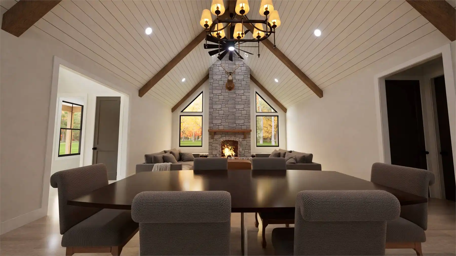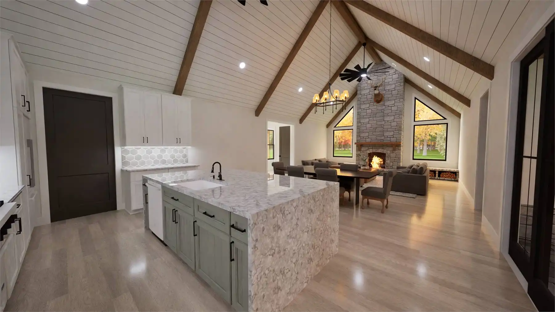 This welcoming 2,152 square feet design brings comfort and ease to everyday life with its open floor plan and beautifully vaulted living areas. The kitchen offers excellent workspace with an island, peninsula eating bar, and nearby butler’s pantry, creating an ideal setup for cooking and gathering. The primary bedroom is privately located on the main floor and includes a spacious walk-in closet along with a separate tub and shower for added luxury. Split bedrooms ensure personal space for everyone, while the home office, mud room, and first-floor laundry offer thoughtful conveniences. A large bonus room above adds even more usable space for recreation or storage. With covered porches and a family-friendly layout throughout, this home brings warmth and comfort together in a way that feels instantly inviting. Its well-designed flow makes it a wonderful fit for comfortable everyday living.