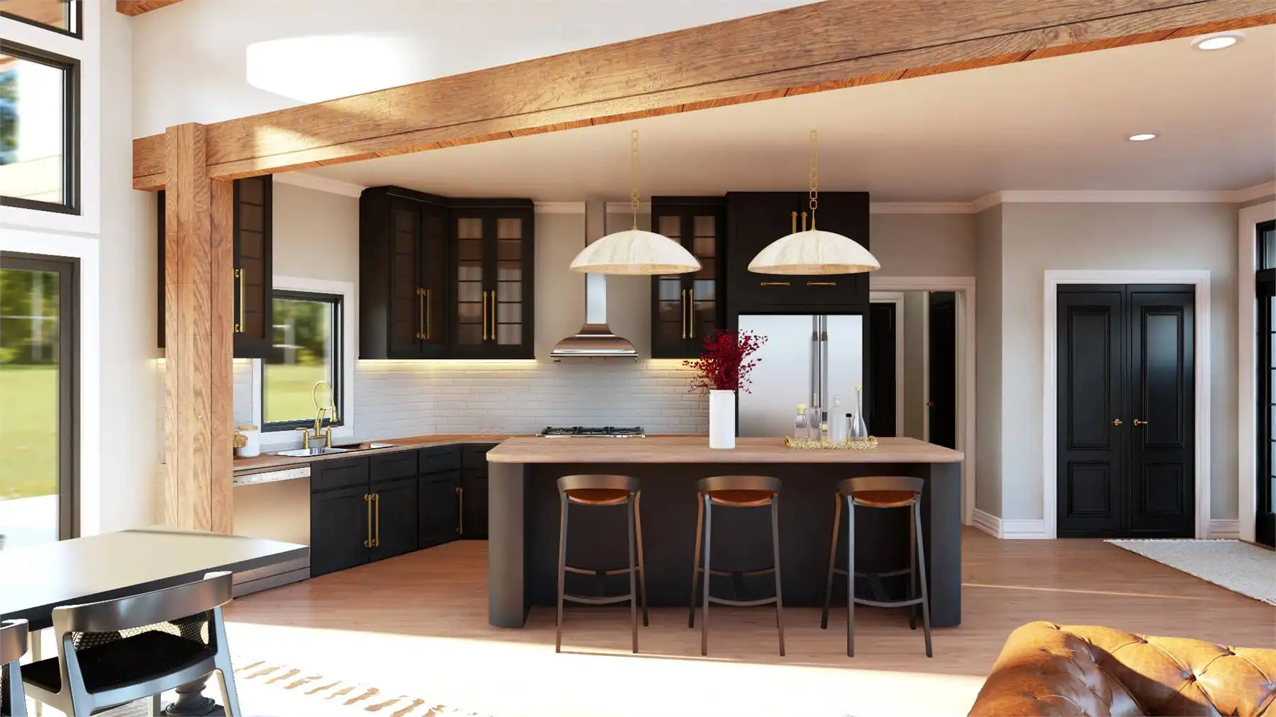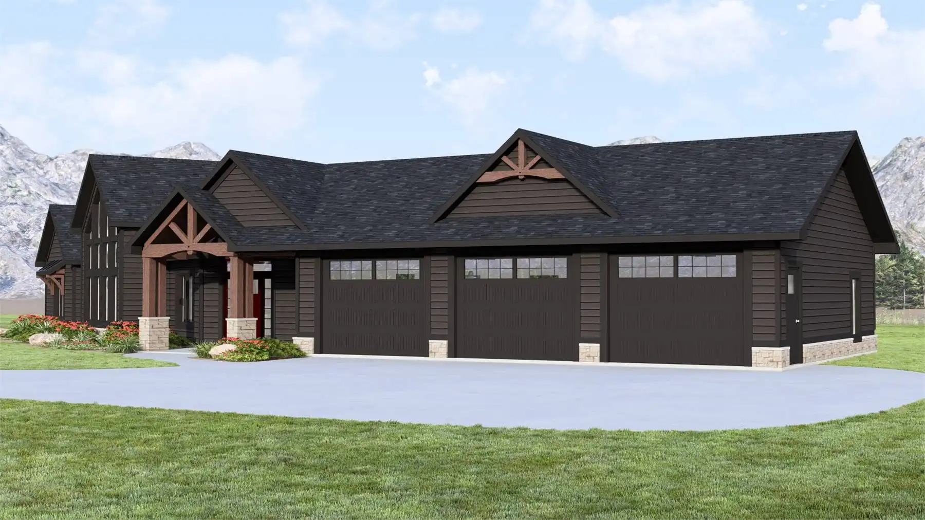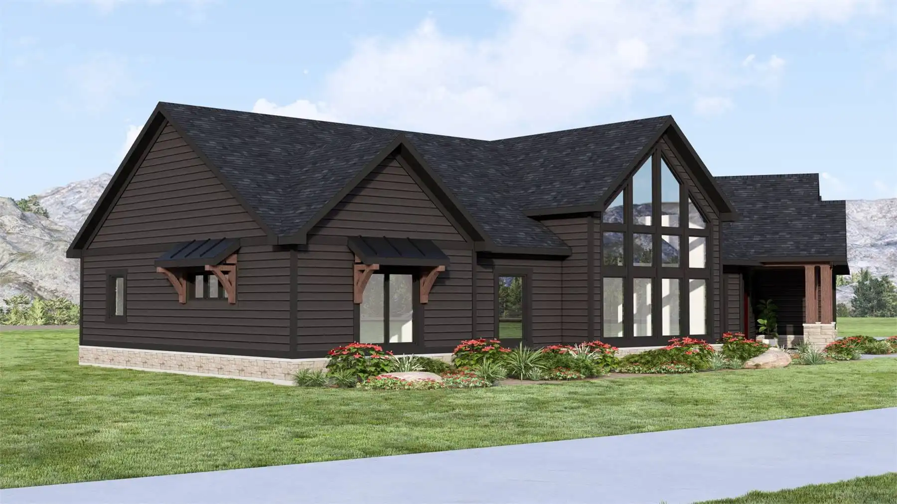 House Plan 11946 is a 1-story Craftsman ranch offering 1,785 square feet of thoughtfully arranged living space. A vaulted great room creates an open, welcoming focal point that connects directly to the dining area and kitchen. The kitchen features an island, pantry, and L-shaped layout designed for efficiency and entertaining. The main-floor primary suite includes a walk-in closet and a bathroom with dual vanities. A secondary bedroom adds versatility for guests or hobbies. Covered front and rear porches enhance outdoor enjoyment and make the plan well suited for scenic or mountain lots. The attached three-car garage provides ample room for vehicles, storage, and gear.